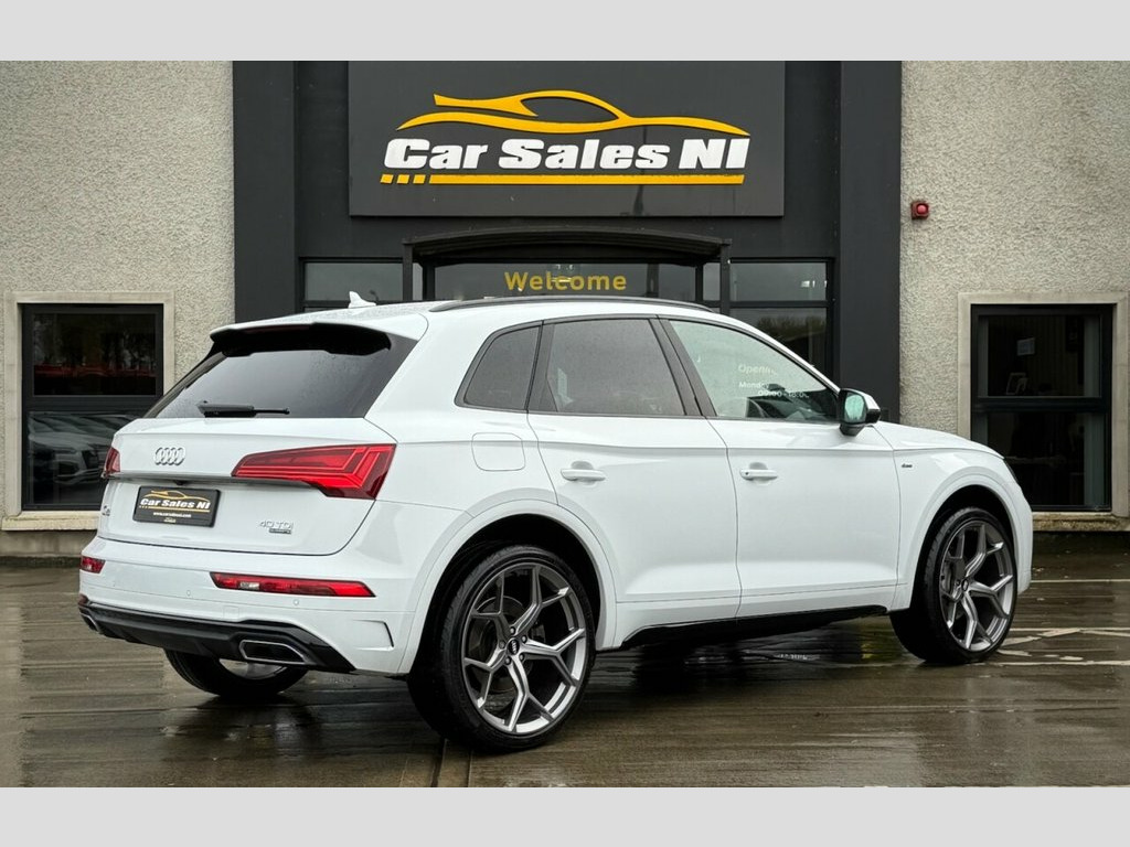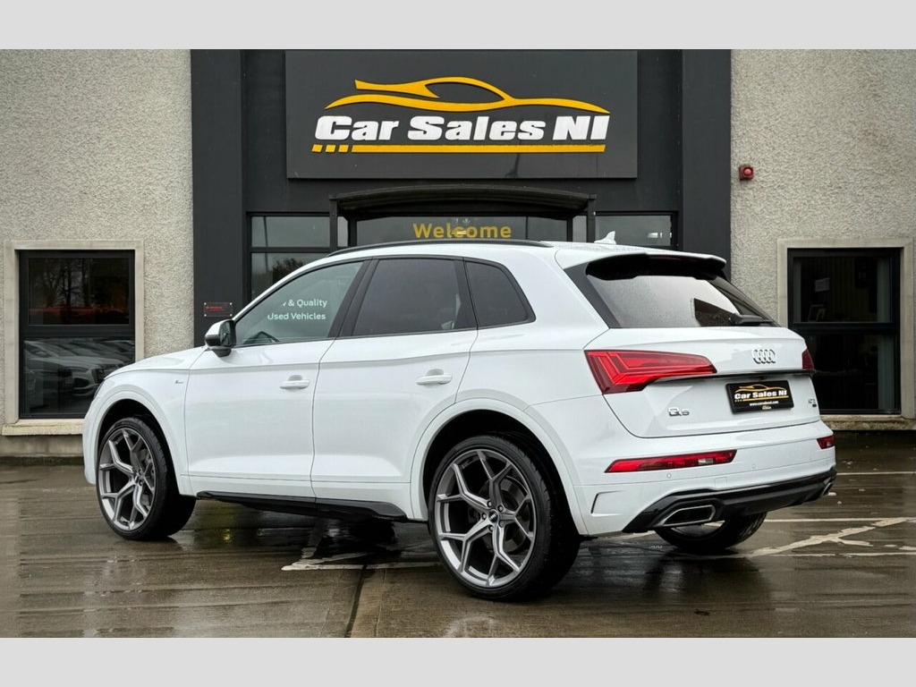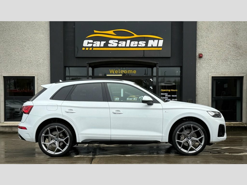 2022 AUDI Q5 S LINE QUATTRO 40 TDI 202 BHP 1 Owner from new, 2.0 Diesel Model, Covered 69k miles, Finished in White, Key Features include: 22" Upgraded alloy wheels (£1,100 Optional extra) Rear Privacy glass Black Edition Styling Front and Rear Parking sensors Reversing camera Half Leather S Line interior Leather multifunctional steering wheel Paddle shift Heated front seats Dual Climate control Virtual cockpit DAB Radio / Bluetooth / Sat Nav Apple / Android Car Play AUDI Drive Mode Select Electronic Tailgate ISOFIX Child seat Points And so much more... Call today to arrange a test drive Tailored finance packages available to suit your needs (Excludes ROI) Comprehensive warranty on all cars Trade ins welcome Delivery to North and South of Ireland if required 19in Alloy Wheels - 5-Twin-Spoke Star De, 2 USB Charging Ports -1 x USB-A and 1 x , 3-Spoke Multi-Function Leather Steering , 6-Airbag System, Air Vents - Inserts and Centre Console i, Aluminium Roof Rails, Anti Theft Locking Wheel Bolts, Anti-Theft Alarm, Audi Connect Navigation and Infotainment, Audi Connect Safety and Service, Audi Connect with Amazon Alexa Integrati, Audi Drive Select, Audi Pre-Sense City, Audi Virtual Cockpit Plus - 12.3in Scree, Audi Wireless Smartphone Interface, Auto Dimming and Frameless Rear View Mir, Automatic Headlight Adjustment, Automatic Headlight and Windscreen Wiper, Automatic Start-Stop with Coasting Funct, Bluetooth Interface, Body Coloured Door Mirrors, C