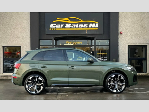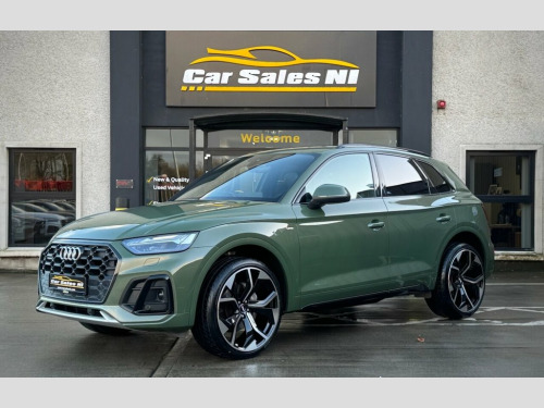 2022 AUDI Q5 S LINE 40 TDI QUATTRO 202 BHP 1 Owner from new, 2.0 Diesel Model, Covered 35k miles, Finished in District Green, Key Features include: 22'' RSQ8 Style Alloy wheels (£1,100 Optional extra) Rear Privacy glass Black Edition Styling Front and Rear Parking sensors Reversing camera Half Leather S Line Interior Leather Multifunctional steering wheel Paddle shift Heated front seats Dual Climate control Virtual Cockpit DAB Radio / Bluetooth / Sat Nav Apple / Android Car Play AUDI Drive Mode Select Electronic Tailgate ISOFIX Child seat Points And so much more... Call today to arrange a test drive Tailored finance packages available to suit your needs Comprehensive warranty on all cars Trade ins welcome Delivery to North and South of Ireland if required 19in Alloy Wheels - 5-Twin-Spoke Star De, 2 USB Charging Ports -1 x USB-A and 1 x , 3-Spoke Multi-Function Leather Steering , 6-Airbag System, Air Vents - Inserts and Centre Console i, Aluminium Roof Rails, Anti Theft Locking Wheel Bolts, Anti-Theft Alarm, Audi Connect Navigation and Infotainment, Audi Connect Safety and Service, Audi Connect with Amazon Alexa Integrati, Audi Drive Select, Audi Pre-Sense City, Audi Virtual Cockpit Plus - 12.3in Scree, Audi Wireless Smartphone Interface, Auto Dimming and Frameless Rear View Mir, Automatic Headlight Adjustment, Automatic Headlight and Windscreen Wiper, Automatic Start-Stop with Coasting Funct, Bluetooth Interface, Body Coloured Door Mirrors, C