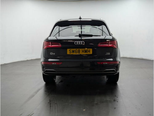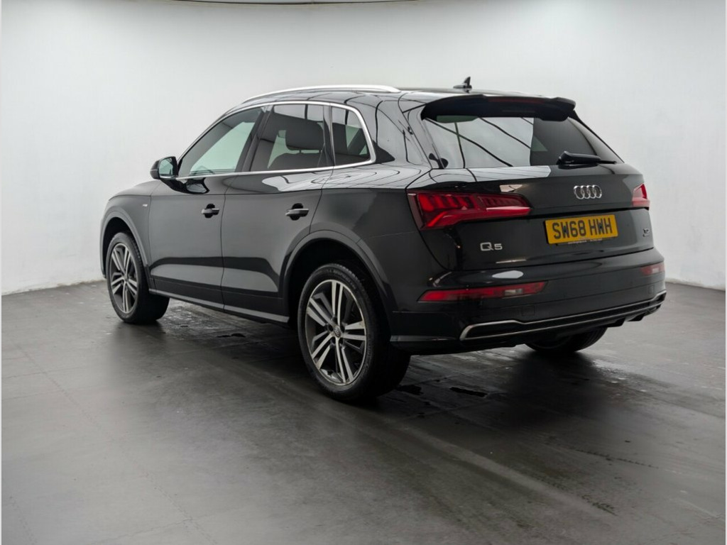 19" Alloys, Cruise Control, Bluetooth, Heated Front Seats, Parking System Plus. Most recent service - 08.05.2025 at 52k miles. This 2018 Audi Q5 TDI S line boasts exceptionally low mileage for its age, having covered just 57,000 miles. As a Euro 6 compliant model, it features a 2.0 litre diesel engine paired with Audi's renowned four wheel drive system, offering a towing weight of 2400 kg. This S line trim enhances the vehicle's appeal with a suite of advanced features, including the Audi Parking System Plus with front and rear sensors, a Bluetooth interface for seamless connectivity, and heated front seats for added comfort. The Deluxe 3-Zone Climate Control ensures a pleasant cabin temperature for all occupants, while the striking LED headlights with dynamic rear indicators provide excellent visibility and a distinctive look. With its MOT valid until July 2026, this Q5 offers peace of mind. The performance of this Audi Q5 is noteworthy, achieving 0-60mph in a brisk 8.1 seconds, demonstrating its capable acceleration. Its low CO2 emissions also highlight its efficiency compared to many vehicles in its class. These combined attributes, from its impressive acceleration and low emissions to its comprehensive features and excellent provenance, position this Q5 TDI S line as a compelling choice for those seeking a premium, capable, and well equipped SUV. 19in Alloy Wheels - 5-Twin-Spoke Star De, 2 x SDXC Card Readers, 2 x USB Charging Ports and 1 x AUX-IN, 4-Way Electric Lumbar Support, 6-Airbag System, Aluminium Roof Rails, Anti Theft Locking Wheel Bolts, Anti-Theft Alarm, Audi Connect Infotainment Services - 3 M, Audi Connect Safety and Service - e-call, Audi Drive Select, Audi Parking System Plus, Audi Pre-Sense City, Audi Smartphone Interface, Audi Sound System, Auto-Dimming Rear-View Mirror, Automatic Headlight Adjustment, Bluetooth Interface, Body Coloured Door Mirrors, CD Drive, Cloth Headlining in Black, Colour Drivers Information System with 7, Contrast Stitching on Seats - Steering W, Cruise Control with Speed Limiter, DAB Digital
