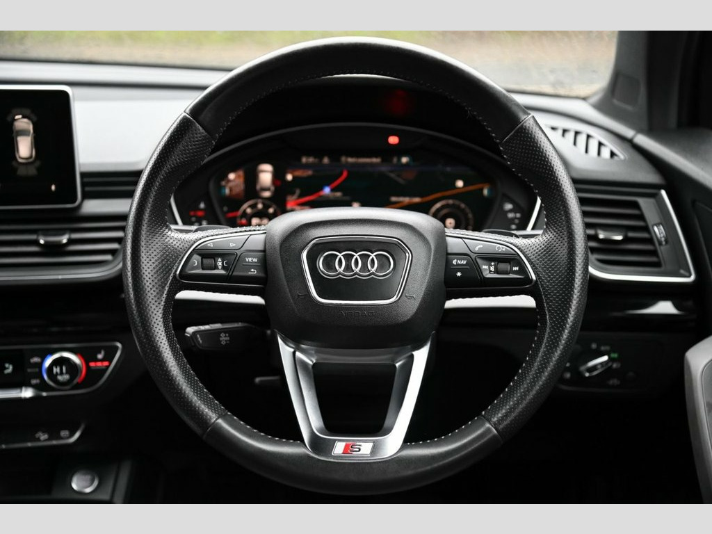 Prestige Car Supermarket in York presents this 2019 Audi Q5 2.0 TDI 40 S line SUV, combining refined performance with quattro on demand all-wheel drive and the smooth S tronic automatic transmission producing 190 ps. Finished in optional Manhattan Grey, this example benefits from desirable factory upgrades including 20in diamond-cut 5-segment-spoke alloy wheels in contrasting grey, Fine Nappa leather upholstery in Rotor Grey with anthracite stitching and Piano Black interior inlays, enhancing both presence and cabin quality. The S line specification delivers striking exterior styling with S line front and rear bumpers, side skirts, roof spoiler, aluminium roof rails and LED headlights with dynamic rear indicators, complemented by privacy glass and acoustic glazing. Inside, heated front sports seats with S embossing, 4-way electric lumbar support, black cloth headlining, stainless steel pedals and illuminated S line door sills create a sporty yet premium environment. Technology highlights include MMI navigation, Audi Smartphone Interface, Bluetooth connectivity, DAB digital radio, Audi Sound System and Audi Drive Select. Comfort and convenience are further enhanced by deluxe 3-zone climate control, keyless go, power-operated tailgate, electric folding heated mirrors, cruise control with speed limiter and Audi Parking System Plus. Safety features include Audi Pre-Sense City, multi-collision brake assist, hill descent control and a comprehensive airbag system, making this Q5 a w 20in Alloy Wheels - 5-Segment-Spoke Desi, Inlays - Piano Finish - Black, Fine Nappa Leather - Rotor Grey with Ant, Manhattan Grey, 19in Alloy Wheels - 5-Twin-Spoke Star De, 2 x SDXC Card Readers, 2 x USB Charging Ports and 1 x AUX-IN, 4-Way Electric Lumbar Support, 6-Airbag System, Aluminium Roof Rails, Anti Theft Locking Wheel Bolts, Anti-Theft Alarm, Audi Connect Safety and Service - e-call, Audi Drive Select, Audi Parking System Plus, Audi Pre-Sense City, Audi Smartphone Interface, Audi Sound System, Auto-Dimming Rear-View Mirror, Automatic Headlight Adjustment, Bluetooth Interface, Body Coloured Door Mirrors, CD Drive, Cloth Headlining in Black, Colour Drivers Information System with 7,