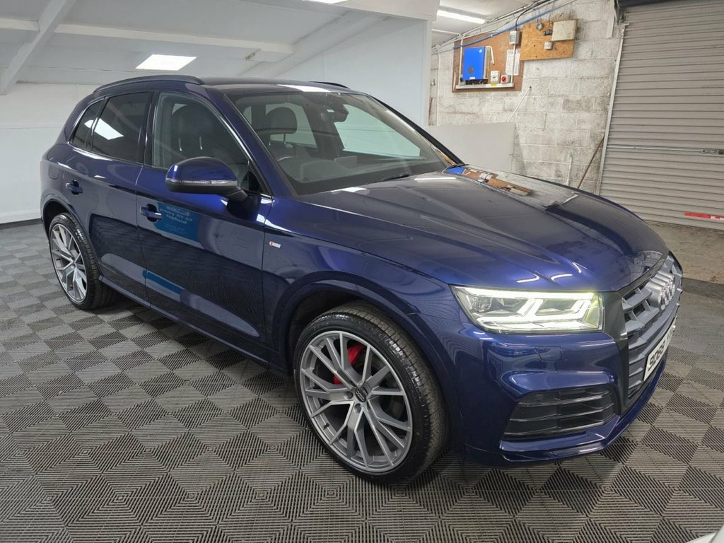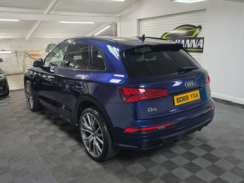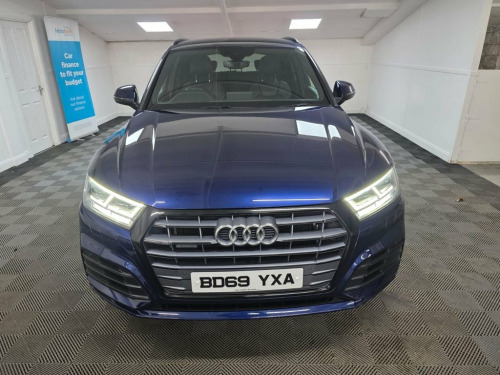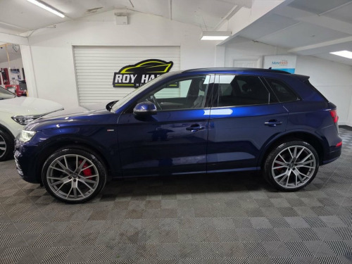 A truly beautiful 2019 Audi Q5 S Line Quattro ready for viewing at Roy Hanna Motors! 2 Keys. 2 owners from new. This car will be sold with a full years MOT! A good service history with records at - ~ 6,148 miles. ~ 14,742 miles. ~ 31,776 miles. ~ 46,389 miles. We will fully service this car along with a full multi point pre delivery check. **Brand new Alloy Wheels & Tyres shown in pictures are an optional extra ** * We have a variety of wheels to chose from for each vehicle* This model is packed full of factory extras like - ~ 4 wheel drive. ~ SD card based MMI navigation. ~ MMI - Multi Media Interface control system. ~ Rear parking sensors. ~ 7" colour display screen ~ Information display system. ~ Audi music interface. ~ Optional rear tinted windows. ~ Front fog lights. ~ Front sports seats. ~ Twin exhaust tailpipe. ~ Multi Media Interface control system. ~ Remote electric boot opening/closing. ~ Voice control system. ~ Remote central locking. ~ Climate and traction controls. ~ Steering wheel mounted controls. ~ AUX & USB connectivity. ~ CD/Radio Player. ~ Body Coloured Bumpers. ~ Electric windows. *We Have Many Different Finance HP & PCP Deals Available To Suit Your Budget, You Can Drive Away In Your New Car With £0 Deposit & Pay Nothing For 2 Full Months! *Brand new alloys are a optional extra £1000 *For A Personalised Quote Give Us A PM / Text / Call Or Propose Yourself For Finance On Our Website *All Usual Dealer Facilities A 19in Alloy Wheels - 5-Twin-Spoke Star De, 2 x SDXC Card Readers, 2 x USB Charging Ports and 1 x AUX-IN, 4-Way Electric Lumbar Support, 6-Airbag System, Air Inlets in Matt Titanium Black with B, Aluminium Roof Rails, Anti Theft Locking Wheel Bolts, Anti-Theft Alarm, Audi Connect Infotainment Services - 3 M, Audi Connect Safety and Service - e-call, Audi Drive Select, Audi Parking System Plus, Audi Pre-Sense City, Audi Smartphone Interface, Auto-Dimming Rear-View Mirror, Automatic Headlight Adjustment, Bluetooth Interface, Body Coloured Door Mirrors, CD Drive, Chrome-Plated Exhaust Trim, Cloth Headlining in Black, Colour Drivers Information System with 7, Contrast Stitching on Seats - Steering