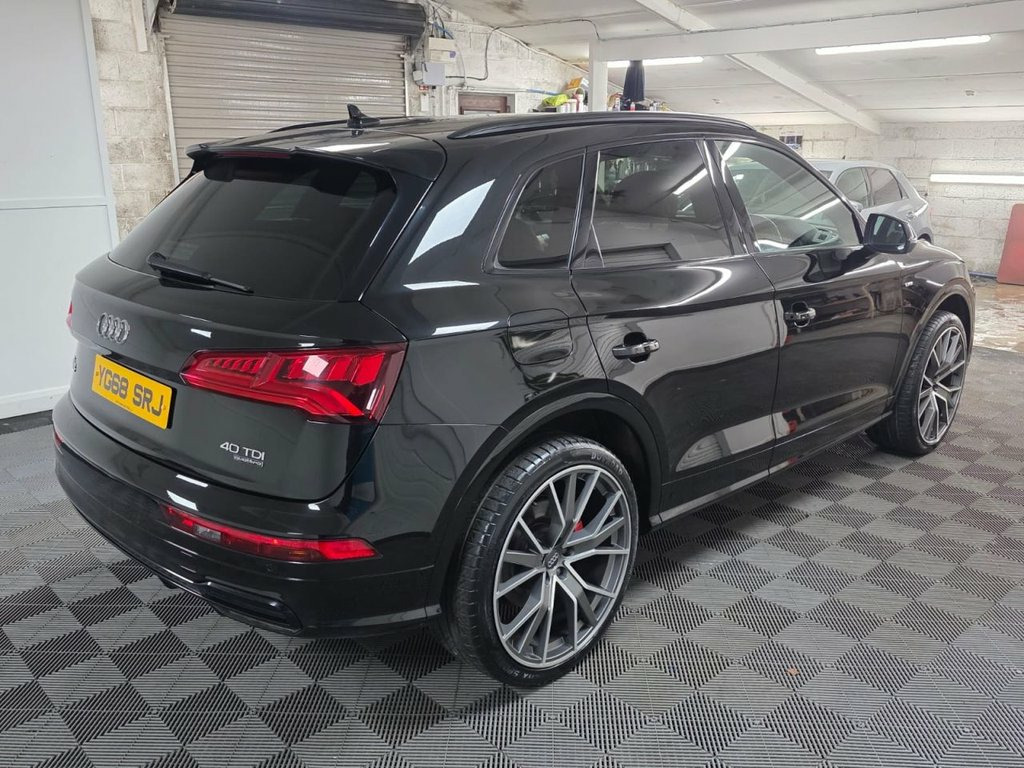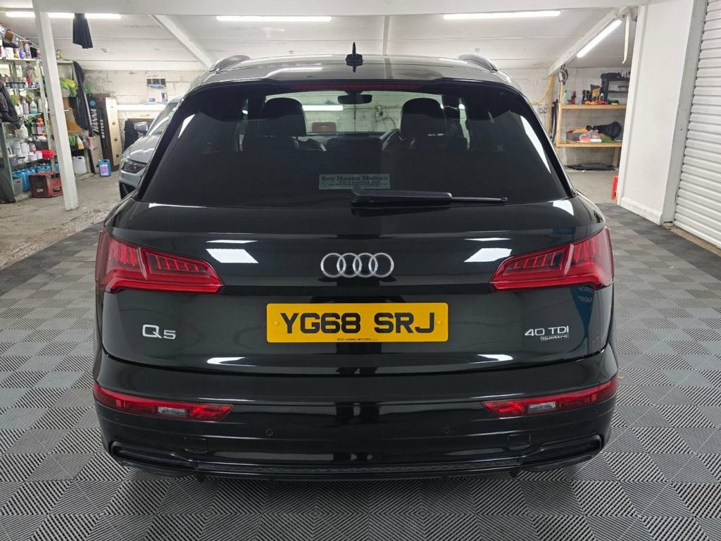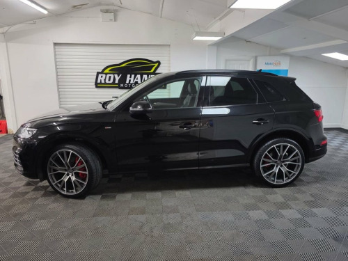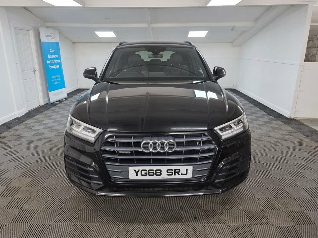 A truly beautiful 2019 Audi Q5 S Line Quattro ready for viewing at Roy Hanna Motors! 2 Keys. MOT to 8th September 2026. A good service history with records at - ~ 17,666 miles. ~ 21,970 miles. ~ 42,963 miles. We will fully service this car along with a full multi point pre delivery check. **Brand new Alloy Wheels & Tyres shown in pictures are an optional extra ** * We have a variety of wheels to chose from for each vehicle* This model is packed full of factory extras like - ~ 4 wheel drive. ~ SD card based MMI navigation. ~ MMI - Multi Media Interface control system. ~ Rear parking sensors. ~ 7" colour display screen ~ Information display system. ~ Audi music interface. ~ Optional rear tinted windows. ~ Front fog lights. ~ Front sports seats. ~ Twin exhaust tailpipe. ~ Multi Media Interface control system. ~ Remote electric boot opening/closing. ~ Voice control system. ~ Remote central locking. ~ Climate and traction controls. ~ Steering wheel mounted controls. ~ AUX & USB connectivity. ~ CD/Radio Player. ~ Body Coloured Bumpers. ~ Electric windows. *We Have Many Different Finance HP & PCP Deals Available To Suit Your Budget, You Can Drive Away In Your New Car With £0 Deposit & Pay Nothing For 2 Full Months! *Brand new alloys are a optional extra £1000 *For A Personalised Quote Give Us A PM / Text / Call Or Propose Yourself For Finance On Our Website *All Usual Dealer Facilities Available. *Credit/Debit Cards Accepted. *Trade Ins 19in Alloy Wheels - 5-Twin-Spoke Star De, 2 x SDXC Card Readers, 2 x USB Charging Ports and 1 x AUX-IN, 4-Way Electric Lumbar Support, 6-Airbag System, Aluminium Roof Rails, Anti Theft Locking Wheel Bolts, Anti-Theft Alarm, Audi Connect Infotainment Services - 3 M, Audi Connect Safety and Service - e-call, Audi Drive Select, Audi Parking System Plus, Audi Pre-Sense City, Audi Smartphone Interface, Audi Sound System, Auto-Dimming Rear-View Mirror, Automatic Headlight Adjustment, Bluetooth Interface, Body Coloured Door Mirrors, CD Drive, Cloth Headlining in Black, Colour Drivers Information System with 7, Contrast Stitching on Seats - Steering W, Cruise Control with Speed Limiter, DAB Digital