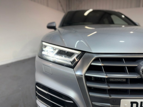 The Audi Q5 2.0 TDI 40 S line quattro is a refined and capable SUV that combines strong performance, premium comfort and all-wheel-drive confidence. Supplied with two keys, this example benefits from a comprehensive Audi main dealer service history recorded at 7, 9, 27, 36, 47 and 55 thousand miles, with three brake fluid services also documented, offering excellent peace of mind. Powered by the 2.0 TDI diesel engine producing 190 PS and paired with the smooth S Tronic automatic gearbox and Audi's quattro all-wheel-drive system, it delivers confident performance and excellent grip in all conditions while remaining Euro 6 compliant. Finished in S line specification, it features alloy wheels and privacy glass, giving it a sporty and premium road presence. Inside, the cabin offers a high-quality driving environment with a digital dashboard, heated front seats and climate control for comfort in all seasons. Technology and convenience features include satellite navigation, DAB radio, Bluetooth connectivity and cruise control. Practical touches such as keyless start, automatic lights, rear parking sensors, a reverse camera and an electric tailgate make everyday driving and loading effortless. A well-maintained, well-specified SUV that perfectly balances performance, luxury and practicality, making it an excellent choice for family use or long-distance driving. 19in Alloy Wheels - 5-Twin-Spoke Star De, 2 x SDXC Card Readers, 2 x USB Charging Ports and 1 x AUX-IN, 4-Way Electric Lumbar Support, 6-Airbag System, Air Inlets in Matt Titanium Black with B, Aluminium Roof Rails, Anti Theft Locking Wheel Bolts, Anti-Theft Alarm, Audi Connect Infotainment Services - 3 M, Audi Connect Safety and Service - e-call, Audi Drive Select, Audi Parking System Plus, Audi Pre-Sense City, Audi Smartphone Interface, Auto-Dimming Rear-View Mirror, Automatic Headlight Adjustment, Bluetooth Interface, Body Coloured Door Mirrors, CD Drive, Chrome-Plated Exhaust Trim, Cloth Headlining in Black, Colour Drivers Information System with 7, Contrast Stitching on Seats - Steering