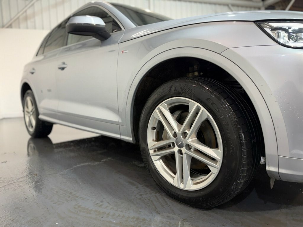 The Audi Q5 2.0 TDI 40 S line quattro is a refined and capable SUV that combines strong performance, premium comfort and all-wheel-drive confidence. Supplied with two keys, this example benefits from a comprehensive Audi main dealer service history recorded at 7, 9, 27, 36, 47 and 55 thousand miles, with three brake fluid services also documented, offering excellent peace of mind. Powered by the 2.0 TDI diesel engine producing 190 PS and paired with the smooth S Tronic automatic gearbox and Audi's quattro all-wheel-drive system, it delivers confident performance and excellent grip in all conditions while remaining Euro 6 compliant. Finished in S line specification, it features alloy wheels and privacy glass, giving it a sporty and premium road presence. Inside, the cabin offers a high-quality driving environment with a digital dashboard, heated front seats and climate control for comfort in all seasons. Technology and convenience features include satellite navigation, DAB radio, Bluetooth connectivity and cruise control. Practical touches such as keyless start, automatic lights, rear parking sensors, a reverse camera and an electric tailgate make everyday driving and loading effortless. A well-maintained, well-specified SUV that perfectly balances performance, luxury and practicality, making it an excellent choice for family use or long-distance driving. 19in Alloy Wheels - 5-Twin-Spoke Star De, 2 x SDXC Card Readers, 2 x USB Charging Ports and 1 x AUX-IN, 4-Way Electric Lumbar Support, 6-Airbag System, Air Inlets in Matt Titanium Black with B, Aluminium Roof Rails, Anti Theft Locking Wheel Bolts, Anti-Theft Alarm, Audi Connect Infotainment Services - 3 M, Audi Connect Safety and Service - e-call, Audi Drive Select, Audi Parking System Plus, Audi Pre-Sense City, Audi Smartphone Interface, Auto-Dimming Rear-View Mirror, Automatic Headlight Adjustment, Bluetooth Interface, Body Coloured Door Mirrors, CD Drive, Chrome-Plated Exhaust Trim, Cloth Headlining in Black, Colour Drivers Information System with 7, Contrast Stitching on Seats - Steering