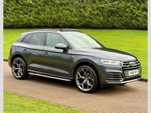 March 2020 Audi Q5 40TDI Quattro S-Line S-Tronic in Manhattan Grey. Full Service History. Mot'd to July 2026. Loaded with spec including Half Leather / Alcantara Interior, Heated Seats, Tilt & Slide Panoramic Glass Roof, Virtual Cockpit / Tech Pack, Navigation System, LED Headlights, Tech Pack, Privacy Glass, Audi Drive Select, DAB Radio, Side Steps, Multi-Functional Steering Wheel etc. Fitted with Brand New 22" Alloys & Tyres (Optional Extra £1295) FINANCE AVAILABLE AT KEEN RATES!! Viewing by Appointment Only Please 19in Alloy Wheels - 5-Twin-Spoke Star De, 2 x SDXC Card Readers, 2 x USB Charging Ports and 1 x AUX-IN, 4-Way Electric Lumbar Support, 6-Airbag System, Air Inlets in Matt Titanium Black with B, Aluminium Roof Rails, Anti Theft Locking Wheel Bolts, Anti-Theft Alarm, Audi Connect Infotainment Services - 3 M, Audi Connect Safety and Service - e-call, Audi Drive Select, Audi Parking System Plus, Audi Pre-Sense City, Audi Smartphone Interface, Auto-Dimming Rear-View Mirror, Automatic Headlight Adjustment, Bluetooth Interface, Body Coloured Door Mirrors, CD Drive, Chrome-Plated Exhaust Trim, Cloth Headlining in Black, Colour Drivers Information System with 7, Contrast Stitching on Seats - Steering