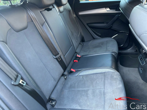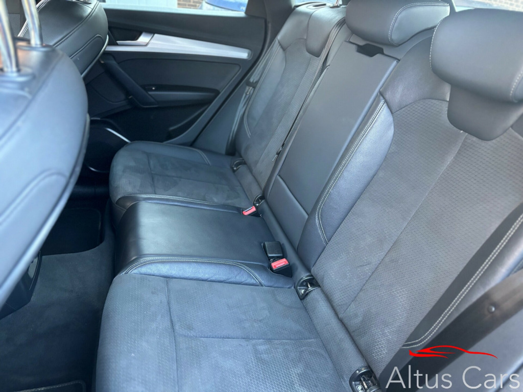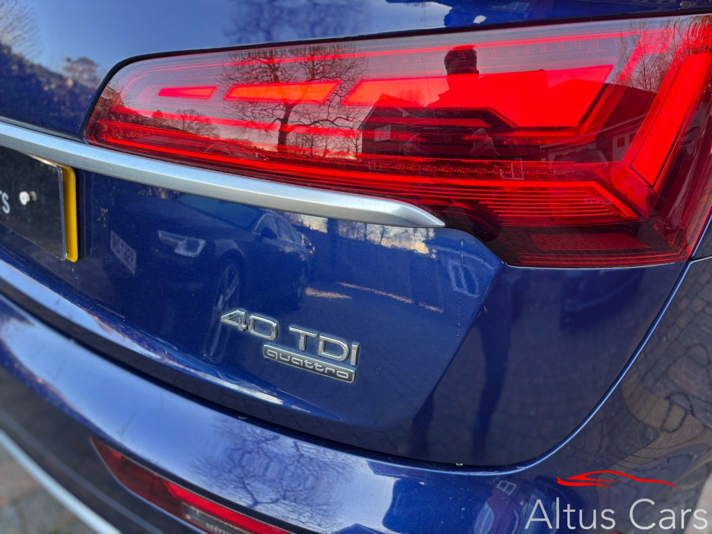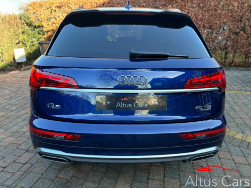 Stunning1 Owner from new Navarra Blue 2021 (71 Plate) Audi Q5 2.0 TDI 40 S line, Full Audi Main Dealer service History, 69254 miles, Just serviced, Features include Virtual Dash, Dynamic Indicators, Reversing Camera, Privacy Glass, 19in Alloy Wheels, Aluminium Roof Rails, Body Coloured Electric Heated & Folding Mirrors, Heated Seats, Climate, S-Line Dinamica-Leather Sport Seats in Black. Sat-Nav, Car Play/Android Auto, Cruise, control, PDC, S-Line Multi function steering wheel,This is a superb example of a 1 owner Q5 in the beautiful Navarra Blue and must be seen to fully appreciate.We are a family business and pride ourselves on supplying premium quality used cars. We will provide 6 months comprehensive WSG Platinum Warranty with Current Market Value claim limit, Enhanced labour rate plus Roadside assistance with this Audi plus a full Motorcheck provenance report for your complete peace of mind. Optional 12 months AA cover available plus we can offer 5 day driveaway insurance if needed. P/ex welcome. in alloy wheels - 5-twin-spoke star design - diamond cut finish, aluminium roof rails, body coloured door mirrors, chrome-plated exhaust trim, door mirrors - electrically folding and heated and auto dimming, door sills in selenite silver, front radiator grille in honeycomb design, high gloss package, lower bumper painted in contrast manhattan grey, privacy glass - rear and rear-side windows, rear chrome trim strips below lights, rear diffuser in body colour with matt aluminium silver insert, roof bars, s line badges on the front wing panels, s line front and rear bumpers, s line side skirts, s line rear spoiler, windscreen with acoustic glass, 2 usb charging ports -1 x usb-a and 1 x usb-c port, amazon alexa integration, audi connect navigation and infotainment services plus - 3 year trial, audi connect with amazon alexa integration, audi wireless smartphone interface, bluetooth interface, dab digital radio, mmi navigation plus with 10.1in touchscreen, 3-spoke multi-function leather steering wheel with grips in perforated leather and s badging, audi virtual cockpit plus - 12.3in screen and three different layout designs, auto-dimming rear-view mirror, cloth headlining in black, comfort front centre armrest - height adjustability and slide function, contrast stitching on seats - steering wheel and gear lever gaiter, deluxe 3-zone electronic climate control, gear lever in black leather, heated front seats, illuminated door sill trims with s logo, inlays - matt brushed aluminium, keyless go, led interior lighting pack, pedals in stainless steel, power operated tailgate, removable luggage compartment floor, split folding 3 seater - rear seat bench in 3 parts - 40-20-40 with rear centre armrest, steering wheel - gear shift paddles, trunk roller cover, 6-airbag system, audi pre-sense city, esc - electronic stabilisation control inc abs - asr and edl, electric child locks for rear doors, electromechanical parking brake, hill descent control, hill hold assist, isofix child seat mounting and top tether, multi collision brake assist, pop-up bonnet for pedestrian protection, underbody protection in body colour, audi drive select, automatic start-stop with coasting functionality and efficiency programme, cruise control system with speed limiter, electromechanical power steering, front and rear parking sensor with acoustic warning, reversing camera, s line sports suspension, voice control system with audi hotword activation - hey audi, quattro on demand, automatic headlight adjustment, automatic headlight and windscreen wiper activation, headlight washers, matrix led headlights with dynamic front and rear indicators