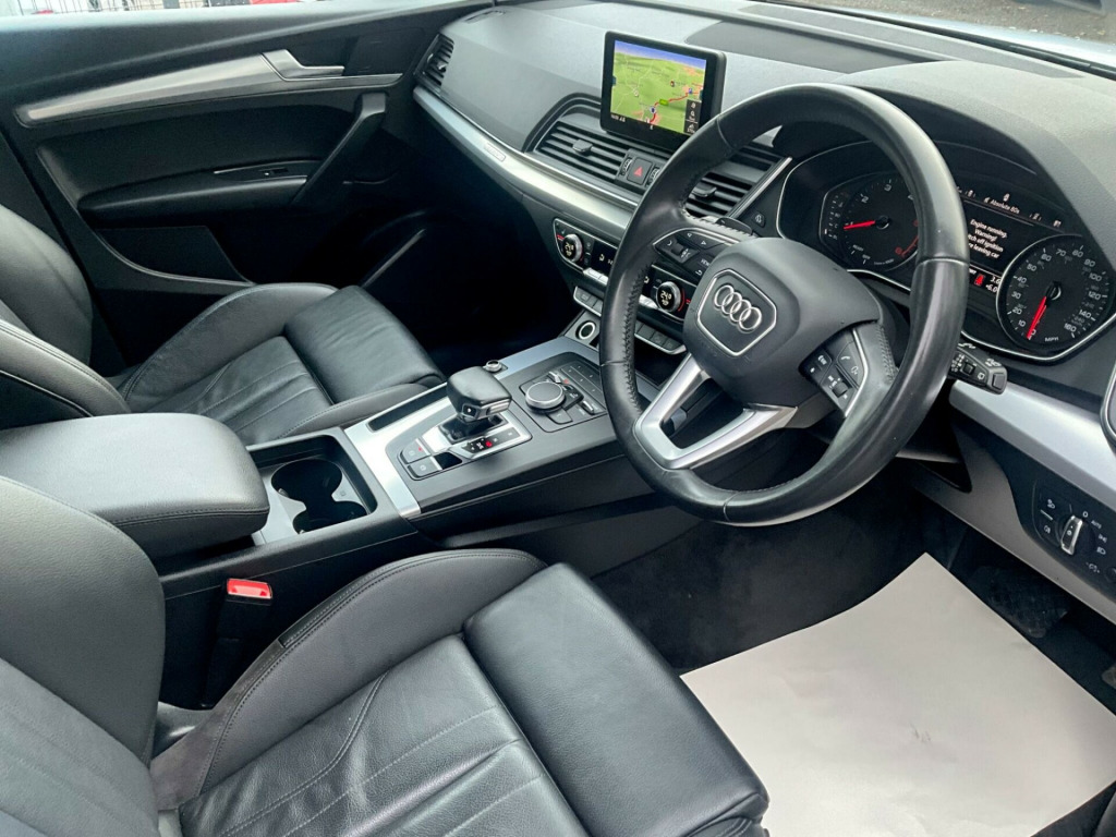 This 2020 Audi Q5 TDI Sport presents an exceptional opportunity with its remarkably low mileage of just 46,400 miles. This four wheel drive SUV is powered by an efficient 2.0 litre Euro 6 diesel engine, offering a compelling blend of performance and economy. The Sport trim level ensures a well equipped interior, featuring the convenience of heated front seats and a deluxe three zone climate control system for all passengers. Navigating tight spaces is made effortless thanks to the Audi Parking System Plus, which includes front and rear sensors, while Xenon headlights with LED daytime running lights provide excellent visibility. Connectivity is also a breeze with the integrated Bluetooth interface.The Audi Q5 TDI Sport excels in practicality, boasting a generous boot space perfect for all your luggage or shopping needs. Its acceleration is notably brisk, achieving 0-62mph in just 8.1 seconds, demonstrating a responsiveness that sets it apart from many other vehicles in its class. This combination of low mileage, efficient performance, advanced technology, and ample space makes this Q5 a truly desirable choice for those seeking a premium and capable SUV.. 18in Alloy Wheels - 5-Arm Star Design, 2 x SDXC Card Readers, 2 x USB Charging Ports and 1 x AUX-IN, 4-Way Electric Lumbar Support, 6-Airbag System, Air Inlets in Matt Titanium Black with Blades in Matt Aluminium Silver, Aluminium Roof Rails, Anti Theft Locking Wheel Bolts, Anti-Theft Alarm, Audi Connect Infotainment Services - 3 Month Trial, Audi Connect Safety and Service - e-call, Audi Drive Select, Audi Parking System Plus, Audi Pre-Sense City, Audi Smartphone Interface, Auto-Dimming Rear-View Mirror, Automatic Headlight Adjustment, Bluetooth Interface, Body Coloured Door Mirrors, CD Drive, Chrome-Plated Exhaust Trim, Cloth Headlining, Colour Drivers Information System with 7in Display, Cruise Control with Speed Limiter, DAB Digital Radio, Deluxe 3-Zone Climate Control, Door Mirrors - Electrically Folding and Heated, Door Sill Trims with Aluminium Inlays, Dynamic Suspension, ESC - Electronic Stabilisation Control inc ABS - ASR and EDL, Electric Windows - Front, Electromechanical Parking Brake, Electromechanical Power Steering, First Aid Kit and Warning Triangle, Front Centre Armrest, Front and Rear Floor Mats, Heated Front Seats, High Multi-Function 3-Spoke Leather Steering Wheel with Gear-Shift Paddles, High-Gloss Package, Hill Descent Control, Hill Hold Assist, ISOFIX Child Seat Mounting and Top Tether, Inlays - Aluminium Rhombus, Keyless Go, LED Interior Lighting Pack, LED Rear Lights, Light and Rain Sensor, MMI Navigation, MMI Radio Plus with 7in Colour MMI Screen, Manual Seat Adjustment, Multi Collision Brake Assist, Pop-Up Bonnet for Pedestrian Protection, Power Operated Tailgate, Radiator Grille in Matt Twilight Grey with Horizontal Matt Aluminium Struts, Rear Diffuser Strip in Selenite Silver, Rear Spoiler, Removable Luggage Compartment Floor, Seat Belt Monitoring, Side Skirts in Matt Selentine Silver, Split Folding Rear Seat Bench - 40-20-40 with Rear Seat Armrest, Stainless Steel Loading Sill Protector, Sun Visors - with Vanity Mirror, Tool Kit, Tow Bar Preparation, Trunk Roller Cover, Tyre Pressure Warning Light, Tyre Repair Kit, Underbody Protection in Matt Selenite Silver, Voice Control System, Windscreen with Acoustic Glass, Xenon Headlights with LED Daytime Running Lights, quattro On Demand, Privacy Glass.