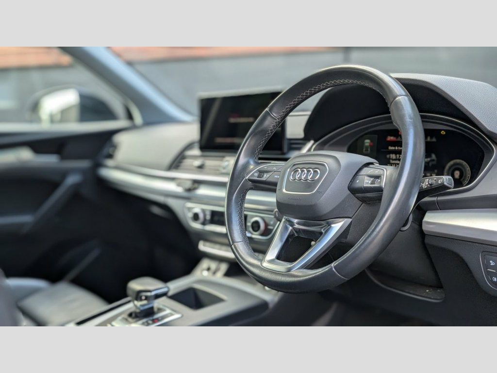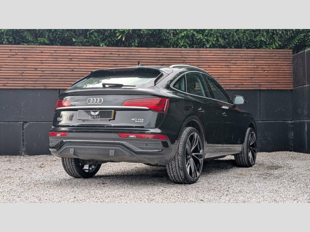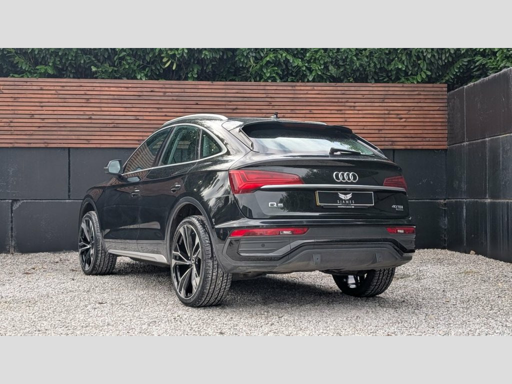 THIS STUNNING Q5 SPORTBACK COMES WITH A GREAT SPECIFICATION INCLUDING   - RS style honeycomb grille - 22" Alloy wheels - Mythos Black - Black Twin Leather - Virtual Dashboard - Heated Seats - Reverse Camera - LED headlights with daytime running lights - Front And Rear Parking Sensors. - Automatic transmission - OPTIONAL EXTRA'S / UPGRADES AVAILABLE:    - Optional brake caliper painting to a colour of your choice - Optional debadge - Optional gloss black badges  - Optonal gloss black wing mirrors - Optional rear privacy - Optional exterior de-chrome - 3 year manufacturer equivalent warranty available to purchase.   - The fitment of the brand new tyres, alloy wheels and styling parts are subject to a fee of £249. This also warrants the fitted parts for 12 months. - Number of keys to be confirmed at the point of sale. Twin Leather - Sport Seats - Black, Mythos Black, 2 USB Charging Ports -1 x USB-A and 1 x , 3-Spoke Multi-Function Leather Steering , 6-Airbag System, Air Inlets in Matt Titanium Black with B, Aluminium Roof Rails, Anti Theft Locking Wheel Bolts, Anti-Theft Alarm, Audi Connect Navigation and Infotainment, Audi Connect with Amazon Alexa Integrati, Audi Drive Select, Audi Pre-Sense City, Audi Virtual Cockpit Plus - 12.3in Scree, Audi Wireless Smartphone Interface, Auto-Dimming Rear-View Mirror, Automatic Headlight Adjustment, Automatic Headlight and Windscreen Wiper, Automatic Start-Stop with Coasting Funct, Bluetooth Interface, Body Coloured Door Mirrors, Chrome-Plated Exhaust Trim, Cloth Hea