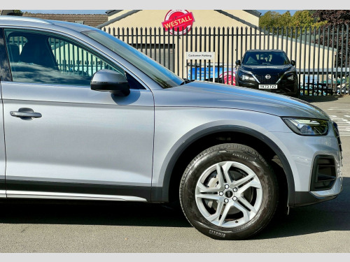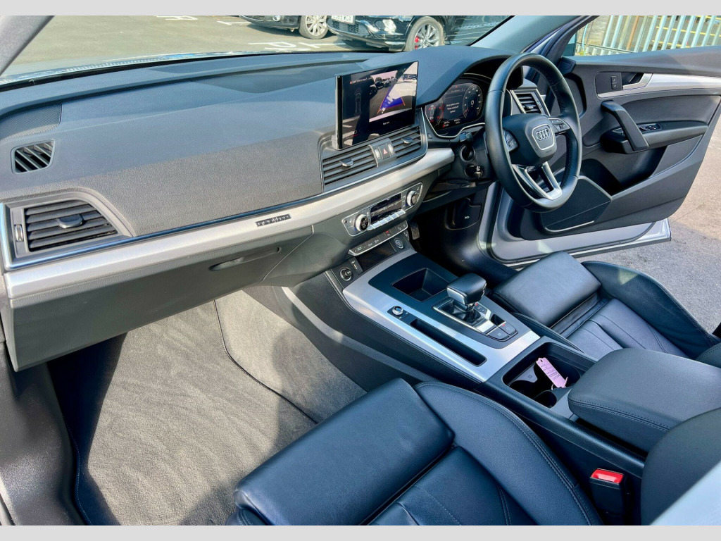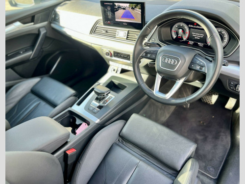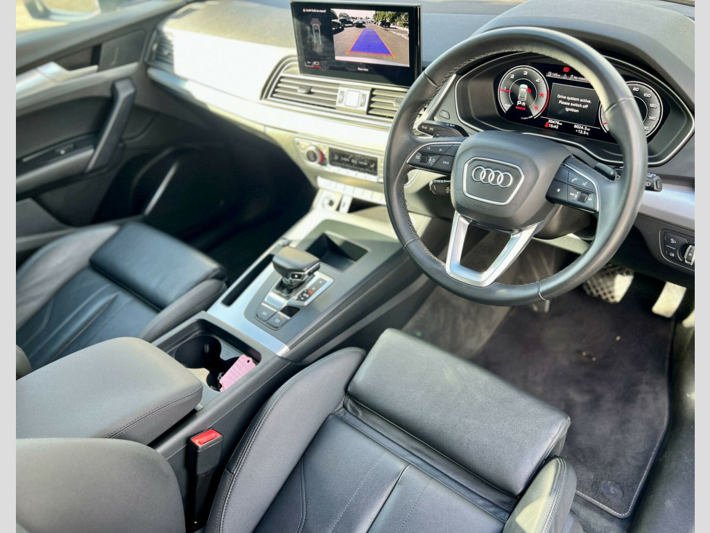 This 2022 Audi Q5 TDI Sport boasts a full dealership service history, with its last service completed on 1st May 2025 at 27,133 miles, indicating excellent care and attention. This Four Wheel Drive SUV features a 2.0 litre Euro 6 diesel engine, offering a substantial towing weight of 2400 kg. It comes equipped with striking LED headlights and tail lights, a helpful reversing camera, and the Audi Wireless Smartphone Interface for seamless Android Auto and Apple CarPlay integration. Front and rear parking sensors with acoustic warnings further enhance its practicality and ease of use.With a low mileage of just 30,500 miles for its age, this Audi Q5 is in superb condition. Its fuel economy is a notable highlight, achieving an impressive 45 miles per gallon, which is better than many similar vehicles. You'll also appreciate the generous boot space, perfect for all your luggage or shopping needs. Furthermore, its low CO2 emissions are a positive indicator of its efficiency. For those seeking performance, the 0-62mph acceleration in just 7.6 seconds demonstrates its responsive power. The vehicle also benefits from a 24 litre AdBlue tank and a 70 litre fuel tank, providing extended range between refills., -litre adblue tank and 70-litre fuel tank, twin leather - sport seats - black, 2 usb charging ports -1 x usb-a and 1 x usb-c port, 3-spoke multi-function leather steering wheel with paddles, 6-airbag system, air inlets in matt titanium black with blades in matt aluminium silver, aluminium roof rails, anti theft locking wheel bolts, anti-theft alarm, audi connect navigation and infotainment services plus - 3 year trial, audi connect with amazon alexa integration, audi drive select, audi pre-sense city, audi virtual cockpit plus - 12.3in screen and three different layout designs, audi wireless smartphone interface, auto-dimming rear-view mirror, automatic headlight adjustment, automatic headlight and windscreen wiper activation, automatic start-stop with coasting functionality and efficiency programme, bluetooth interface, body coloured door mirrors, chrome-plated exhaust trim, cloth headlining in silver, comfort front centre armrest - height adjustability and slide function, cruise control system with speed limiter, dab digital radio, deluxe 3-zone electronic climate control, door mirrors - electrically folding and heated and auto dimming, door sill trims with aluminium inlays, door sills in selenite silver, dynamic suspension, esc - electronic stabilisation control inc abs - asr and edl, electric child locks for rear doors, electric windows - front, electromechanical parking brake, electromechanical power steering, first aid kit and warning triangle, front and rear floor mats, front and rear parking sensor with acoustic warning, heated front seats, high gloss package, hill descent control, hill hold assist, isofix child seat mounting and top tether, inlays - aluminium rhombus, keyless go, led headlights with led tail lights, led interior lighting pack, lower bumper painted in contrast manhattan grey, mmi navigation plus with 10.1in touchscreen, manual seat adjustment with 4-way electric lumbar support, matt twilight grey radiator grille with chrome vertical struts, multi collision brake assist, pop-up bonnet for pedestrian protection, power operated tailgate, rear chrome trim strips below lights, rear diffuser strip in selenite silver, rear spoiler, removable luggage compartment floor, reversing camera, roof bars, seat belt monitoring, split folding 3 seater - rear seat bench in 3 parts - 40-20-40 with rear centre armrest, sun visors - with vanity mirror, tool kit, trunk roller cover, tyre pressure warning light, tyre repair kit, underbody protection in matt selenite silver, voice control system with audi hotword activation - hey audi, windscreen with acoustic glass, quattro on demand