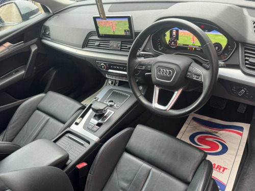 2019 AUDI Q5 SPORT QUATTRO 40 TDI 202 BHP Covered 126k miles, Finished in Silver, Key Features include: 21'' Upgraded alloy wheels (£1,100 Optional extra) Rear Privacy glass Black Edition Styling Front and Rear Parking sensors Reversing camera Full Leather Sports interior Leather Multifunctional steering wheel Paddle shift Heated front seats Dual Climate control Virtual cockpit DAB Radio / Bluetooth / Sat Nav AUDI Drive mode select Electronic Tailgate ISOFIX Child seat points And so much more... 18in Alloy Wheels - 5-Arm Star Design, 2 x SDXC Card Readers, 2 x USB Charging Ports and 1 x AUX-IN, 4-Way Electric Lumbar Support, 6-Airbag System, Air Inlets in Matt Titanium Black with B, Aluminium Roof Rails, Anti Theft Locking Wheel Bolts, Anti-Theft Alarm, Audi Connect Infotainment Services - 3 M, Audi Connect Safety and Service - e-call, Audi Drive Select, Audi Parking System Plus, Audi Pre-Sense City, Audi Smartphone Interface, Audi Sound System, Auto-Dimming Rear-View Mirror, Automatic Headlight Adjustment, Bluetooth Interface, Body Coloured Door Mirrors, CD Drive, Chrome-plated Tailpipe Trims, Cloth Headlining, Colour Drivers Information System with 7, Cruise Control with Speed Lim