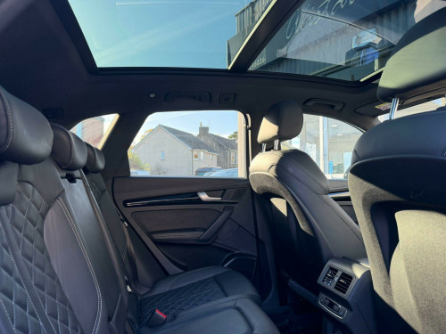 This 2022 Audi Q5 TDI Vorsprung offers an exceptional ownership proposition, having been meticulously maintained by a single owner. As a Euro 6 compliant model, it features a powerful 2.0 litre diesel engine paired with Audi's renowned four wheel drive system, ensuring confident performance in all conditions. The Vorsprung trim level signifies a high specification, including a convenient Advanced Key with electric hands free boot opening, a City Assist Pack with blind spot assistance, and heated front and outer rear seats for enhanced comfort. Connectivity is seamless thanks to the integrated Bluetooth interface.The Q5 TDI Vorsprung boasts impressive acceleration, reaching 0-62mph in just 7.6 seconds, demonstrating its dynamic capabilities. This performance is complemented by a substantial towing weight of 2400 kg, making it a versatile choice for various needs. The generous boot space provides ample room for luggage or shopping, while the 24 litre AdBlue tank and 70 litre fuel tank offer excellent range between refills. These features collectively highlight how this Audi Q5 provides a superior driving experience and practical utility compared to other vehicles in its class.. 2 USB Charging Ports -1 x USB-A and 1 x USB-C Port, 21in Alloy Wheels - 8.5J 5-V-Spoke - Offset Design in Gloss Anthracite Black - Diamond Cut - Audi Sport, 360 Degree Camera, 4-Way Electric Lumbar Support, 6-Airbag System, Adaptive Air Suspension, Advanced Key with Electric Hands-Free Boot Opening System, Amazon Alexa Integration, Anti Theft Locking Wheel Bolts, Anti-Theft Alarm, Audi Beam with Vorsprung Logo, Audi Connect Navigation and Infotainment Services Plus - 3 Year Trial, Audi Connect Safety and Service, Audi Drive Select, Audi Matrix LED Headlights with OLED Rear Lights and Dynamic Front and Rear Indicators, Audi Phone Box with Wireless Charging, Audi Pre-Sense City, Audi Virtual Cockpit Plus - 12.3in Screen and Three Different Layout Designs, Audi Wireless Smartphone Interface, Auto-Dimming Rear-View Mirror, Automatic Headlight Adjustment, Automatic Headlight and Windscreen Wiper Activation, Automatic Start-Stop with Coasting Functionality and Efficiency Programme, Black Door Mirrors, Black Roof Rails, Black Styling Package, Bluetooth Interface, Chrome-Plated Exhaust Trim, City Assist Pack, Cloth Headlining in Black, Comfort and Sound Package, Contrast Stitching on Seats - Steering Wheel and Gear Lever Gaiter, DAB Digital Radio, Deluxe 3-Zone Electronic Climate Control, Door Mirrors - Electrically Folding and Heated and Auto Dimming, Door Sills in Selenite Silver, ESC - Electronic Stabilisation Control inc ABS - ASR and EDL, Electric Child Locks for Rear Doors, Electric Steering Wheel Adjustment, Electric Windows - Front, Electrically Adjustable Front Seats with Memory Function for Drivers Side, Electromechanical Parking Brake, Electromechanical Power Steering, Extended Interior Upholstery Pack, Extended LED Interior Lighting Package - Multi-Coloured, First Aid Kit and Warning Triangle, Front Air Inlet Surrounds in Aluminium, Front Centre Armrest, Front and Rear Floor Mats, Gear Lever in Black Leather, Head-Up Display, Headlight Washers, Heated 3-Spoke Leather Multi-Function Steering Wheel, Heated Front and Outer Rear Seats, High Gloss Package, Hill Descent Control, Hill Hold Assist, ISOFIX Child Seat Mounting and Top Tether, Illuminated Door Sill Trims with S Logo, Inlays - Piano Finish - Black, Keyless Go, LED Interior Lighting Pack, Lower Bumper Painted in Contrast Manhattan Grey, MMI Navigation Plus with 10.1in Touchscreen, Massage Function for Front Seats with Lumbar Support, Multi Collision Brake Assist, OLED Rear Lights - Design 1, Panoramic Glass Sunroof, Park Assist, Pedals in Stainless Steel, Pop-Up Bonnet for Pedestrian Protection, Privacy Glass - Rear and Rear-Side Windows, Rear Bench Seat Plus, Rear Chrome Trim Strips Below Lights, Removable Luggage Compartment Floor, Roof Bars, Running Boards, S Line Front and Rear Bumpers, S Line Side Skirts, S line Rear Spoiler, Seat Belt Monitoring, Split Folding 3 Seater - Rear Seat Bench in 3 Parts - 40-20-40 with Rear Centre Armrest, Steering Wheel - Gear Shift Paddles, Sun Visors - with Vanity Mirror, Tool Kit, Tour Pack, Trunk Roller Cover, Tyre Pressure Warning Light, Tyre Repair Kit, Underbody Protection in Body Colour, Voice Control System with Audi Hotword Activation - Hey Audi, Windscreen with Acoustic Glass, quattro On Demand, 24-litre AdBlue Tank and 70-litre Fuel Tank.