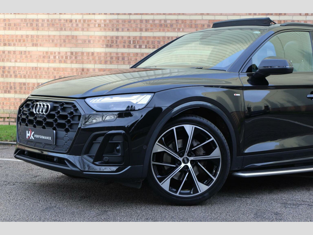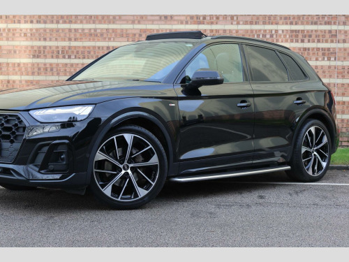 2021 (70) FACELIFT AUDI Q5 40 TDI VORSPRUNG EDITION FINISHED OFF IN MYTHOS BLACK METALLIC, FULL SERVICE HISTORY, JUST HAD MAJOR SERVICE INC GEARBOX SERVICE, OPTIONAL EXTRAS INCLUDE; ELECTRIC SLIDING PANORAMIC SUNROOF, COMFORT & SOUND PACKAGE, BANG & OLUFSEN SOUND SYSTEM, HEATED STEERING WHEEL, KEYLESS ENTRY, HOLD ASSIST, TOUR ASSISTANCE PACKAGE CONSISTING OF ADAPTIVE CRUISE CONTROL, ASSISTED STEERING, LANE CHANGE WARNING, BLIND SPOT MONITOR, PARKING SYSTEM PLUS WITH 360 SURROUND VIEW CAMERA, ADAPTIVE AIR SUSPENSION, FULL NAPA DIAMOND STITCHED LEATHER, MASSAGE SEATS, ELECTRIC SEATS WITH MEMORY FUNCTION, HEATED FRONT SEATS, HEATED REAR SEATS, VIRTUAL COCKPIT, REVERSE CAMERA, PRIVACY GLASS, BLACK ROOF RAILS, MATRIX LED HEADLIGHTS WITH HIGH BEAM ASSIST AND DYNAMIC INDICATORS FRONT / REAR, ELECTRIC FOLDING WING MIRRORS, FACTORY SIDE STEPS, FACTORY BLACK STYLING PACK, APPLE CAR PLAY, 21in Alloy Wheels - 5-Twin-Spoke Module Design Audi Sport, Adaptive Comfort Suspension with Damping Control, Adaptive Cruise Control with Stop&Go and Traffic-Jam Assist, Anti-Theft Alarm, Active Lane Assist, Drive Select, Matrix LED Headlights with LED Rear Lights and Dynamic Front and Rear Indicators, Parking System Plus, Phone Box with Wireless Charging, Pre-Sense City, Side Assist including Pre-Sense Rear, Smartphone Interface, Audi Virtual Cockpit, Auto-Dimming Rear-View Mirror, Automatic Headlight Adjustment, Camera-Based Traffic Sign Recognition, Collision Avoidance Assistant, Comfort and Sound Package, Contrast Bumpers in Manhattan Grey Paint Finish, Contrast Stitching on Seats - Steering Wheel and Gear Lever Gaiter, DAB Digital Radio, Deluxe 3-Zone Climate Control, Door Mirrors - Folding with Auto-Dimming and Memory Function, Extended LED Interior Lighting Package - Multi-Coloured, Extended Leather Package, Head-Up Display, Headlights - High-Beam Assist, Heated Front and Outer Rear Seats, High-Gloss Package, Hill Hold Assist, Keyless Go, LED Interior Lighting Pack, Massage Function For Front Seats, £199 ADMIN FEE APPLIES.