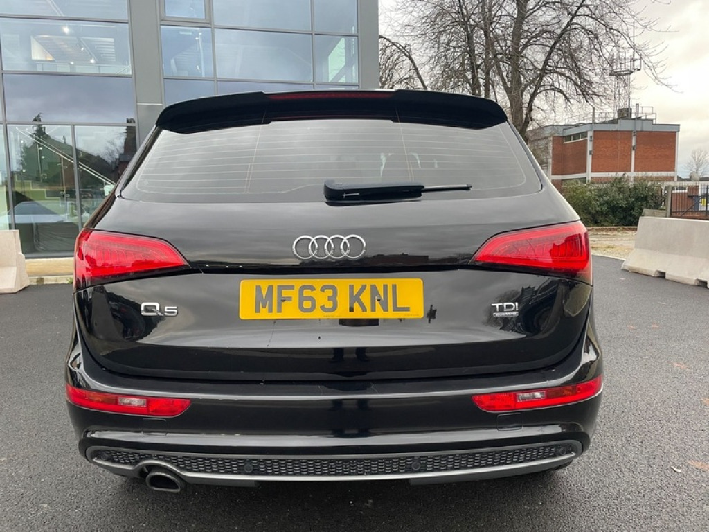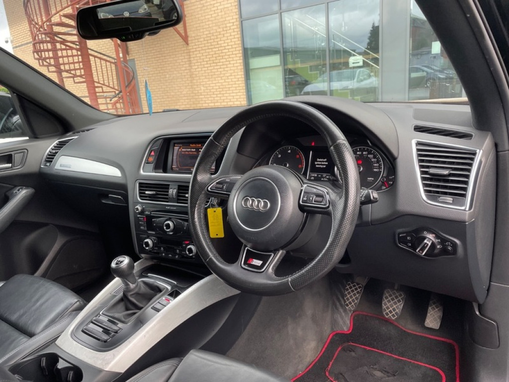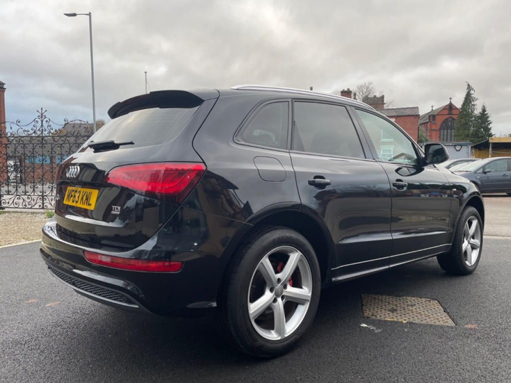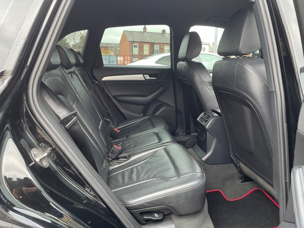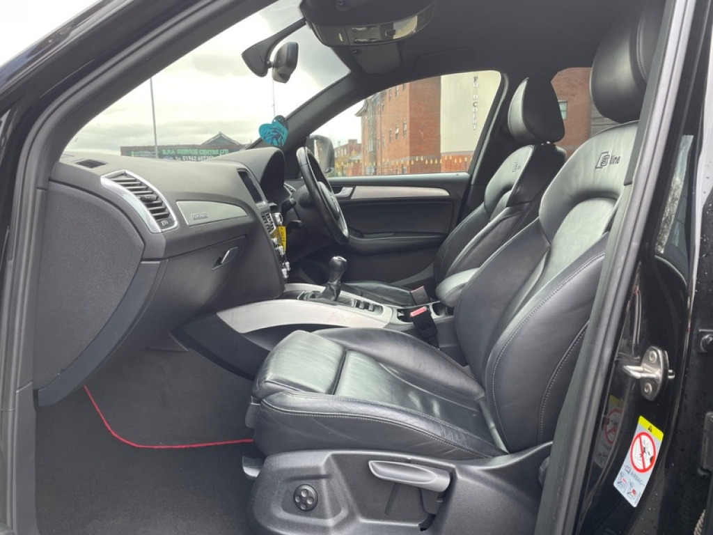 BRILLIANT EXAMPLE OF THE AUDI Q5 S LINE 2.0 TDI QUATTRO SUV MANUAL, OFFERS GREAT PERFORMANCE (177 PS) COUPLED WITH EXCELLENT FUEL ECONOMY AVG 50+ MPG COMBINED, SOUGHT AFTER QUATTRO ALL WHEEL DRIVE MODEL DELIVERING PERFECT HANDLING ALL YEAR ROUND, METICULOUSLY MAINTAINED, TIMING BELT KIT & WATER PUMP DONE, BRAND NEW BRAKES FITTED AND RECENTLY SERVICED @113K MILES, HIGH SPECIFICATION FROM FACTORY + FINISHED IN BLACK METALLIC PAINT, AUDI ALLOYS, XENON HEADLIGHTS, PARKING AID, BLACK LEATHER UPHOLSTERY, AUDI MULTIMEDIA, DAB RADIO, BLUETOOTH CONNECTIVITY ++ SUPPLIED WITH 3 MONTHS WARRANTY AND 12 MONTHS AA BREAKDOWN COVER - 2013 (63) Audi Q5 2.0 TDI SUV Diesel Manual quattro Euro 5 (s/s) (177 ps). Warranted Mileage covered 113,000 miles backed by good service history. Oil service done at 113k miles. Mot till November 2026 Fuel Economy: offers an impressive 50+ MPG combined. 12 months Road Tax cost 265 pounds. SPECIFICATION includes: Black paint, Audi alloy wheels finished in silver, Auto xenon headlights with DRL, Front fog lights, Rear LED lights, rear parking aid, Black leather upholstery, S line embossed, Central arm rest, Multifunction steering wheel, Dual zone climate control, Audi multimedia, DAB radio, Bluetooth phone and audio, CD, SD Card, Start stop function, Electric heated door mirrors, Electric windows and Privacy glass. Presented with 1 remote keys, V5 and Service history. HPI Clear! =============================================== Part Exchange welcome | Competitive Finance options | Walk round video on request | Delivery available | View 30+ HD images on our website | FCA & VAT registered | All dealer facilities available =============================================== Book a viewing and test drive today. Call or Message: 01942 602 494 or 07734733242. Why not visit our forecourt (Group 1 Motor Company ltd) 105 Chapel street, Leigh, Wigan, Greater Manchester, Lancashire, WN7 2DA