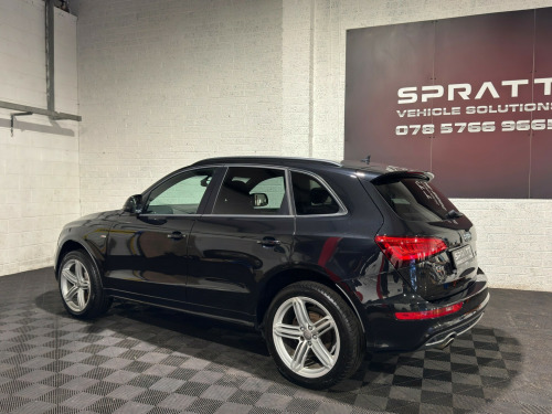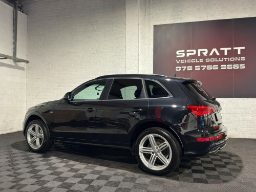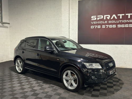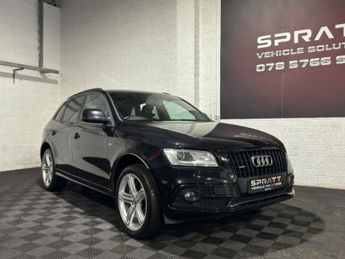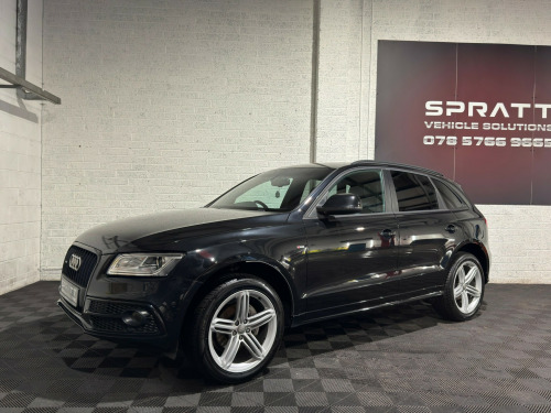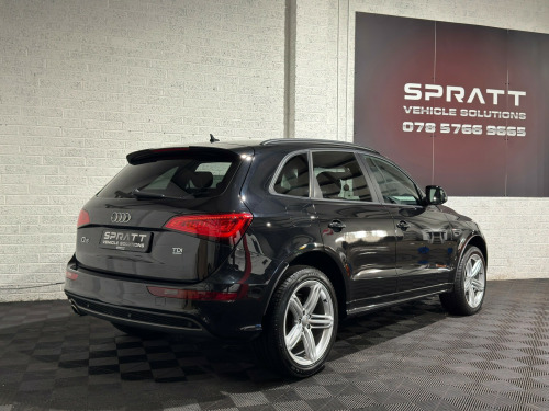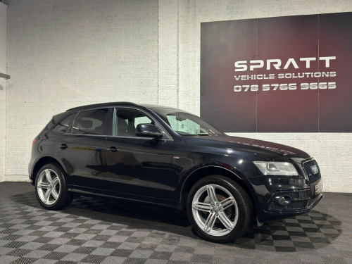 2013 Audi Q5 S-Line Plus Quattro 2.0 TDI 177 BhpRefined, capable, and built to impress - this stunning S-Line Plus Q5 finished in Phantom Black Pearl combines luxury and performance with the confidence of Audi's renowned Quattro all-wheel drive.Supplied with two keys 11 service stamps Supplied with a years MOTS-Line Plus styling with full leather interiorQuattro 4WD system - ideal for all seasonsSatellite navigation & Bluetooth connectivityXenon headlights with LED DRLsFront & rear parking sensorsDual-zone climate controlHeated front seatsCruise controlElectric tailgate20'' Alloy wheels£8,725 or £200.77 p/mSVS FlexiPay - Alloy wheel packages, splitter kits, towbars, roof rails. Spread the cost over 4 months - 0% interestIntroducing SVS Assist - Complete Peace of Mind with Every VehicleAt Spratt Vehicle Solutions, we go beyond just sales and servicing.With SVS Assist, you're covered long after you leave our forecourt.Comprehensive Warranty Cover - Protects you against unexpected repair costsNationwide Breakdown Recovery - 24/7 assistance anywhere in the UKCourtesy Vehicle Options - Keep moving while we handle the restRoadside & Home Start Support - We're there whenever you need usEasy Claims Process - Hassle-free and handled directly through SVSCall the sales team todayAndrew - 07885704784Ryan - 07857669665 iver information centre with colour display in instrument panel, mmi - multi media interface control system, rear acoustic parking system, remote electric boot opening/closing, service interval indicator, servotronic speed related pas, diesel particulate filter, audi music interface, auxiliary input socket, concert radio/single cd player with mp3 facility, dab digital radio, acoustic windscreen, aluminium sill plates, aluminium window surround, auto dimming rear view mirror, body colour bumpers, chrome exhaust tailpipe, chrome fog light surround, electrically adjustable and heated door mirrors, front and rear electric windows, front fog lights, headlight washers, high gloss black grille, light and rain sensor for auto activation of lights and windscreen wipers, platinum grey rear diffuser, privacy glass, rear spoiler, rear wiper, s line body styling, towbar preparation, xenon headlights with led running lights, 3 rear headrests, 3 zone climate control, front centre armrest with 12v socket, front sports seats including electric lumbar support, height adjustable driver, height adjustable front head restraints, isofix front passenger and rear seat preparation, reach + rake adjustable steering column, split fold rear seat, 3 point seatbelts on all seats, abs, driver and passenger airbags, driver and passenger side airbags, electromechanical parking brake, esp, first aid kit, front passenger airbag deactivation, hill descent control, traction control, warning triangle, locking wheel bolts, remote central locking, thatcham category 1 alarm + immobiliser, collapsible spare wheel, 20'' Alloys