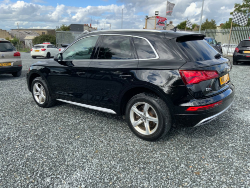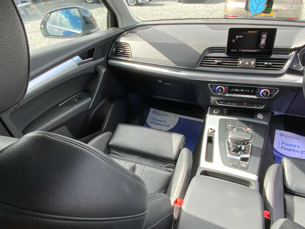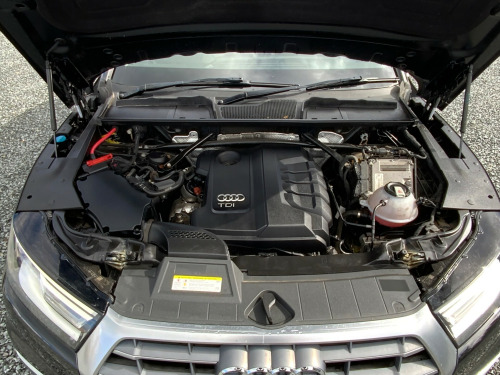 This 2018 Audi Q5 2.0 TDI Quattro Sport 5dr S Tronic Estate, with 74,000 miles on the clock, is a Diesel vehicle that is ULEZ compliant and boasts a valid MOT until 05/12/2027. With 5 seats and 5 doors, it is spacious and practical for all your needs. Previously owned by 2 registered keepers, this car comes with top-of-the-line features including Audi connect, Audi drive select, and Audi smartphone interface, as well as a driver information centre with a colour display in the instrument panel and electric power steering. Whether you're commuting or heading out on a road trip, this Audi Q5 offers both comfort and performance, making it a reliable and stylish choice for any driver. di connect, audi drive select, audi smartphone interface, driver information centre with colour display in instrument panel, electric power steering, power tailgate, remote electric boot opening/closing, sd card based mmi navigation, service interval indicator, voice control system, diesel particulate filter, 2 usb ports, audi sound system, auxiliary input socket, cd player, dab digital radio, mmi radio plus with 7'' colour mmi screen and mmi controller, acoustic windscreen, aluminium roof rails, aluminium sill plates, auto dimming rear view mirror, black high gloss front air inlet in matt aluminium effect, body colour bumpers, body colour door mirrors, body colour rear diffuser insert, chrome exhaust tailpipe, electric headlight adjustment, electrically adjustable and heated door mirrors, front and rear electric windows, front fog lights, headlight range control, headlight washers, light and rain sensor for auto activation of lights and windscreen wipers, loading sill protector in stainless steel, rear diffuser strip in selenite silver, rear spoiler, rear wiper, selenite silver underbody guard, twilight grey matt radiator grille with matt aluminium horizontal chrome struts, 3 rear headrests, 3 spoke leather multi function steering wheel, 3 zone climate control, 4 way electric lumbar support for driver and front passenger, 40:20:40 split folding rear bench seat, cloth headlining, front centre armrest with 12v socket, front sports seats, front/rear floor mats, height adjustable driver, height adjustable front head restraints, isofix front passenger and rear seat preparation, jack and tool kit, load compartment cover, luggage compartment carpet, matt selenite silver door inserts, reach + rake adjustable steering column, removable luggage compartment floor, removable net partition, roller blind loadspace cover, sunvisors with vanity mirrors, non smokers pack, 3 point seatbelts on all seats, abs, curtain airbags, driver and passenger airbags, driver and passenger side airbags, electromechanical parking brake, esc with asr, esp, first aid kit, front passenger airbag deactivation, hill descent control, seat belt force limiter, seatbelt warning lamp, traction control, tyre pressure monitor, warning triangle, keyless go access/ignition system, locking wheel bolts, remote central locking, thatcham category 1 alarm + immobiliser, aluminium rhombus inlay, 18'' Alloys
