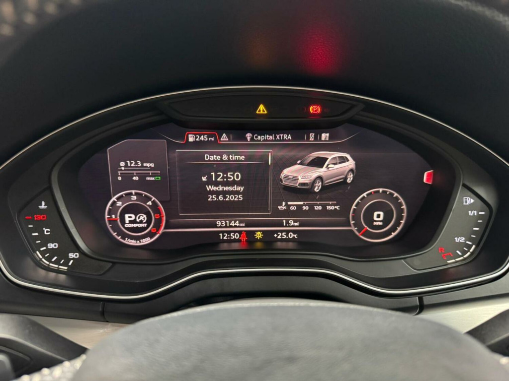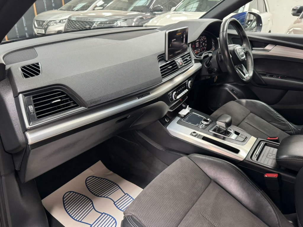 With a clear vehicle history check, this 2017 Audi Q5 2.0L diesel is a smart choice. As a Q5 TDI S line, it boasts four-wheel drive and meets Euro 6 emission standards. The S line trim adds a touch of sporty sophistication, while practical features enhance the driving experience. Enjoy the convenience of the Technology Package, which includes Bluetooth connectivity and wireless phone charging. The exterior is enhanced with striking 20-inch alloy wheels in a 10-Y-spoke design, crafted from cast aluminium. Comfort is assured with heated front seats and folding door mirrors, while the Audi Virtual Cockpit adds a modern, digital feel to the interior. Plus, youll have peace of mind with a 6-month warranty included. This Q5 stands out with its fuel economy, achieving up to 55 mpg, meaning fewer trips to the petrol station compared to similar vehicles. Acceleration from 0 to 62mph in just 7.9 seconds demonstrates its responsive performance, making it quicker off the mark than many alternatives. The large boot space offers ample room for luggage, shopping, or sports equipment, making it more practical than other cars in its class. Furthermore, its low CO2 emissions mean youll be contributing less to pollution than with comparable vehicles. 6 months warranty, Next MOT due 13/09/2025, Excellent bodywork, Part suede interior - Excellent Condition, Tyre condition Good, Four wheel-drive, 5 seats, Blue, 3 owners, Upgrades - 20in Alloy Wheels - 10-Y-Spoke Design - Cast Aluminium, Door Mirrors - Folding, Audi Virtual Cockpit, Leather-Alcantara - Black with Rock Grey Stitching, Technology Package, Standard Features - 2 x SDXC Card Readers, 2 x USB Charging Ports and 1 x AUX-IN, 4-Way Electric Lumbar Support, 6-Airbag System, Air Inlet Horizontal Inlay in Matt Aluminium, Aluminium Roof Rails, Anti Theft Locking Wheel Bolts, Anti-Theft Alarm, Audi Connect Infotainment Services - 3 Month Trial, Audi Connect Safety and Service - e-call, Audi Drive Select, Audi Parking System Plus, Audi Pre-Sense City, Audi Smartphone Interface, Audi Sound System, Auto-Dimming Rear-View Mirror, Automatic Headlight Adjustment, Bluetooth Interface, Body Coloured Door Mirrors, CD Drive, Cloth Headlining in Black, Colour Drivers Information System with 7in Display, Comfort Dynamic Suspension, Contrast Stitching on Seats - Steering Wheel and Gear Lever Gaiter, Cruise Control with Speed Limiter, DAB Digital Radio, Deluxe 3-Zone Climate Control, Door Inserts in Matt Selenite Silver, Door Mirrors - Electrically Adjustable and Heated with Integrated LED Side Indicators, ESC - Electronic Stabilisation Control inc ABS - ASR and EDL, Electric Windows - Front and Rear, Electromechanical Parking Brake, Electromechanical Power Steering, First Aid Kit and Warning Triangle, Front Centre Armrest, Front and Rear Floor Mats, Gear Lever Knob in Black Perforated Leather, Heated Front Seats, High Multi-function 3-Spoke Leather Steering Wheel with Grips in Perforated Leather and S Badging with Gear-Shift Paddles, High-Gloss Package, Honeycomb Side Air Inlet Grille in Titanium Black, ISOFIX Child Seat Mounting and Top Tether, Illuminated Door Sill Trims with S Logo, Inlays - Matt Brushed Aluminium, Keyless Go, LED Headlights featuring Q Signature Design with LED Rear Lights and Dynamic Rear Indicators, LED Interior Lighting Pack, LED Rear Lights, Light and Rain Sensor, Luggage Compartment Cover, Luggage Compartment Mat, MMI Navigation - SD Card Based, MMI Radio Plus with 7in Colour MMI Screen and MMI Controller, Manual Seat Adjustment, Non-Smoking Package, Pedals in Stainless Steel, Pop-Up Bonnet for Pedestrian Protection, Power Operated Tailgate, Privacy Glass with Acoustic Glazing For Front Windows, Radiator Grille in Matt Twilight Grey with Horizontal Matt Aluminium Struts, Rear Diffuser in Body Colour with Matt Aluminium Silver Surrounds, Remote Central Locking, Removable Luggage Compartment Floor, Removable Net Partition, S Line Badges on the Front Wing Panels, S Line Front and Rear Bumpers, S Line Side Skirts, S line Rear Spoiler, Seat Belt Monitoring, Side and Rear Windows in Heat-Insulating Glass, Split Folding Rear Seat Bench, Stainless Steel Loading Sill Protector, Tool Kit and Car Jack, Towbar Preparation, Tyre Pressure Warning Light, Tyre Repair Kit, Underbody Protection in Matt Selenite Silver, Voice Control System, Windscreen with Acoustic Glass, quattro On Demand, P/X WELCOME, £0 DEPOSIT FINANCE AVAILABLE *FOR MORE INFO PLEASE CALL BAZ OR WHATSAPP ON 07941222264.