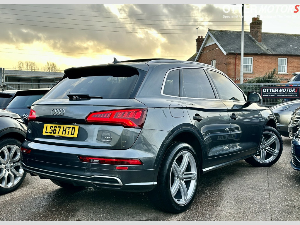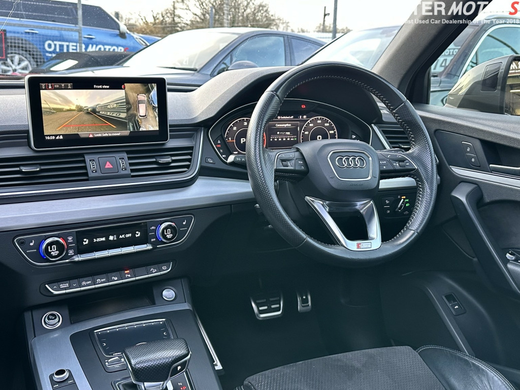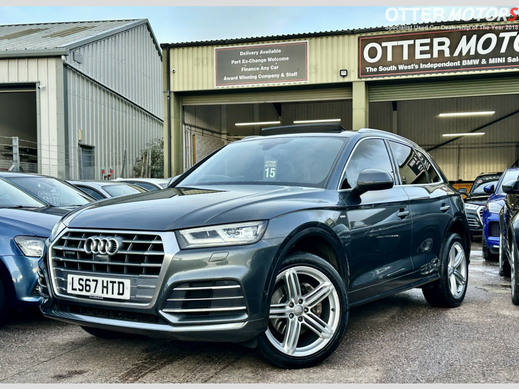 -???? OVER 300 5* REVIEWS ON AUTOTRADER + GOOGLE, -???? SPECIALIST USED CAR DEALERSHIP OF THE YEAR 2018, -???? SHORTLISTED USED CAR DEALERSHIP OF THE YEAR 2019, -???? AWARD WINNING SALES TEAM WITH THE FUTURE STAR AWARD 2020 FROM USED CAR MAGAZINE, -???? SHORTLISTED USED CAR DEALER OF THE YEAR 2022, -???? SHORTLISTED INDEPENDENT DEALER OF THE YEAR 2023, , - NEW 12 MONTH MOT, - FRESHLY SERVICED, - 6 MONTH NATIONWIDE WARRANTY, - BUY IN STORE OR ONLINE, - DELIVERY AVAILABLE, - APPLY FOR FINANCE ONLINE USING THE CALCULATOR BELOW, - BESPOKE VIDEO PRESENTATION UPON REQUEST, - MULTI-AWARD WINNING COMPANY AND STAFF, , Key Features;, , **DAYTONA GREY PAINTWORK**20 5-SEGMENT ALLOY WHEELS**PARK ASSISTANCE PACKAGE**REVERSING CAMERA**TILT + SLIDE PANORAMIC SUNROOF**PRIVACY GLASS**LED HEADLIGHTS**ELECTRIC TAILGATE**SPARE WHEEL**TECHNOLOGY PACKAGE**APPLE CAR PLAY**VIRTUAL DASH**WIRELESS PHONE CHARGER**SAT NAV**DAB RADIO**BLUETOOTH INTERFACE**ELECTRIC HANDBRAKE WITH HILL HOLD ASSIST**DUAL ZONE CLIMATE CONTROL**PUSH BUTTON START**ELECTRIC FOLDING WING MIRRORS**LEATHER/ALCANTARA UPHOLSTERY**MULTIFUNCTIONAL STEERING WHEEL WITH PADDLES**AUDI DRIVE SELECT**, , Description;, , This highly specd Audi Q5 S-Line has just arrived into stock and stands as a great example of this popular range> it is equipped with a range of highly desirable extras and comforts such as Apple Car Play, Virtual dash, Reversing Camera, and the all important Tilt + Slide Panoramic Sunroof! The car comes with just 3 owners from new and has been excellently kept both aesthetically and mechanically and comes with a great service history that includes a Cam Belt + Water Pump Change & Gearbox Service in 2023! The car will be supplied freshly serviced with a new 12 Month MOT! (LS67 HTD), , Every vehicle we sell undergoes rigorous preparations including a Fresh Service, 12 Month MOT, and professional valet & detail to ensure our high standards are met! With over 20 years specialist experience, weve built a trusted reputation across the Southwest and Nationally! Our showroom is conveniently located near Exeter (EX11 1RE), just 10 minutes from the M5, however we also offer nationwide delivery, bringing your next car straight to your door. , IF YOU HAVE ANY QUESTIONS PLEASE CONTACT US ON 01404 812608 / 07445 137231 / [email protected] / WHATSAPP. VISIT OUR FAQ PAGE FOR FREQUENTLY ASKED QUESTIONS.