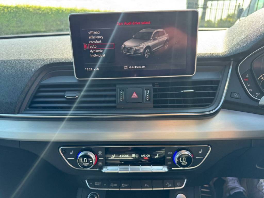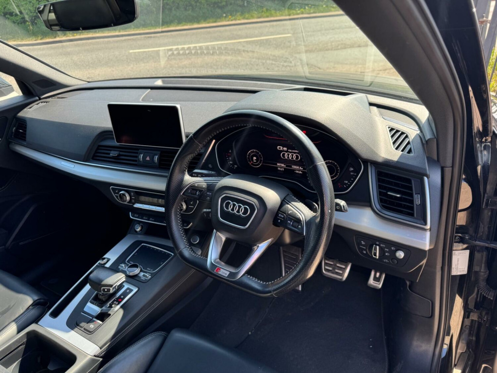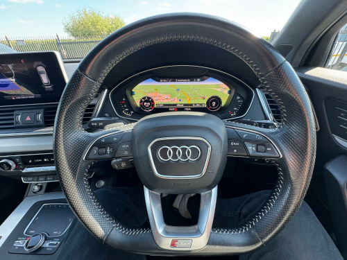Absolutely gorgeous car to look at and drive. Over £10k of optional extras including.......Panoramic Sunroof, Comfort & Sound Pack (inc Bang & Olufsen premium sound system), Vision Pack (head up display, virtual cockpit etc), Technology Pack (MMI Navigation, wireless phone charging), 20 Diamond Cut Alloy Wheels, Electrically adjustable front seats with memory function on the drivers side, Upgraded Fine Nappa Leather Seats, Adaptive Cruise Control Plus, Audi Matrix LED Headlights, Rear Camera, Flat Bottom 3 Spoke Steering Wheel & More! , , Has to be one of the highest spec Q5s available at this age, miles & price! , , Just had a gearbox service at Audi Crewe. , Very clean inside and out. DAB Radio, Bluetooth, Heated Seats, Front + Rear Parking Sensors, Electric Mirrors, Electric Sunroof, Keyless Start, Remote Central Locking, Spare Key, USB Port & the rest! , , MOT until 28/04/2026 + 3 Month Warranty.