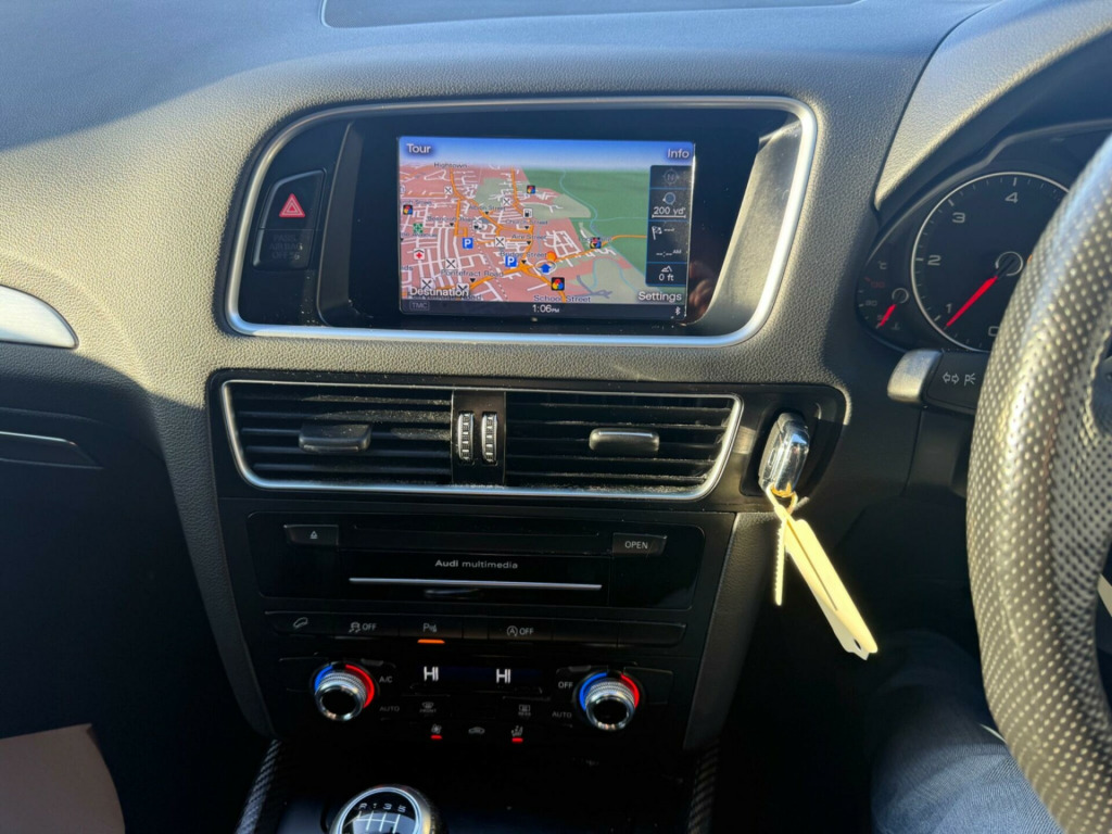 This 2014 Audi Q5 TDI S line Plus presents a remarkable opportunity with its impressively low mileage of just 80,000 miles for its age, complemented by a clear vehicle history check. This sought after four wheel drive model is powered by an efficient 2.0 litre diesel engine, offering a blend of performance and economy. Inside, you'll find a premium S line Plus trim, featuring a multi-function sports steering wheel crafted from leather, and deluxe three zone climate control to ensure comfort for all occupants. The Audi Parking System Plus, including both front and rear sensors, along with automatic headlights activated by a light sensor, further enhance the driving experience.The generous boot space of this Q5 makes it an ideal choice for families or those who require ample storage, setting it apart from many other vehicles in its class. The inclusion of rear parking sensors as part of the parking assistance system provides added convenience and confidence when manoeuvring. This Audi Q5 TDI S line Plus is a well equipped and well maintained example, offering a compelling package for any discerning buyer. chnology package - advanced, 12v power socket, 20gb jukebox for storing and managing music files - wma and mp3 format, 20in alloy wheels - 5-segment-spoke design, abs - anti-lock braking system, ami - audi music interface, aux-in socket, acoustic windscreen, air conditioning - deluxe automatic at the rear, airbags - driver, airbags - front passenger, airbags - front side, airbags - head system, alarm - thatcham category 1, aluminium roof rails, amplifier - 6 channel, anti theft locking wheel bolts, audi parking system plus, audi sound system, audio sound system, auto-dimming rear-view mirror, automatic headlight range adjustment, automatic wipers with rain sensor, body coloured bumpers, bumpers - s line front, car jack, cloth headlining in black, collapsible spare wheel, colour drivers information system - dis, concert radio, cruise control, cup holders - centre console, dab digital radio, deluxe 3-zone climate control, diffuser - platinum grey, display screen colour 7in high resolution, door mirrors - electrically adjustable and heated, ebd - electronic brakeforce distribution, esp - electronic stability programme, electric windows - front and rear, electrically adjustable 4-way lumbar support, electromechanical parking brake, electromechanical power steering, european navigation data, first aid kit, front centre armrest, front fog lights, front passenger airbag deactivation switch, front and rear floor mats, hard disk navigation with topographical map display, headlight washers, headlights - bi-xenon plus, headlights - coming-leaving home function, headlights - light sensor, hill descent control, isofix child seat preparation front and rear, inlays - matt brushed aluminium, led daytime running lights, led rear lights, leather package - door armrests, misfuelling inhibition, mobile telephone preparation - bluetooth interface, pollen filter, power operated tailgate, privacy glass, radiator grille - s line with chrome vertical bars, rear parking sensors, remote boot release, remote central locking, rest recommendation system, roof bars and storage bag, s line side skirts, s line sill plates and aluminium loading strip for the boot, sd card reader x2, sdhc card reader, seats - front height adjustment, seats - split folding rear - 60-40, spoiler, steering column - rake and reach adjustment, steering wheel - 3-spoke leather - multi-function - sports, steering wheel - multi-function, styling package - s line exterior, tp memo - automatically saves traffic news, tailgate - lid closing assistance unit, tailgate - programmable angle for the luggage compartment lid, technology package, tool kit, traction control, warning triangle
