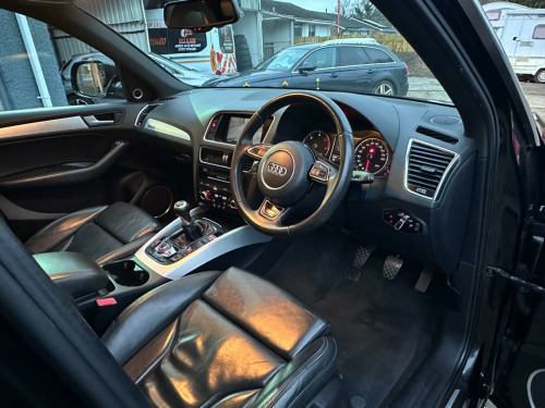 This 2012 Audi Q5 TDI S line Plus presents an exceptional opportunity with its remarkably low mileage of just 84,500 miles for a vehicle of its age. Finished in a striking Black Styling Package, this four wheel drive model boasts a 2.0 litre diesel engine, offering a blend of performance and efficiency. Inside, you'll find the luxurious S line Plus trim, complemented by an electric panoramic sunroof, allowing for an open and airy cabin experience. For your convenience and comfort, it features adaptive cruise control, ensuring a relaxed drive, and a premium Bang and Olufsen sound system to enhance your journeys.The Q5 TDI S line Plus stands out with its generous boot space, providing ample room for all your luggage and shopping needs. Furthermore, its low CO2 emissions highlight its considerate environmental impact, making it a more responsible choice. These factors, combined with its impressive specification and low mileage, demonstrate why this Audi Q5 is a superior option compared to other similar vehicles on the market. v power socket, 20in alloy wheels - 5-segment-spoke design, 6.5in display screen, abs - anti-lock braking system, ami - audi music interface, aux-in socket, acoustic windscreen, airbags - driver, airbags - front passenger, airbags - front side, airbags - head system, alarm - thatcham category 1, aluminium roof rails, amplifier - 6 channel, audi parking system plus, audi sound system, audio sound system, auto-dimming rear-view mirror, body coloured bumpers, break recommendation system, bumpers - s line front, car jack, climate control - electronic 3-zone, cloth headlining in black, collapsible spare wheel, colour drivers information system - dis, concert radio, cruise control, diffuser - platinum grey, door mirrors - electrically adjustable and heated, door sill trims - s line, esp - electronic stability programme, electric windows - front and rear, electrically adjustable 4-way lumbar support, electromechanical parking brake, electromechanical power steering, exhaust tailpipe - chrome trimmed loaf shape - single, first aid kit, front centre armrest, front fog lights, front passenger airbag deactivation switch, front and rear floor mats, halogen headlights, headlight washers, headlights - automatic adjustment, headlights - bi-xenon plus, headlining - black, hill descent control, isofix child seat preparation front and rear, inlays - matt brushed aluminium, led daytime running lights, led tail lights, leather package - door armrests, light and rain sensor package, mmi navigation - dvd-based, mobile telephone preparation - bluetooth interface, power operated tailgate, privacy glass, radiator grille - s line with chrome vertical bars, rear parking sensors, remote central locking, rest recommendation system, roof bars and storage bag, s line badges on wings, s line side skirts, s line sill plates and aluminium loading strip for the boot, sdhc card reader, seats - split folding rear - 60-40, spoiler, steering wheel - 3-spoke leather - multi-function - sports, steering wheel - multi-function, styling package - s line exterior, tp memo - automatically saves traffic news, tailgate - lid closing assistance unit, tailgate - programmable angle for the luggage compartment lid, technology package - low, tool kit, warning triangle, window surrounds - aluminium, adaptive cruise control, bang and olufsen sound system, sound package, black styling package, electric panoramic sunroof - open sky slide and tilt, panoramic sunroof - open sky, audi exclusive carpets, gear knob - aluminium, steering wheel - audi exclusive leather covered, rear side airbags