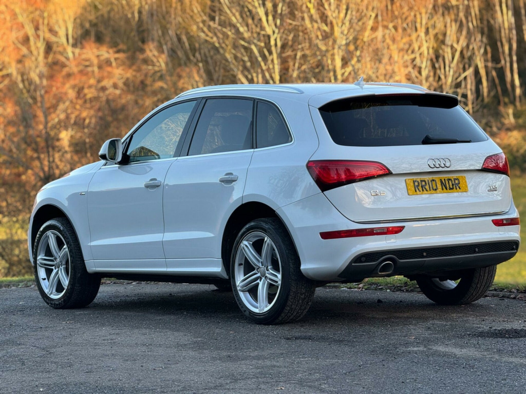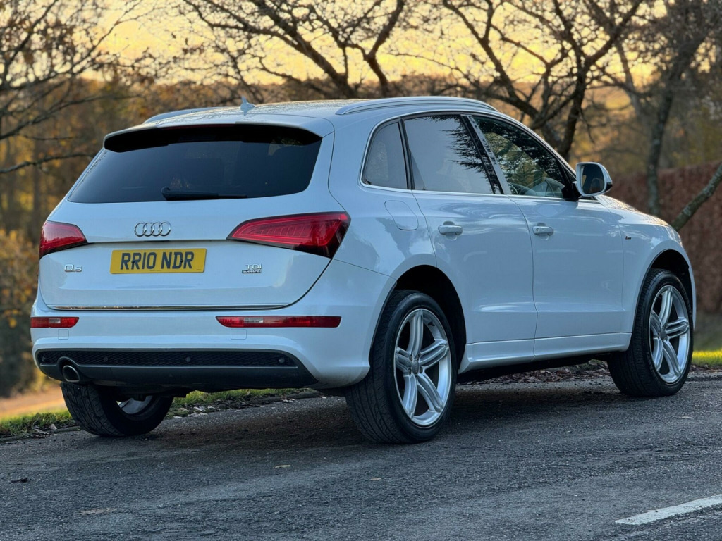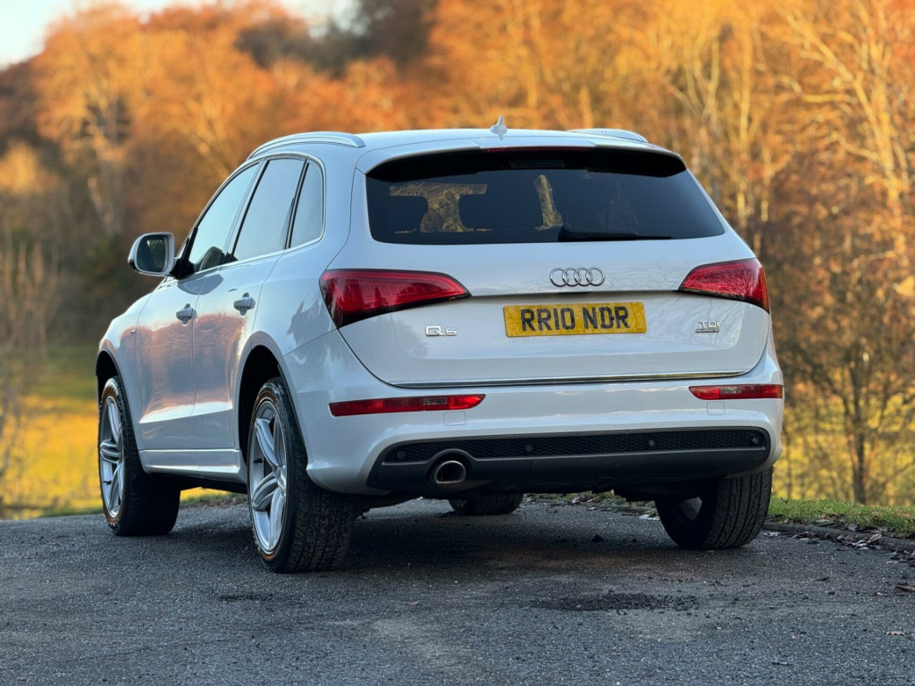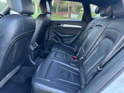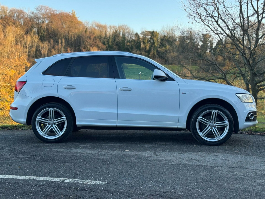 Stunning Audi in mint condition, private plate , 2016 model , Ulez , drives fantastic This 2016 Audi Q5 TDI S line Plus offers a superb blend of performance and practicality. Powered by a 2.0 litre diesel engine and featuring four wheel drive, this Euro 6 compliant model ensures efficient and capable driving. The S line Plus trim level brings a sporty aesthetic and enhanced features, including rear parking sensors with parking assistance, automatic xenon headlights with a light sensor, and a Bluetooth interface for seamless mobile phone connectivity. Inside, you will appreciate the deluxe 3 zone climate control, ensuring comfort for all occupants, and the generous boot space, perfect for luggage or shopping.The Audi Q5 TDI S line Plus demonstrates its superior capabilities with an impressive 0-60mph acceleration time of just 8.1 seconds, highlighting its responsive performance compared to other vehicles in its class. This combination of dynamic acceleration, advanced technology, and ample storage makes this Q5 a compelling choice for those seeking a versatile and well equipped SUV. bile telephone preparation - low with bluetooth and voice control, headlights - high-beam assist, audi exclusive carpets, s line sports suspension, 12v power socket, 20gb jukebox for storing and managing music files - wma and mp3 format, 20in alloy wheels - 5-segment-spoke design, abs - anti-lock braking system, ami - audi music interface, acoustic windscreen, air conditioning - deluxe automatic at the rear, airbags - driver, airbags - front passenger, airbags - front side, alarm - thatcham category 1, aluminium roof rails, amplifier - 180 watt, amplifier - 6 channel, anti theft locking wheel bolts, audi parking system plus, audi sound system, auto-dimming rear-view mirror, automatic headlight range adjustment, automatic wipers with rain sensor, body coloured bumpers, bumpers - s line front, car jack, chrome tailgate strip, cloth headlining in black, colour drivers information system - dis, concert radio - mp3-cd player, cruise control, cup holders - centre console, dab digital radio, deluxe 3-zone climate control, diffuser - platinum grey, display screen colour - 7in tft high resolution and split screen mode for route information, door handles - chrome, door mirrors - electrically adjustable and heated, door or boot open warning, dynamic route guidance - tmc, ebd - electronic brakeforce distribution, esp - electronic stability programme, electric windows - front and rear, electrically adjustable 4-way lumbar support, electromechanical parking brake, electromechanical power steering, european navigation data, exhaust tailpipe - chrome trimmed - flat-bottom design on left side, first aid kit, front centre armrest, front fog lights, front passenger airbag deactivation switch, front and rear floor mats, hard drive - 40gb, headlight washers, headlights - coming-leaving home function, headlights - light sensor, headlights - xenon, hill descent control, isofix child seat mounting for front passenger, isofix child seat preparation for rear seats with top tether, inlays - matt brushed aluminium, led daytime running lights, led rear lights, leather package - door armrests, mmi navigation plus, misfuelling inhibition, mobile telephone preparation - bluetooth interface, outside temperature display, pollen filter, power operated tailgate, privacy glass, radiator grille - s line with chrome vertical bars, rear parking sensors, rear spoiler - body coloured, remote boot release, remote central locking, rest recommendation system, roof bars and storage bag, s line badges on front wings, s line side skirts, s line rear diffuser, s line sill plates and aluminium loading strip for the boot, sd card reader x2, seats - front height adjustment, seats - front with s line embossing, seats - split folding rear - 60-40, seats - sports, single cd-dvd player, speakers x10, steering column - rake and reach adjustment, steering wheel - multi-function, steering wheel - s line 3-spoke leather, styling package - s line exterior, tp memo - automatically saves traffic news, tailgate - lid closing assistance unit, tailgate - programmable angle for the luggage compartment lid, technology package, tool kit and car jack, towing equipment - preparation, traction control, tyre pressure loss indicator, tyre repair kit, warning triangle, window surrounds - aluminium