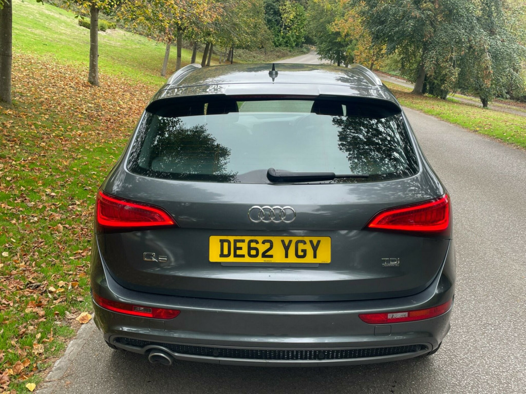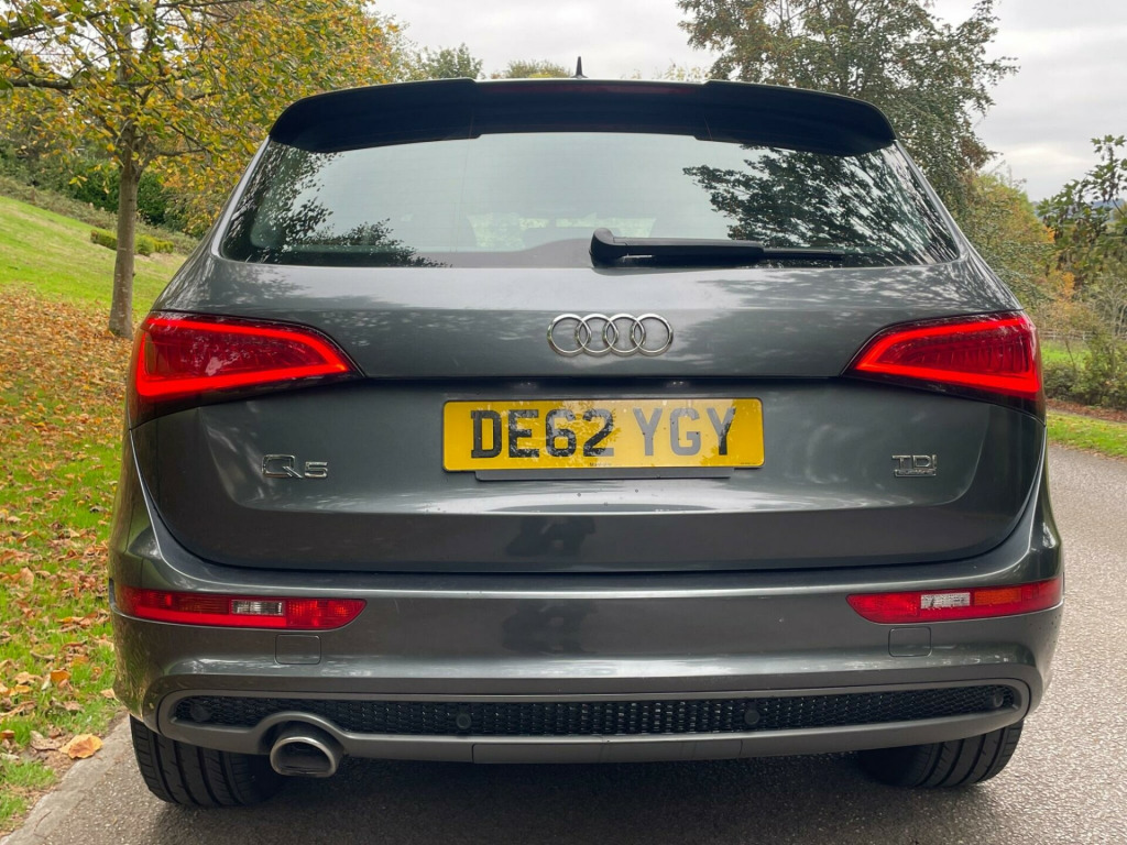 This Audi Q5 TDI S line Plus from 2012 boasts an impressive provenance, having been owned by only two previous keepers. This sought after four wheel drive model features a capable 2.0 litre diesel engine, offering a blend of performance and efficiency. Inside, you'll find a host of desirable features designed for comfort and convenience, including electronic three zone climate control to keep everyone comfortable, and mobile telephone preparation with a Bluetooth interface for seamless connectivity. The S line Plus trim ensures a sporty aesthetic and enhanced specification.The Q5 also comes equipped with Bi-Xenon Plus headlights for superior visibility and the Audi Parking System Plus, which includes front and rear sensors, making parking in any situation considerably easier. You'll appreciate the generous boot space, perfect for luggage or shopping. With an acceleration of 0-62mph in just 9.0 seconds, this Q5 offers a responsive driving experience that sets it apart from many other vehicles in its class.Excellent example drives superb v power socket, 20in alloy wheels - 5-segment-spoke design, 6.5in display screen, abs - anti-lock braking system, ami - audi music interface, aux-in socket, acoustic windscreen, airbags - driver, airbags - front passenger, airbags - front side, airbags - head system, alarm - thatcham category 1, aluminium roof rails, amplifier - 6 channel, audi parking system plus, audi sound system, audio sound system, auto-dimming rear-view mirror, body coloured bumpers, break recommendation system, bumpers - s line front, car jack, climate control - electronic 3-zone, cloth headlining in black, collapsible spare wheel, colour drivers information system - dis, concert radio, cruise control, diffuser - platinum grey, door mirrors - electrically adjustable and heated, door sill trims - s line, esp - electronic stability programme, electric windows - front and rear, electrically adjustable 4-way lumbar support, electromechanical parking brake, electromechanical power steering, exhaust tailpipe - chrome trimmed loaf shape - single, first aid kit, front centre armrest, front fog lights, front passenger airbag deactivation switch, front and rear floor mats, halogen headlights, headlight washers, headlights - automatic adjustment, headlights - bi-xenon plus, headlining - black, hill descent control, isofix child seat preparation front and rear, inlays - matt brushed aluminium, led daytime running lights, led tail lights, leather package - door armrests, light and rain sensor package, mmi navigation - dvd-based, mobile telephone preparation - bluetooth interface, power operated tailgate, privacy glass, radiator grille - s line with chrome vertical bars, rear parking sensors, remote central locking, rest recommendation system, roof bars and storage bag, s line badges on wings, s line side skirts, s line sill plates and aluminium loading strip for the boot, sdhc card reader, seats - split folding rear - 60-40, spoiler, steering wheel - 3-spoke leather-multi-function-shift paddles, steering wheel - multi-function, styling package - s line exterior, tp memo - automatically saves traffic news, tailgate - lid closing assistance unit, tailgate - programmable angle for the luggage compartment lid, technology package - low, tool kit, warning triangle, window surrounds - aluminium
