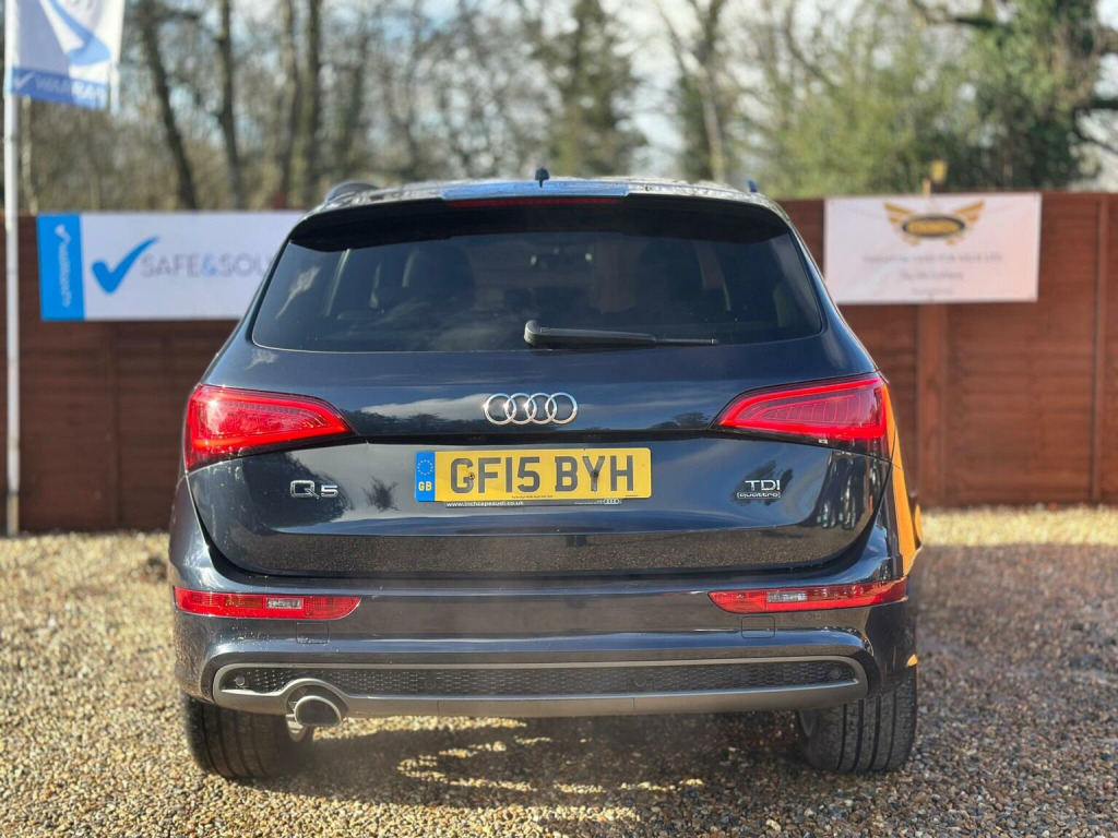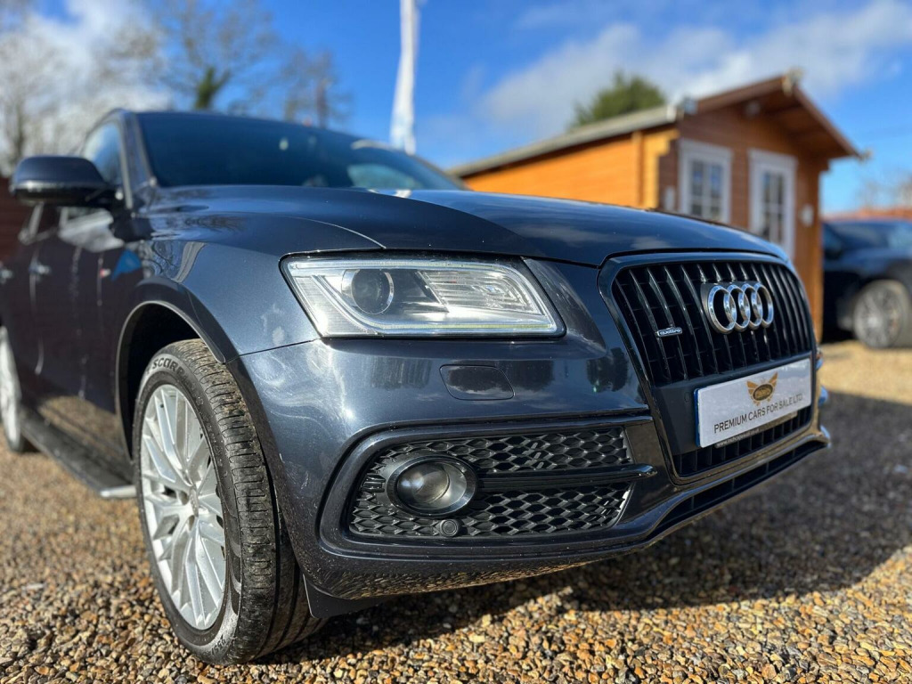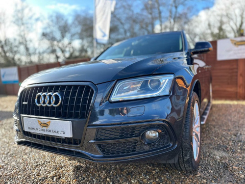 Welcome To Premium Cars For Sale LTD!, We are pleased to offer this beautiful example:Audi Q5 2.0 TDI S line Plus S Tronic Quattro. This 2015 Q5 has been well looked after during the years.With only three previous keepers and service history, this Audi Q5 2.0L S line Plus is a superb example.The S line Plus trim adds a touch of sporty sophistication to this SUV. The vehicles history is further assured with a clear vehicle HPI history check and a recent service carried out at 92k miles.HPI Clear,Mileage 93k Miles backed up with Service History,6 Months Warranty included.Very well looked after car in excellent condition.Looks and drives amazing considering the age and Mileage its very clean.PDI checked and its in excellent condition. Ready to go to the new owner and ready to drive away.Beautiful Colour Combination Black with Full black Leather.Comes with Great spec such as:Multifunction steering wheel, Cruise Control with speed limiter, Traction control,Door Mirrors Electrically Adjusable and Heated,Voice control,Isofix,Air Con,Steering wheel controls with Telephone connectivity Bluetooth connection Hands free Audio player Paddle shift,CD,DAB Radio, Satellite Navigation,System,Automatic wipers,Rain sensors,Audi Music Interface,2 SD Card Package and Sim Card,Parking Sensors Front and Rear,Electric heated and memory seats,Bang&Olufsen sound system,Park Distance Control, Audi Multimedia,Automatic Light,Side steps,Audi Parking System Plus Acoustic and Visual Park Assist System for the Front and Rear,Display Screen Colour 7in.S Line Inlays,Embossed S Line Logo in Front Seat Backrests,Electric Sliding Panoramic Roof with Blinder,Heated Front seats,Headlight Washers,Headlights Xenon with LED day running Lights.Finance can be Arranged.Part exchange welcome.Any Inspections are Welcome.VIEWINGS ARE BY APPOINTMENT ONLY. We do this to ensure we can provide you the time and commitment needed when you visit. If you would like to find out more about our cars please follow us on, Instagram/premiumcarsforsaleltd, Ring Now//////////////////////////