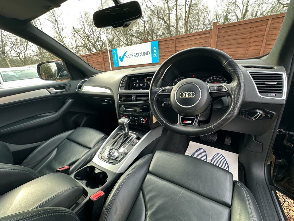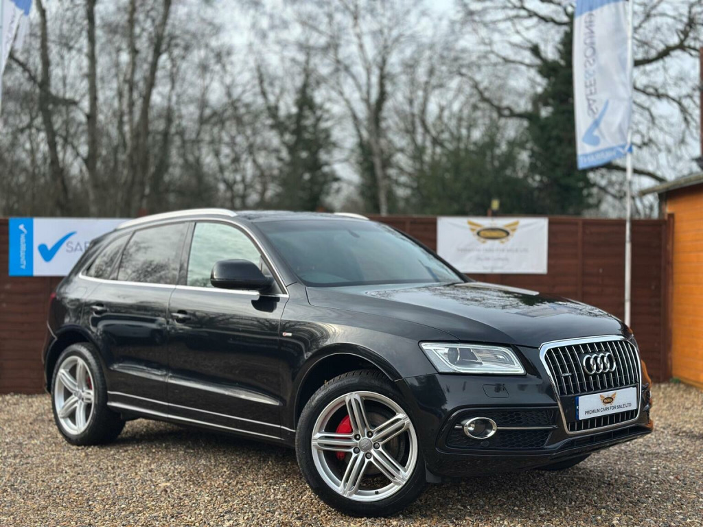 Welcome To Premium Cars For Sale LTD!, We are pleased to offer this beautiful example:Audi Q5 2.0 TDI S line Plus SUV S Tronic Quattro. This 2015 Q5 has been well looked after during the years.With only three previous keepers and service history, this Audi Q5 2.0L S line Plus is a superb example.The S line Plus trim adds a touch of sporty sophistication to this SUV. The vehicles history is further assured with a clear vehicle HPI history check and a recent service carried out at 116k miles.HPI Clear,Mileage 116k Miles backed up with Service History,6 Months Warranty included.Very well looked after car in excellent condition.Looks and drives amazing considering the age and Mileage its very clean.PDI checked and its in excellent condition. Ready to go to the new owner and ready to drive away.Beautiful Colour Combination Black with Full black Leather.Comes with Great spec such as:Multifunction steering wheel, Cruise Control with speed limiter, Traction control,Door Mirrors Electrically Adjusable and Heated,Voice control,Isofix,Air Con,Steering wheel controls with Telephone connectivity Bluetooth connection Hands free Audio player Paddle shift,CD,DAB Radio, Satellite Navigation,System,Automatic wipers,Rain sensors,Audi Music Interface,2 SD Card Package and Sim Card,Parking Sensors Front and Rear,Park Distance Control, Audi Multimedia,Automatic Light, Audi Parking System Plus Acoustic and Visual Park Assist System for the Front and Rear,Display Screen Colour 7in.S Line Inlays,Embossed S Line Logo in Front Seat Backrests,Heated Front seats,Headlight Washers,Headlights Xenon with LED day running Lights.Finance can be Arranged.Part exchange welcome.Any Inspections are Welcome.VIEWINGS ARE BY APPOINTMENT ONLY. We do this to ensure we can provide you the time and commitment needed when you visit. If you would like to find out more about our cars please follow us on, Instagram/premiumcarsforsaleltd, Ring Now////////////////////////////