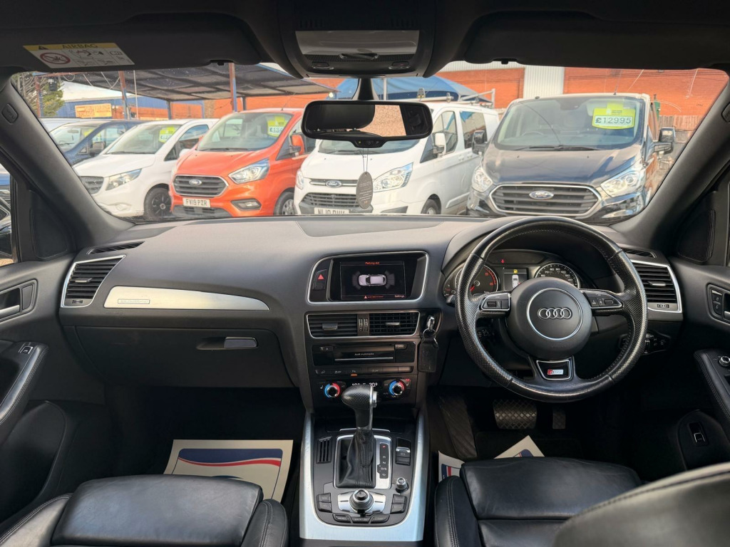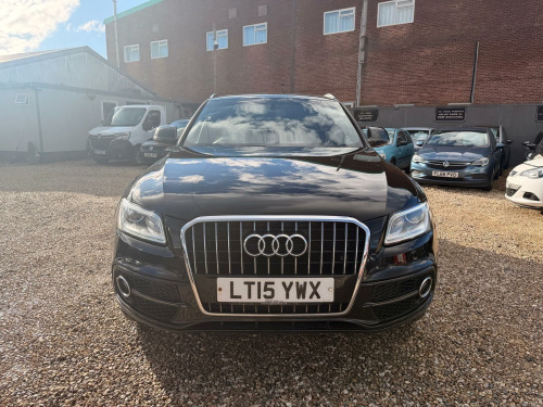 Boasting a full service history and having had only two owners, this 2015 Audi Q5 TDI S line Plus represents excellent provenance. This four wheel drive model is equipped with a 2.0 litre diesel engine and features striking 20 inch alloy wheels with a titanium optic finish. For your convenience, it includes mobile telephone preparation with Bluetooth and voice control, alongside the advanced Technology Package. The door mirrors are both heated and electrically adjustable, folding for ease of use, and the front seats are also heated for added comfort.This Audi Q5 offers a generous boot space, making it a practical choice for families or those needing ample storage. The inclusion of a 12 month MOT on purchase and a 3 month warranty provides further peace of mind. The comprehensive service history, with the last service at 121459 miles, indicates that this vehicle has been well maintained, setting it apart from other similar models on the market.. 12V Power Socket, 20GB Jukebox for Storing and Managing Music Files - WMA and MP3 Format, ABS - Anti-Lock Braking System, AMI - Audi Music Interface, AUX-IN Socket, Acoustic Windscreen, Air Conditioning - Deluxe Automatic at the Rear, Airbags - Driver, Airbags - Front Passenger, Airbags - Front Side, Airbags - Head System, Alarm - Thatcham Category 1, Aluminium Roof Rails, Amplifier - 6 Channel, Anti Theft Locking Wheel Bolts, Audi Parking System Plus, Audi Sound System, Audio Sound System, Auto-Dimming Rear-View Mirror, Automatic Headlight Range Adjustment, Automatic Wipers with Rain Sensor, Body Coloured Bumpers, Bumpers - S line Front, Car Jack, Cloth Headlining in Black, Collapsible Spare Wheel, Colour Drivers Information System - DIS, Concert Radio, Cruise Control, Cup Holders - Centre Console, DAB Digital Radio, Deluxe 3-Zone Climate Control, Diffuser - Platinum Grey, Display Screen Colour 7in High Resolution, Door Mirrors - Electrically Adjustable and Heated, EBD - Electronic Brakeforce Distribution, ESP - Electronic Stability Programme, Electric Windows - Front and Rear, Electrically Adjustable 4-Way Lumbar Support, Electromechanical Parking Brake, Electromechanical Power Steering, European Navigation Data, First Aid Kit, Front Centre Armrest, Front Fog Lights, Front Passenger Airbag Deactivation Switch, Front and Rear Floor Mats, Hard Disk Navigation with Topographical Map Display, Headlight Washers, Headlights - Bi-Xenon Plus, Headlights - Coming-Leaving Home Function, Headlights - Light Sensor, Hill Descent Control, ISOFIX Child Seat Preparation Front and Rear, Inlays - Matt Brushed Aluminium, LED Daytime Running Lights, LED Rear Lights, Leather Package - Door Armrests, Misfuelling Inhibition, Mobile Telephone Preparation - Bluetooth Interface, Pollen Filter, Power Operated Tailgate, Privacy Glass, Radiator Grille - S Line with Chrome Vertical Bars, Rear Parking Sensors, Remote Boot Release, Remote Central Locking, Rest Recommendation System, Roof Bars and Storage Bag, S Line Side Skirts, S line Sill Plates and Aluminium Loading Strip for the Boot, SD Card Reader x2, SDHC Card Reader, Seats - Front Height Adjustment, Seats - Split Folding Rear - 60-40, Spoiler, Steering Column - Rake and Reach Adjustment, Steering Wheel - 3-Spoke Leather - Multi-function - Sports - Shift Paddles, Steering Wheel - Gear Shift Paddles, Steering Wheel - Multi-function, Styling Package - S line Exterior, TP Memo - Automatically Saves Traffic News, Tailgate - Lid Closing Assistance Unit, Tailgate - Programmable Angle for the Luggage Compartment Lid, Technology Package, Tool Kit, Traction Control, Warning Triangle, Mobile Telephone Preparation - Low with Bluetooth and Voice Control, Technology Package - Advanced, 20in Alloy Wheels - 5-Segment Design Titanium Optic Finish, Door Mirrors - Heated-Electrically Adjustable-Folding, Fine Nappa Leather - S Line Sports Seats - Black, Heated Front Seats, S Line Suspension. Full service history