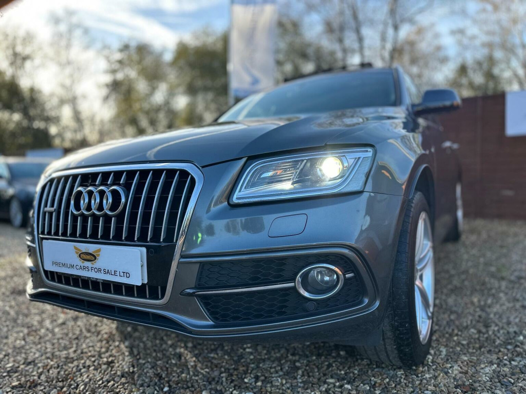 Welcome To Premium Cars For Sale LTD!, We are pleased to offer this beautiful example:Audi Q5 2.0 TDI S line Plus SUV 5dr Diesel S Tronic Quattro Euro 6. This 2015 Q5 has been well looked after during the years.With only two previous keepers and service history, this Audi Q5 2.0L S line Plus is a superb example.The S line Plus trim adds a touch of sporty sophistication to this SUV. The vehicles history is further assured with a clear vehicle HPI history check and a recent service carried out at 114k miles.HPI Clear,Mileage 116k Miles backed up with some Service History,6 Months Warranty included.Very well looked after car in excellent condition.Looks and drives amazing considering the age and Mileage its very clean.PDI checked and its in excellent condition. Ready to go to the new owner and ready to drive away.Beautiful Colour Combination Daytona Gray with Full black Leather.Comes with Great spec such as:Multifunction steering wheel, Cruise Control with speed limiter, Traction control,Door Mirrors Electrically Adjusable and Heated,Voice control,Isofix,Air Con,Steering wheel controls with Telephone connectivity Bluetooth connection Hands free Audio player Paddle shift,CD,DAB Radio, Satellite Navigation,System,Automatic wipers,Rain sensors,Audi Music Interface,2 SD Card Package and Sim Card,Parking Sensors Front and Rear,Park Distance Control, Audi Multimedia,Automatic Light, Audi Parking System Plus Acoustic and Visual Park Assist System for the Front and Rear,Display Screen Colour 7in.S Line Inlays,Embossed S Line Logo in Front Seat Backrests,Heated Front and Rear seats and Electric seats,Headlight Washers,Headlights Xenon with LED day running Lights.Finance can be Arranged.Part exchange welcome.Any Inspections are Welcome.VIEWINGS ARE BY APPOINTMENT ONLY. We do this to ensure we can provide you the time and commitment needed when you visit. If you would like to find out more about our cars please follow us on, Instagram/premiumcarsforsaleltd, Ring Now