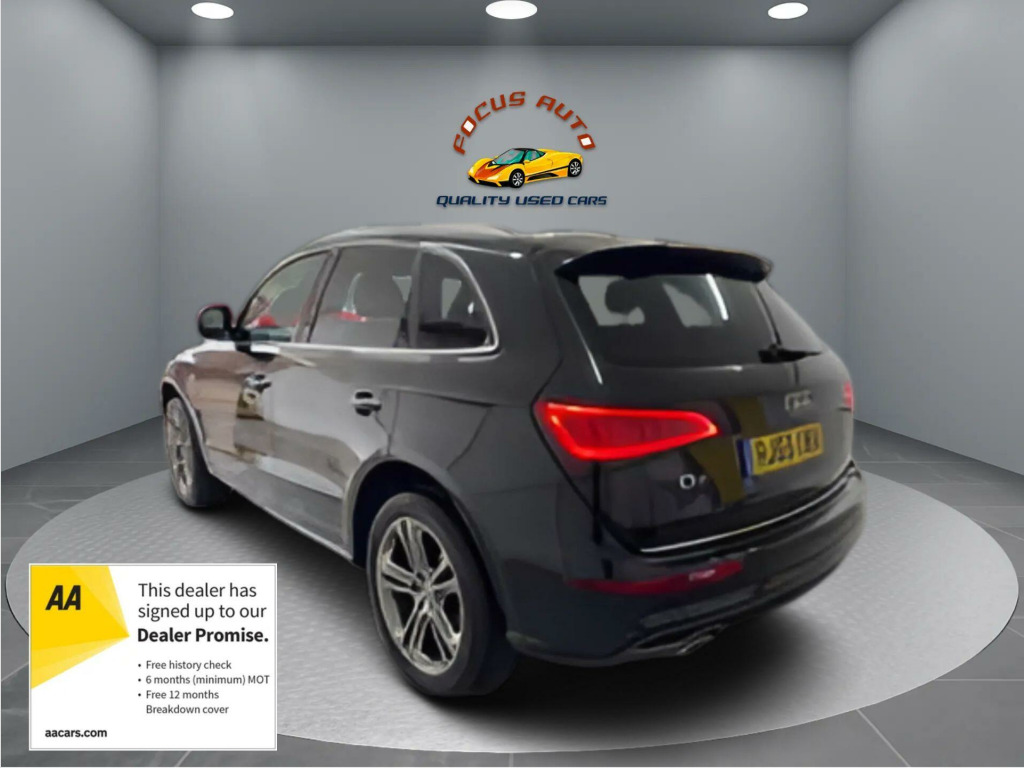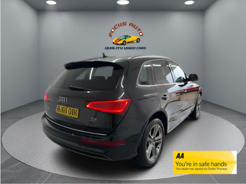 With only 62,745 miles on the clock, this 2015 Audi Q5 TDI S line Plus represents exceptional value for its age. This four wheel drive model boasts a powerful yet efficient 2.0 litre diesel engine, meeting Euro 6 emissions standards. Its provenance is further strengthened by a clear vehicle history check and a recent service at 62,700 miles, with the MOT valid until February 2027. This Audi Q5 has had only two owners, and comes with a three month warranty for your peace of mind.Inside, you'll find a host of desirable features designed for comfort and convenience. The Deluxe 3-Zone Climate Control ensures everyone stays comfortable, while the Bluetooth interface allows for easy mobile phone connectivity. Parking is made simpler with rear parking sensors, and the Xenon headlights with automatic light sensors provide excellent visibility. The Q5 also offers generous boot space, perfect for all your needs. Its acceleration from 0-60mph in just 8.1 seconds indicates a more responsive driving experience compared to many other vehicles in its class.This car comes with three months mechanical warranty ( Extended warranty option for 12, 24 and 36 months are available) , free 12 months AA roadside Assistance, Ulez free,All vehicles are inspected by trained technicians and are history checked. Test drives and part-exchange are available, and you can choose, buy and drive away the same day. Three months mechanical parts and labour warranty included. Third party extended Warranty (up to 36 months) options are available. Free 12 months AA roadside breakdown Assistance. 5 days drive away Insurance available from £44.99 (term & conditions apply) Our cars are HPI cleared. Competitive finance options are available. NO Admin Fee- NO ADMIN fee on finance application made with us. £300 admin fee apply on finance application made from third party. All Major cards are accepted. Look our website www.focusauto.co.uk for further information. v power socket, 20gb jukebox for storing and managing music files - wma and mp3 format, 20in alloy wheels - 5-segment-spoke design, abs - anti-lock braking system, ami - audi music interface, acoustic windscreen, air conditioning - deluxe automatic at the rear, airbags - driver, airbags - front passenger, airbags - front side, alarm - thatcham category 1, aluminium roof rails, amplifier - 180 watt, amplifier - 6 channel, anti theft locking wheel bolts, audi parking system plus, audi sound system, auto-dimming rear-view mirror, automatic headlight range adjustment, automatic wipers with rain sensor, body coloured bumpers, bumpers - s line front, car jack, chrome tailgate strip, cloth headlining in black, colour drivers information system - dis, concert radio - mp3-cd player, cruise control, cup holders - centre console, dab digital radio, deluxe 3-zone climate control, diffuser - platinum grey, display screen colour - 7in tft high resolution and split screen mode for route information, door handles - chrome, door mirrors - electrically adjustable and heated, door or boot open warning, dynamic route guidance - tmc, ebd - electronic brakeforce distribution, esp - electronic stability programme, electric windows - front and rear, electrically adjustable 4-way lumbar support, electromechanical parking brake, electromechanical power steering, european navigation data, exhaust tailpipe - chrome trimmed - flat-bottom design on left side, first aid kit, front centre armrest, front fog lights, front passenger airbag deactivation switch, front and rear floor mats, hard drive - 40gb, headlight washers, headlights - coming-leaving home function, headlights - light sensor, headlights - xenon, hill descent control, isofix child seat mounting for front passenger, isofix child seat preparation for rear seats with top tether, inlays - matt brushed aluminium, led daytime running lights, led rear lights, leather package - door armrests, mmi navigation plus, misfuelling inhibition, mobile telephone preparation - bluetooth interface, outside temperature display, pollen filter, power operated tailgate, privacy glass, radiator grille - s line with chrome vertical bars, rear parking sensors, rear spoiler - body coloured, remote boot release, remote central locking, rest recommendation system, roof bars and storage bag, s line badges on front wings, s line side skirts, s line rear diffuser, s line sill plates and aluminium loading strip for the boot, sd card reader x2, seats - front height adjustment, seats - front with s line embossing, seats - split folding rear - 60-40, seats - sports, single cd-dvd player, speakers x10, steering column - rake and reach adjustment, steering wheel - gear shift paddles, steering wheel - multi-function, steering wheel - s line 3-spoke leather, styling package - s line exterior, tp memo - automatically saves traffic news, tailgate - lid closing assistance unit, tailgate - programmable angle for the luggage compartment lid, technology package, tool kit and car jack, towing equipment - preparation, traction control, tyre pressure loss indicator, tyre repair kit, warning triangle, window surrounds - aluminium
