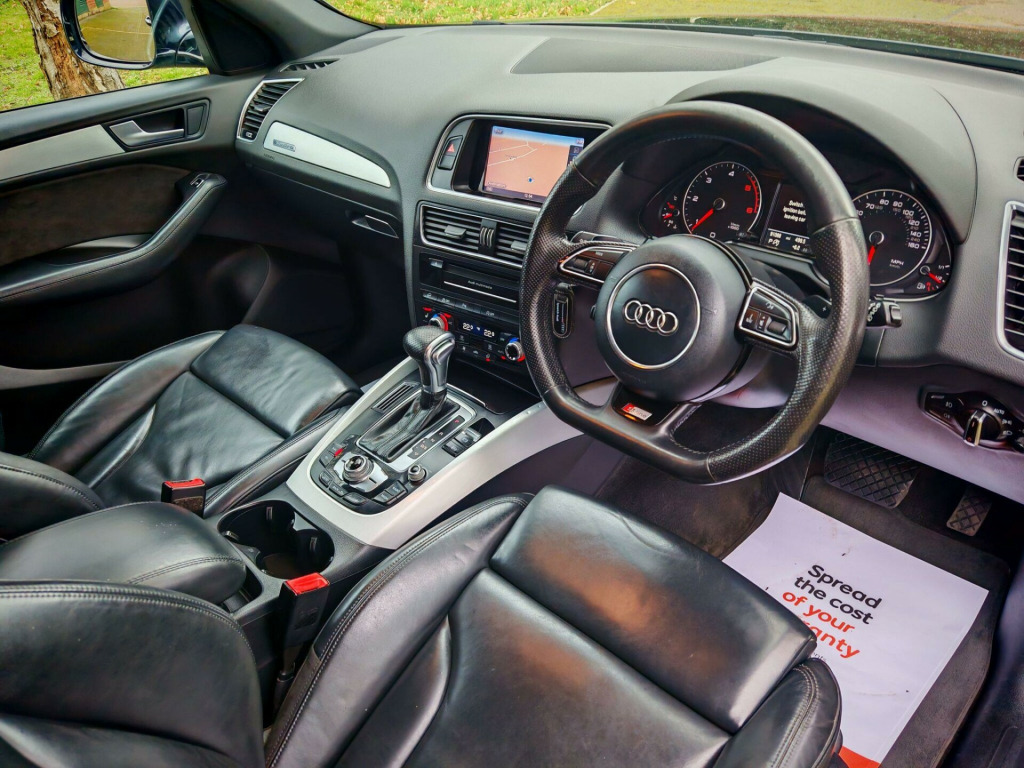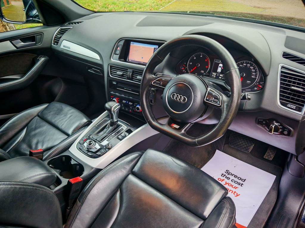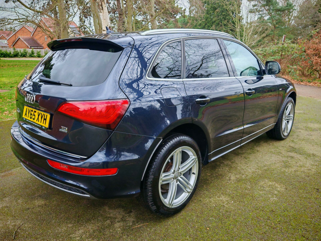 Audi Q5 2.0 TDI S line Plus S Tronic quattro – ULEZ Compliant – Stunning Midnight BlueWe are delighted to offer this stunning Audi Q5 2.0 TDI S line Plus S Tronic quattro, presented in superb condition throughout.Finished in the rare and eye-catching Audi Midnight Blue, this Q5 really stands out from the usual greys and blacks on the market.✔ ULEZ compliant – ideal for city driving✔ Documented service history✔ Just serviced✔ New MOT✔ Two new tyres fitted✔ 2 keysGreat Specification Includes:Leather packageSports Plus PackSatellite NavigationAudi MMI with Bluetooth audio & handsfreeAuto headlights with dynamic functionFront & rear parking sensorsCruise controlHeated seatsAuto wipersPower-fold mirrorsThis vehicle has undergone a full professional valet and exterior polish and is presented in excellent condition throughout.All vehicles come with:RAC 3-month warranty as standard. Extended RAC warranty options available at excellent prices.12 months RAC breakdown coverLow-rate finance arranged.We are a family-owned business with a genuine passion for cars and customer service. We go the extra mile to present only the best vehicles and make the buying experience simple and stress-free.Viewing by appointment please.. 12V Power Socket, 20GB Jukebox for Storing and Managing Music Files - WMA and MP3 Format, 20in Alloy Wheels - 5-Segment-Spoke Design, ABS - Anti-Lock Braking System, AMI - Audi Music Interface, Acoustic Windscreen, Air Conditioning - Deluxe Automatic at the Rear, Airbags - Driver, Airbags - Front Passenger, Airbags - Front Side, Alarm - Thatcham Category 1, Aluminium Roof Rails, Amplifier - 180 Watt, Amplifier - 6 Channel, Anti Theft Locking Wheel Bolts, Audi Parking System Plus, Audi Sound System, Auto-Dimming Rear-View Mirror, Automatic Headlight Range Adjustment, Automatic Wipers with Rain Sensor, Body Coloured Bumpers, Bumpers - S line Front, Car Jack, Chrome Tailgate Strip, Cloth Headlining in Black, Colour Drivers Information System - DIS, Concert Radio - MP3-CD Player, Cruise Control, Cup Holders - Centre Console, DAB Digital Radio, Deluxe 3-Zone Climate Control, Diffuser - Platinum Grey, Display Screen Colour - 7in TFT High Resolution and Split Screen Mode for Route Information, Door Handles - Chrome, Door Mirrors - Electrically Adjustable and Heated, Door or Boot Open Warning, Dynamic Route Guidance - TMC, EBD - Electronic Brakeforce Distribution, ESP - Electronic Stability Programme, Electric Windows - Front and Rear, Electrically Adjustable 4-Way Lumbar Support, Electromechanical Parking Brake, Electromechanical Power Steering, European Navigation Data, Exhaust Tailpipe - Chrome Trimmed - Flat-Bottom Design on Left Side, First Aid Kit, Front Centre Armrest, Front Fog Lights, Front Passenger Airbag Deactivation Switch, Front and Rear Floor Mats, Hard Drive - 40GB, Headlight Washers, Headlights - Coming-Leaving Home Function, Headlights - Light Sensor, Headlights - Xenon, Hill Descent Control, ISOFIX Child Seat Mounting for Front Passenger, ISOFIX Child Seat Preparation for Rear Seats with Top Tether, Inlays - Matt Brushed Aluminium, LED Daytime Running Lights, LED Rear Lights, Leather Package - Door Armrests, MMI Navigation Plus, Misfuelling Inhibition, Mobile Telephone Preparation - Bluetooth Interface, Outside Temperature Display, Pollen Filter, Power Operated Tailgate, Privacy Glass, Radiator Grille - S Line with Chrome Vertical Bars, Rear Parking Sensors, Rear Spoiler - Body Coloured, Remote Boot Release, Remote Central Locking, Rest Recommendation System, Roof Bars and Storage Bag, S Line Badges on Front Wings, S Line Side Skirts, S line Rear Diffuser, S line Sill Plates and Aluminium Loading Strip for the Boot, SD Card Reader x2, Seats - Front Height Adjustment, Seats - Front with S line Embossing, Seats - Split Folding Rear - 60-40, Seats - Sports, Single CD-DVD Player, Speakers x10, Steering Column - Rake and Reach Adjustment, Steering Wheel - Gear Shift Paddles, Steering Wheel - Multi-function, Steering Wheel - S Line 3-Spoke Leather, Styling Package - S line Exterior, TP Memo - Automatically Saves Traffic News, Tailgate - Lid Closing Assistance Unit, Tailgate - Programmable Angle for the Luggage Compartment Lid, Technology Package, Tool Kit and Car Jack, Towing Equipment - Preparation, Traction Control, Tyre Pressure Loss Indicator, Tyre Repair Kit, Warning Triangle, Window Surrounds - Aluminium, Mobile Telephone Preparation - Low with Bluetooth and Voice Control, 20in Alloy Wheels - 5-Segment Design Titanium Optic Finish, Door Mirrors - Heated-Electrically Adjustable-Folding, Heated Front Seats, Steering Wheel - 3-Spoke Leather-Multifunction-Flat Bottomed-Shift Paddles, Underfloor Storage Tray in Boot, Technology Package - Advanced, Climate Cup Holder, Leather Package Plus - Door Armrests and Instrument Cowling.