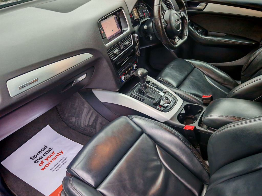 Audi Q5 2.0 TDI S line Plus S Tronic quattro – ULEZ Compliant – Stunning Midnight Blue, We are delighted to offer this stunning Audi Q5 2.0 TDI S line Plus S Tronic quattro, presented in superb condition throughout. Finished in the rare and eye-catching Audi Midnight Blue, this Q5 really stands out from the usual greys and blacks on the market. ✔ ULEZ compliant – ideal for city driving, ✔ Documented service history, ✔ Just serviced, ✔ New MOT, ✔ Two new tyres fitted, ✔ 2 keys, Great Specification Includes:, Leather package, Sports Plus Pack, Satellite Navigation, Audi MMI with Bluetooth audio & handsfree, Auto headlights with dynamic function, Front & rear parking sensors, Cruise control, Heated seats, Auto wipers, Power-fold mirrors, This vehicle has undergone a full professional valet and exterior polish and is presented in excellent condition throughout. All vehicles come with:, RAC 3-month warranty as standard. Extended RAC warranty options available at excellent prices. 12 months RAC breakdown cover, Low-rate finance arranged. We are a family-owned business with a genuine passion for cars and customer service. We go the extra mile to present only the best vehicles and make the buying experience simple and stress-free. Viewing by appointment please.