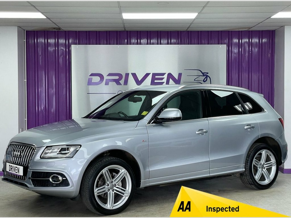 Driven Of York We Are Proud To Present This 2 Owner ! 2016 66 Audi Q5 Quattro 2.0 TDI Finished In Florret Silver with Black Leather Interior. Specification includes 20" Alloy Wheels. Xenon Headlights. Satellite Navigation. Bluetooth. DAB Radio. Voice Command. Leather Multifunction Steering Wheel. 6 Speed Manual Gearbox. Cruise Control. Dual Climate Control. Heated Seats With Electric Lumbar support. Brushed Aluminum Interior Trims. Audi S-Line Treadplates, Front & Rear Parking Sensors. Automatic Lights & Wipers. Electric Heated Mirrors. Power Tailgate, Hill Decent Control. Privacy Glass. Stop/Start. Isofix , Great Service History!! Reserve Now £149 Mobile Telephone Preparation - Low with , Fine Nappa Leather - S Line Sports Seats, S Line Sports Suspension, Adaptive Lights, Inlays - Aluminium - Beaufort, Door Mirrors - Heated-Electrically Adjus, 20in Alloy Wheels - 5-Segment Design Tit, Floret Silver, 20in Alloy Wheels - 5-Segment-Spoke Desi, ABS - Anti-Lock Braking System, AMI - Audi Music Interface, Airbags - Driver, Airbags - Front Passenger, Airbags - Front Side, Alarm - Thatcham Category 1, Aluminium Roof Rails, Aluminium Window Trims, Audi Concert Radio, Audi Parking System Plus, Audi Sound System, Auto-Dimming Rear-View Mirror, Bluetooth Interface, Body Coloured Bumpers, Chrome Door Handles and Tailgate Strip, Chrome-trimmed - Fl