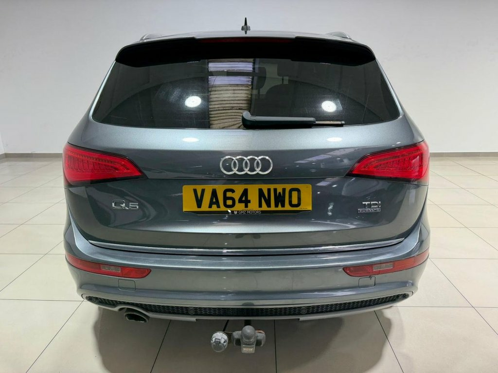 ** NATIONWIDE DELIVERY ** X2 KEYS ** HEATED SEATS ** SATELLITE NAVIGATION **ELECTRIC TAILGATE ** FRESH SERVICE ** 12 MONTH MOT ** 3 MONTH WARRANTY ** 12 MONTH BREAKDOWN COVER ** This Audi Q5 2.0 TDI S line Plus is a refined and sporty SUV, sitting on striking 20in alloy wheels with S line embossed sports seats and brushed aluminium inlays enhancing the premium interior. Comfort is assured with deluxe 3-zone climate control, an acoustic windscreen, privacy glass, and a power-operated tailgate with programmable opening angle, making it ideal for both daily driving and longer journeys. Packed with technology, it features MMI Navigation Plus displayed on a high-resolution 7in colour screen, Audi Sound System, DAB digital radio, Bluetooth connectivity, and the Technology Package. Practical and easy to manoeuvre, it also benefits from Audi Parking System Plus with rear sensors, cruise control, bi-xenon headlights, aluminium roof rails, tyre pressure monitoring, and a versatile 60-40 split-folding rear seat. Daytona Grey, 20in Alloy Wheels - 10-Y-Spoke Design, 12V Power Socket, 20GB Jukebox for Storing and Managing Mu, 20in Alloy Wheels - 5-Segment-Spoke Desi, ABS - Anti-Lock Braking System, AMI - Audi Music Interface, AUX-IN Socket, Acoustic Windscreen, Air Conditioning - Deluxe Automatic at t, Airbags - Driver, Airbags - Front Passenger, Airbags - Front Side, Airbags - Head System, Alarm - Thatcham Category 1, Aluminium Roof Rails, Amplifier - 6 Channel, Anti Theft Locking Wheel Bolts, Audi Parking System Plus, Audi Sound System, Audio Sound System, Auto-Dimming Rear-View Mirror, Automatic Headlight Range Adjustment, Automatic Wipers with Rain Sensor, Body Coloured Bumpers, Bumpers - S line Fr