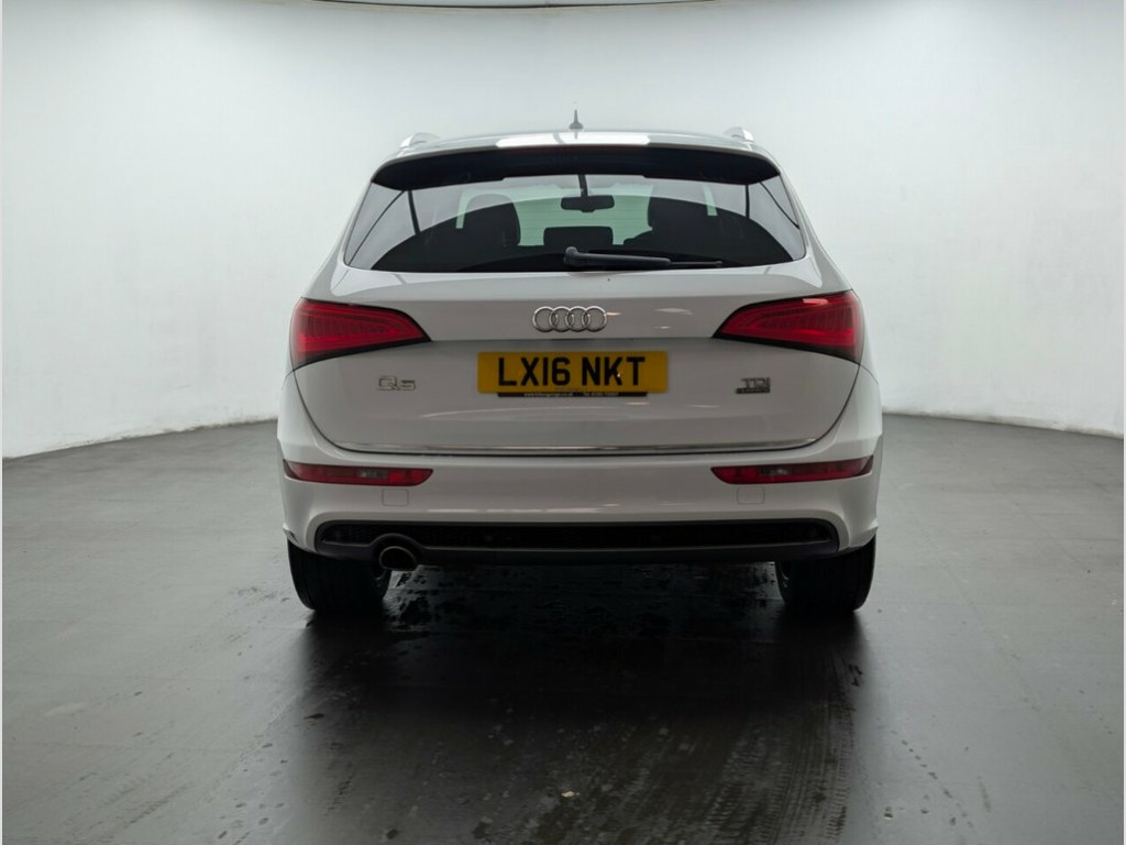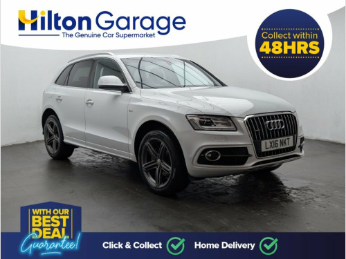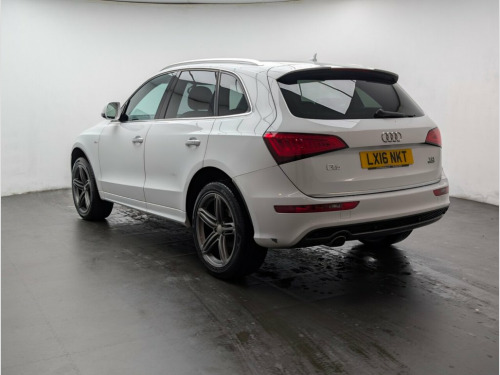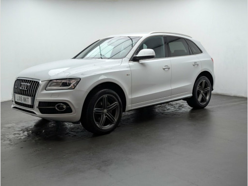 Air Conditioning, Audi Parking System Plus, Rear Parking Sensors, Privacy Glass, Auto-Dimming Rear-View Mirror. Last serviced on the 16.01.2026 at 58049 miles. With only 58362 miles on the clock, this 2016 Audi Q5 TDI S line Plus represents exceptional value. This Euro 6 compliant, four wheel drive SUV is powered by an efficient 2.0 litre diesel engine and boasts a clear vehicle history check. With an MOT valid until January 2027 and having had only two previous owners, this Q5 offers peace of mind. Notable features include Xenon headlights with automatic activation, a light sensor, and the Audi Parking System Plus, which incorporates both front and rear parking sensors for enhanced manoeuvrability. Stay connected on the go with the integrated Bluetooth mobile telephone preparation. The performance of this Audi Q5 is further highlighted by its brisk 0-60mph acceleration time of just 8.1 seconds, demonstrating a responsiveness that sets it apart from many other vehicles in its class. This combination of low mileage, excellent provenance, and desirable features makes this particular Q5 TDI S line Plus a compelling choice for those seeking a premium SUV experience. 12V Power Socket, 20GB Jukebox for Storing and Managing Mu, 20in Alloy Wheels - 5-Segment-Spoke Desi, ABS - Anti-Lock Braking System, Acoustic Windscreen, Air Conditioning - Deluxe Automatic at t, Airbags - Driver, Airbags - Front Passenger, Airbags - Front Side, Alarm - Thatcham Category 1, Aluminium Roof Rails, AMI - Audi Music Interface, Amplifier - 180 Watt, Amplifier - 6 Channel, Anti Theft Locking Wheel Bolts, Audi Parking System Plus, Audi Sound System, Auto-Dimming Rear-View Mirror, Automatic Headlight Range Adjustment, Automatic Wipers with Rain Sensor, Body Coloured Bumpers, Bumpers - S line Front, Car Jack, Chrome Tailgate Strip, Cloth Headlining in Black, Colour Drivers Informati