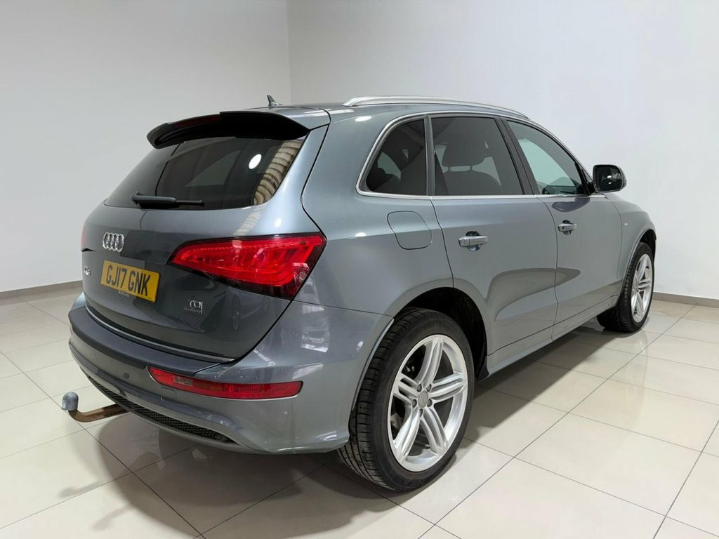 ** NATIONWIDE DELIVERY ** X2 KEYS ** HEATED SEATS ** ELECTRIC TAILGATE ** BLUETOOTH CONNECTIVITY ** PARKING SENSORS ** CRUISE CONTROL ** SATELLITE NAVIGATION ** TOWBAR ** SERVICE HISTORY ** 1 YEAR MOT ADVISORY FREE ** FRESH SERVICE ** 3 MONTH WARRANTY ** 1 YEAR AA BREAKDOWN COVER ** ULEZ COMPLIANT ** This Audi Q5 2.0 TDI S line Plus SUV combines sporty styling with everyday practicality, featuring striking 20in 5-Segment-Spoke alloy wheels, aluminium roof rails and the distinctive S line exterior styling package. Xenon headlights, privacy glass and body-coloured bumpers enhance its premium look, while Audi Parking System Plus, cruise control, traction control and tyre pressure monitoring provide added safety and driving confidence. The power-operated tailgate and towing preparation add versatility, making it ideal for both family life and long-distance journeys. Inside, the cabin offers excellent comfort and advanced technology, including deluxe 3-zone climate control, heated front seats and matt brushed aluminium inlays. The MMI Navigation Plus system, Audi Sound System, DAB digital radio, AMI and Bluetooth interface ensure seamless connectivity and entertainment on every drive. With split-folding rear seats, electrically adjustable and heated door mirrors, and a host of thoughtful convenience features, this Q5 delivers the perfect balance of performance, luxury and practicality. Mobile Telephone Preparation - High with, Daytona Grey, 20in Alloy Wheels - 5-Segment-Spoke Desi, ABS - Anti-Lock Braking System, AMI - Audi Music Interface, Airbags - Driver, Airbags - Front Passenger, Airbags - Front Side, Alarm - Thatcham Category 1, Aluminium Roof Rails, Aluminium Window Trims, Audi Concert Radio, Audi Parking System Plus, Audi Sound System, Auto-Dimming Rear-View Mirror, Bluetooth Interface, Body Coloured Bumpers, Chrome Door Handles and Tailgate Strip, Chrome-trimmed - Flat-bottom Design Exha, Cloth Headlining in Black, Colour Drivers Information System - DIS, Cruise Control, DAB Digital Radio, Deluxe 3-Zone Climate Control, Diffuser - Platinum Grey, Door Mirrors - Ele