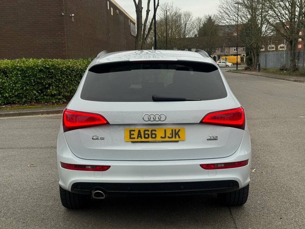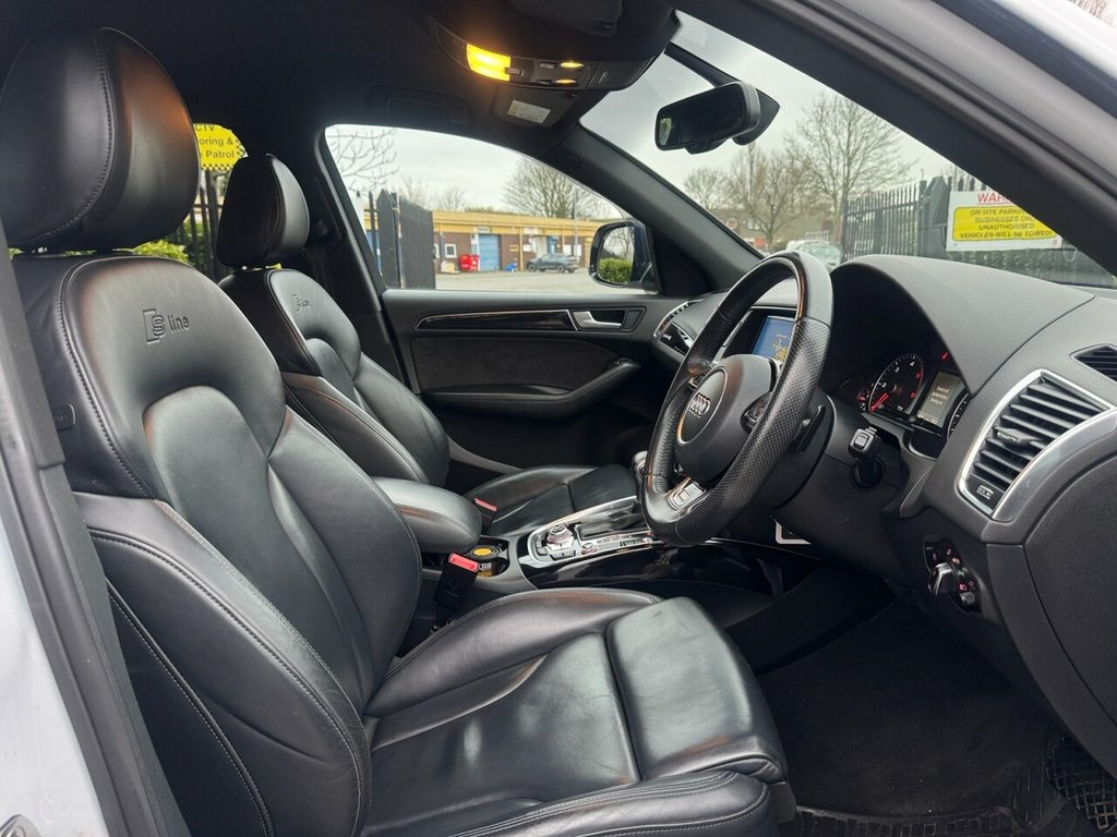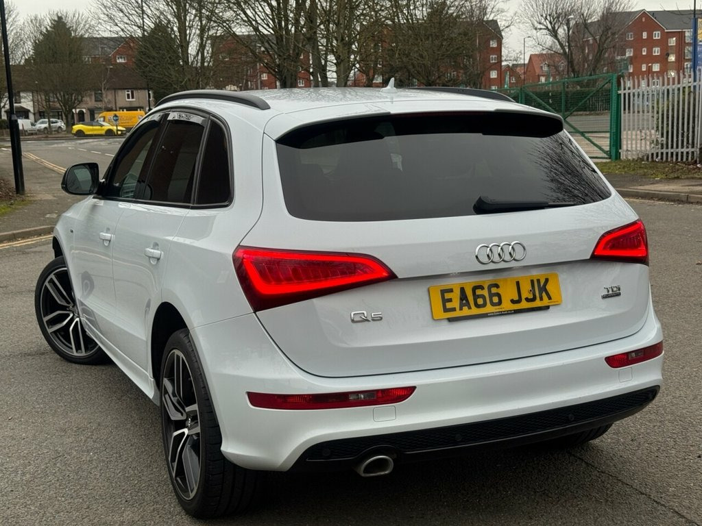 HERE WE HAVE A LOVELY AUDI Q5 BACKED WITH ITS SERVICE HISTORY INCLUDING A CAMBELT AND WATER PUMP CHANGE, VERY WELL MAINTAINED, DRIVES EXCELLENT, GOOD BODY WORK, TOP SPEC++BLACK GRILLE++UPGRADED ALLOYS++ELECTRIC TAILGATE++SAT NAV++FRONT AND REAR PARKING SENSORS++CRUISE CONTROL++AUTO LIGHTS++12 MONTHS AA BREAKDOWN COVER INCLUDED, WARRANTY INLCLUDED, FINANCE AVAILABLE APPLY WITHIN, 20in Alloy Wheels - 5-Segment-Spoke Desi, ABS - Anti-Lock Braking System, Airbags - Driver, Airbags - Front Passenger, Airbags - Front Side, Alarm - Thatcham Category 1, Aluminium Roof Rails, Aluminium Window Trims, AMI - Audi Music Interface, Audi Concert Radio, Audi Parking System Plus, Audi Sound System, Auto-Dimming Rear-View Mirror, Bluetooth Interface, Body Coloured Bumpers, Chrome Door Handles and Tailgate Strip, Chrome-trimmed - Flat-bottom Design Exha, Cloth Headlining in Black, Colour Drivers Information System - DIS, Cruise Control, DAB Digital Radio, Deluxe 3-Zone Climate Control, Diffuser - Platinum Grey, Door Mirrors - Electrically Adjustable a, Electric Windows - Front and Rea