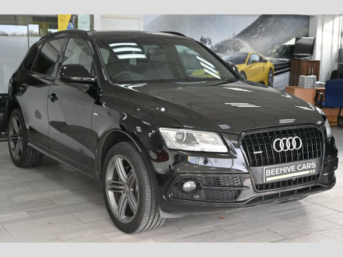 DRIVE AWAY TODAY OR HOME DELIVERY TO YOUR DOORSTEP FINANCE & PART EXCHANGE ARRANGED ONLINE** 7 DAY MONEY BACK GUARANTEE** Lovely spec Audi Q5 2.0 tdi quattro s-line s-tronic in metallic black with service history sat nav audi multimedia dab radio bluetooth media s-line leather seats with armrest heated seats electric heated folding door mirrors front & rear parking aid sensors xenon lights s-line steering wheel with f1 style paddleshifts push button tailgate alloys privacy 12V Power Socket, 20GB Jukebox for Storing and Managing Mu, 20in Alloy Wheels - 5-Segment-Spoke Desi, ABS - Anti-Lock Braking System, Acoustic Windscreen, Air Conditioning - Deluxe Automatic at t, Airbags - Driver, Airbags - Front Passenger, Airbags - Front Side, Alarm - Thatcham Category 1, Aluminium Roof Rails, AMI - Audi Music Interface, Amplifier - 180 Watt, Amplifier - 6 Channel, Anti Theft Locking Wheel Bolts, Audi Parking System Plus, Audi Sound System, Auto-Dimming Rear-View Mirror, Automatic Headlight Range Adjustment, Automatic Wipers with Rain Sensor, Body Coloured Bumpers, Bumpers - S line Front, Car Jack, Chrome Tailgate Strip, Cloth Headlining in Black, Colour Drivers Informati