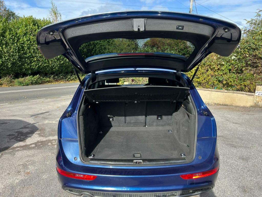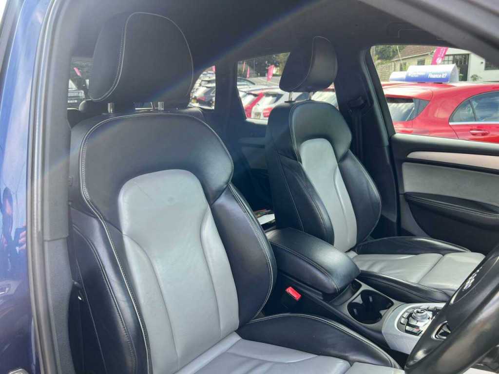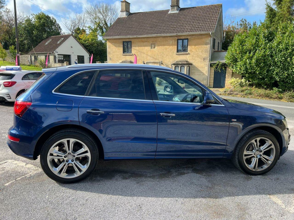 20'' ALLOY WHEELS - HEATED FRONT SEATS - REAR PARKING CAMERA - REAR BENCH SEAT PLUS - AUDI EXCLUSIVE LINE - SATELITE NAVIGATION - BLUETOOTH CONNECTIVITY - CLIMATE CONTROL - LEATHER MULTIFUNCTION STEERING WHEEL - CRUISE CONTROL - DAB/FM/AM RADIO - AUTOMATIC HEADLIGHTS - RAIN SENSOR WIPERS - STOP START TECHNOLOGY - FRONT FOG LIGHTS - PRIVACY GLASS - TWIN CUPHOLDRS - USB/AUX INPUT - ISOFIX - FINISHED IN SCUBA BLUE METALLIC WITH DARK INTERIORCOZENS CARS ARE EXCITED TO BRING YOU THIS STUNNING AUDI Q5 S LINE WITH SERVICE HISTORY AT 13K, 19K, 27K, 47K, 58K, 69K, 78K. 3 MONTH NATIONWIDE WARRANTY. We are a small family run business based in Hilmarton, Wilts, approx. 20 minutes from the M4 junction 16. We can arrange finance for most customers including those with a poor credit score. credit and debit cards are also accepted, extended warranties are available and PX is welcome. PLEASE CALL 01249 247277 TO ARRANGE A TEST DRIVE.. 12V Power Socket, 20GB Jukebox for Storing and Managing Music Files - WMA and MP3 Format, 20in Alloy Wheels - 5-Segment-Spoke Design, ABS - Anti-Lock Braking System, AMI - Audi Music Interface, Acoustic Windscreen, Air Conditioning - Deluxe Automatic at the Rear, Airbags - Driver, Airbags - Front Passenger, Airbags - Front Side, Alarm - Thatcham Category 1, Aluminium Roof Rails, Amplifier - 180 Watt, Amplifier - 6 Channel, Anti Theft Locking Wheel Bolts, Audi Parking System Plus, Audi Sound System, Auto-Dimming Rear-View Mirror, Automatic Headlight Range Adjustment, Automatic Wipers with Rain Sensor, Body Coloured Bumpers, Bumpers - S line Front, Car Jack, Chrome Tailgate Strip, Cloth Headlining in Black, Colour Drivers Information System - DIS, Concert Radio - MP3-CD Player, Cruise Control, Cup Holders - Centre Console, DAB Digital Radio, Deluxe 3-Zone Climate Control, Diffuser - Platinum Grey, Display Screen Colour - 7in TFT High Resolution and Split Screen Mode for Route Information, Door Handles - Chrome, Door Mirrors - Electrically Adjustable and Heated, Door or Boot Open Warning, Dynamic Route Guidance - TMC, EBD - Electronic Brakeforce Distribution, ESP - Electronic Stability Programme, Electric Windows - Front and Rear, Electrically Adjustable 4-Way Lumbar Support, Electromechanical Parking Brake, Electromechanical Power Steering, European Navigation Data, Exhaust Tailpipe - Chrome Trimmed - Flat-Bottom Design on Left Side, First Aid Kit, Front Centre Armrest, Front Fog Lights, Front Passenger Airbag Deactivation Switch, Front and Rear Floor Mats, Hard Drive - 40GB, Headlight Washers, Headlights - Coming-Leaving Home Function, Headlights - Light Sensor, Headlights - Xenon, Hill Descent Control, ISOFIX Child Seat Mounting for Front Passenger, ISOFIX Child Seat Preparation for Rear Seats with Top Tether, Inlays - Matt Brushed Aluminium, LED Daytime Running Lights, LED Rear Lights, Leather Package - Door Armrests, MMI Navigation Plus, Misfuelling Inhibition, Mobile Telephone Preparation - Bluetooth Interface, Outside Temperature Display, Pollen Filter, Power Operated Tailgate, Privacy Glass, Radiator Grille - S Line with Chrome Vertical Bars, Rear Parking Sensors, Rear Spoiler - Body Coloured, Remote Boot Release, Remote Central Locking, Rest Recommendation System, Roof Bars and Storage Bag, S Line Badges on Front Wings, S Line Side Skirts, S line Rear Diffuser, S line Sill Plates and Aluminium Loading Strip for the Boot, SD Card Reader x2, Seats - Front Height Adjustment, Seats - Front with S line Embossing, Seats - Split Folding Rear - 60-40, Seats - Sports, Single CD-DVD Player, Speakers x10, Steering Column - Rake and Reach Adjustment, Steering Wheel - Gear Shift Paddles, Steering Wheel - Multi-function, Steering Wheel - S Line 3-Spoke Leather, Styling Package - S line Exterior, TP Memo - Automatically Saves Traffic News, Tailgate - Lid Closing Assistance Unit, Tailgate - Programmable Angle for the Luggage Compartment Lid, Technology Package, Tool Kit and Car Jack, Towing Equipment - Preparation, Traction Control, Tyre Pressure Loss Indicator, Tyre Repair Kit, Warning Triangle, Window Surrounds - Aluminium, Scuba Blue, Audi Exclusive Line - Fine Nappa Leather - Cloudy Grey-Black, 20in Alloy Wheels - 5-Twin-Spoke Off-Road Design, Rear Bench Seat Plus, Heated Front Seats.