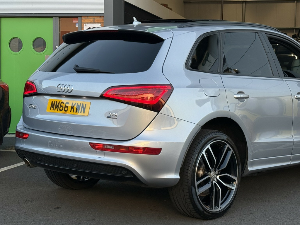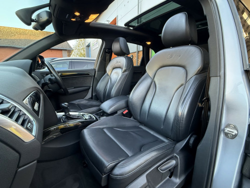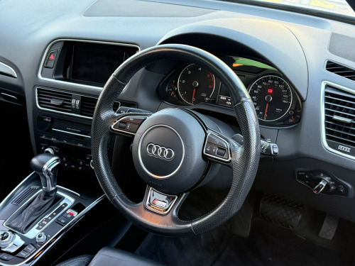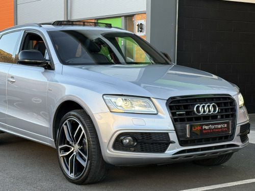 DEPOSIT TAKEN! , , WE ARE PROUD TO OFFER THIS BEAUTIFUL EXAMPLE OF A FLORET SILVER AUDI Q5 2.0 TDI S LINE PLUS! HUGE SPECIFICATION INCLUDING ALL OF THE DESIRABLE OPTIONS; PANORAMIC GLASS SUNROOF, 20 DIAMOND CUT ALLOYS & CLIMATE CUPHOLDER! EXTENSIVE FULL AUDI SERVICE HISTORY! IMMACULATE!, , Upgrades/Spec Includes: Floret Silver Metallic Paintwork, Fine Nappa Leather S Line Seats, Panoramic Glass Sunroof, Bi-Xenon Plus Headlights, MMI Navigation Plus, Climate Cupholder, Electric Tailgate, Front & Rear Parking Sensors, Black Roof Rails, Black Pack, DAB Tuner, Phone Connectivity, Bluetooth Audio, Cruise Control, Voice Control, Lumbar Support, Automatic Dimming Interior & Exterior Mirrors, Automatic Air Conditioning, Dual Climate Control, Tyre Pressure Monitoring System, Flat Bottom Sports Steering Wheel, Auto Lights, Auto Wipers. 2 x Keys. , SPEAK TO US ABOUT OUR FLEXIBLE LOW RATE FINANCE OPTIONS, OR TRY OUR FREE FINANCE ELIGIBILITY CHECKER ON OUR WEBSITE!, , ANY PART EXCHANGE ACCEPTED!