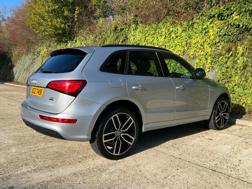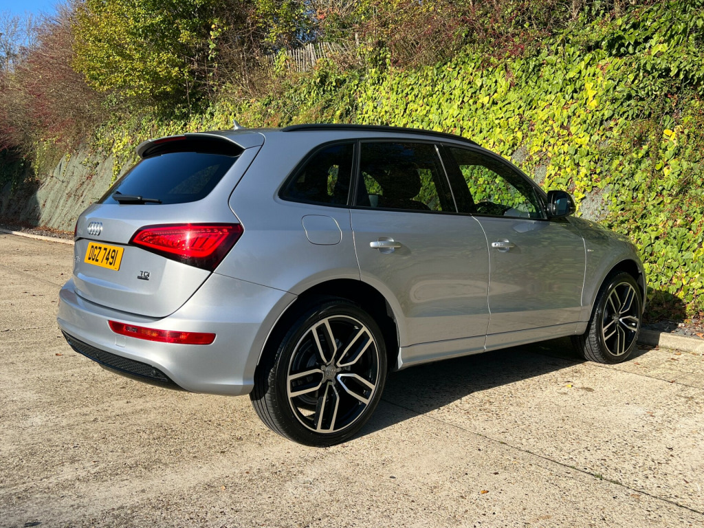 Beautifully Presented AUDI Q5 S-LINE PLUS BLACK EDITION, In Silver, Full Service History, Big Spec, Electric Heated Mirrors, Automatic LED Day Running Lights, Xenon Lights, Multi Media Interface, DAB, FM, Phone Connectivity, CD Player, Cruise Control, Heated And Cooling Cup Holders, Electric Windows, Factory Fitted Rear Privacy Glads, Electric Tailgate, Removable Tow bar, Full Leather Seats, Heated Seats, Multifunctional Leather Steering Wheel, Flat Bottom Steering Wheel, Front & Rear Parking Sensors, 2 Keys, Just had A New MOT, Health Check And Full Valet Done Prior To Sale, UK HOME DELIVERY AVAILABLE. FINANCE AVAILABLE. We Take Great Pride In Preparing And Detailing Our Vehicles To The Highest Standard As Well As Having 6 Months Warranty With A Fresh MOT And Health Check For Additional Peace Of Mind. For Appointments And Enquiries Please Contact at:Tel: 07827975566 in alloy wheels - 5-segment-spoke design, aluminium roof rails, aluminium window trims, body coloured bumpers, chrome door handles and tailgate strip, chrome-trimmed - flat-bottom design exhaust pipe, diffuser - platinum grey, door mirrors - electrically adjustable and heated, electric windows - front and rear, privacy glass, rear spoiler - body coloured, roof bars and storage bag, styling package - s line exterior, tyre repair kit, abs - anti-lock braking system, airbags - driver, airbags - front passenger, airbags - front side, alarm - thatcham category 1, esp - electronic stability programme, electromechanical parking brake, first aid kit, hill descent control, isofix child seat mounting, misfuelling inhibition, remote central locking, three-point seat belts, traction control, warning triangle, ami - audi music interface, audi concert radio, audi sound system, bluetooth interface, dab digital radio, mmi navigation plus, technology package, towing equipment - preparation, audi parking system plus, colour drivers information system - dis, cruise control, electromechanical power steering, rest recommendation system, tyre pressure loss indicator, auto-dimming rear-view mirror, cloth headlining in black, deluxe 3-zone climate control, front centre armrest, front and rear floor mats, heated front seats, inlays - matt brushed aluminium, leather package - door armrests, power operated tailgate, s line sill plates and aluminium loading strip for the boot, seats - front electric lumbar support, split folding rear seat, steering column - rake and reach adjustment, steering wheel - 3-spoke s line multi-function leather, tool kit and car jack, front and rear fog lights, headlights - xenon, led rear lights, light and rain sensor