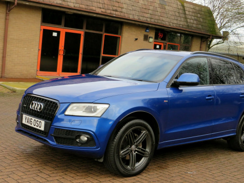 Audi Q5 2.0 TDI S-Line Plus Quattro S Tronic - July 2016 (16)ULEZ Compliant Panoramic Roof Full HistoryWe are delighted to offer this beautifully presented July 2016 (16) Audi Q5 S-Line Plus Quattro SUV, finished in the stunning Sepang Blue with Black S-Line full-leather upholstery and aluminium silver interior inlays.Powered by the smooth and responsive 2.0 TDI 190 BHP Quattro engine, paired with a 7-speed S Tronic automatic gearbox, this Q5 delivers excellent performance, comfort, and efficiency. Originally costing over £40,000 when new, this example benefits from a highly desirable specification.The vehicle has covered 86,155 miles from new and has had just two previous owners. It comes with a Full Service History, and for complete peace of mind, the cambelt kit and water pump have been replaced recently.The car will be supplied with a long MOT, valid until December 2026, and is ULEZ compliant. Road tax is £255 per year.Key Features & Specification:S-Line Plus package - upgraded body styling, larger bumpers, side skirts & S-Line interiorPanoramic Open Sky glass roofBlack styling packGloss black grilleGloss black wing mirrorsGloss black roof railsDe-chromed exterior20'' 5-double-spoke S-Line alloy wheels (freshly refurbished) with excellent tyresPower tailgateFront & rear parking sensorsPrivacy glassPower-folding heated door mirrorsFront fog lightsAutomatic Xenon headlights with LED daytime running lightsFlat-bottom S-Line multifunction leather steering wheelCruise controlHeated front seatsSatellite navigationDAB radioCD / SD card / Audi Multimedia InterfaceBluetooth phone & audio streamingDual-zone climate control with air conditioningISOFIX child seat anchor pointsAudi over-matsBoot linerEconomy & Running Costs:47 MPG (combined)Up to 52 MPG on a runRoad tax: £140.25 (6 months) / £255 (12 months)Supplied With:Owner's manualsInflation kitTwo keysThis is a fantastic Audi Q5 S-Line Plus Quattro, finished in a superb colour combination, with excellent specification and a comprehensive service history.Looks and drives extremely well.? To arrange a viewing or reserve this vehicle, please contact us on:01274 308150 / 07890 100739Finance available (subject to status). Part exchange welcome.,