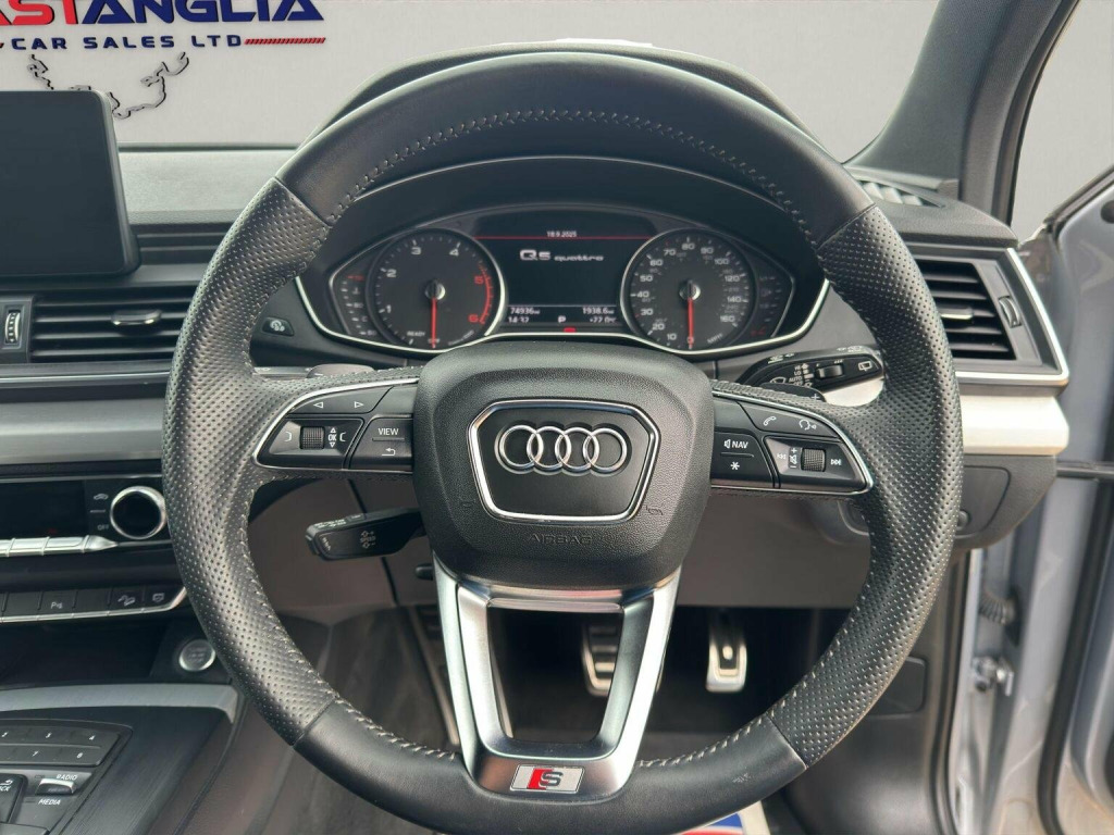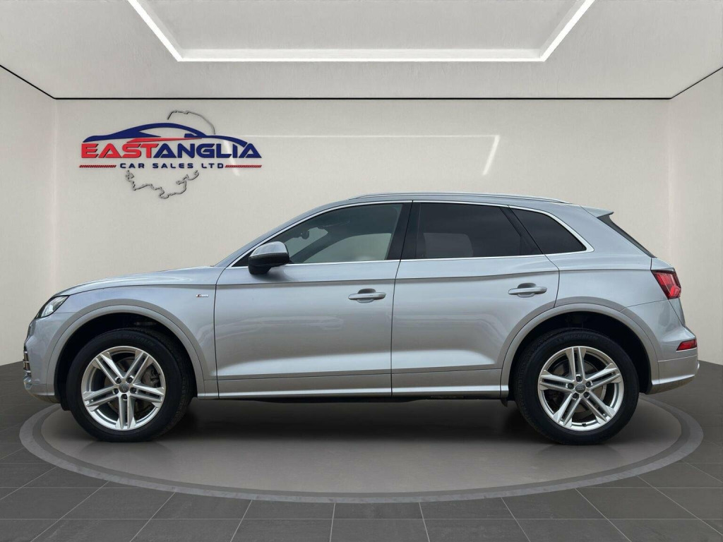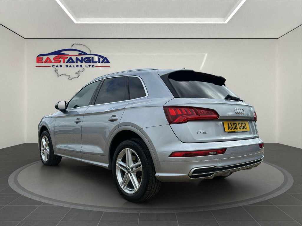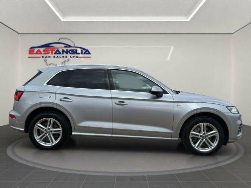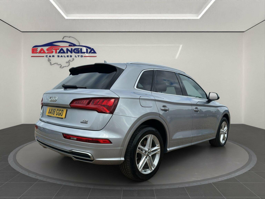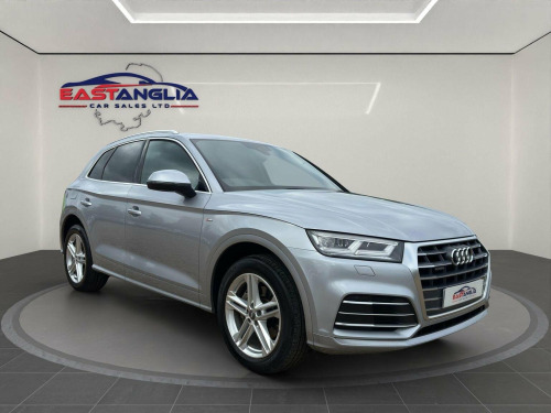At East Anglia Car Sales we are proud to present This stunning Audi Q5 Boasting a full dealership service history up to 73,372 miles on 27th July 2025, this 2018 Audi Q5 TDI S line offers excellent provenance. This Four Wheel Drive model is powered by a 2.0 litre diesel engine and meets Euro 6 emissions standards. It comes equipped with a clear vehicle history check and a 3 month warranty for your peace of mind. Notable features include Bluetooth connectivity, LED headlights with dynamic rear indicators, heated front seats for added comfort, the Audi Parking System Plus with front and rear sensors, and a light and rain sensor for automatic headlight activation. Call now to arrange a viewing or book a test drive! , Part exchange is welcome and finance options are available. Any of our vehicles can be secured by a refundable deposit. This is only subject to a refund if the buyer pays the deposit prior to viewing and on viewing is not happy with the sale.
