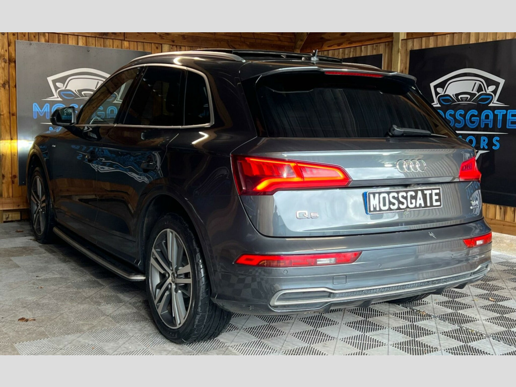 This 2017 Audi Q5 TDI S line boasts a clear vehicle history, offering you peace of mind. This four wheel drive model is powered by a 2.0 litre diesel engine, meeting Euro 6 emissions standards. It comes equipped with the S line trim, enhancing its sporty appeal. Notable features include a light and rain sensor for automatic headlight activation, heated front seats for added comfort, and the Audi Parking System Plus with front and rear sensors to assist with manoeuvring. You'll also appreciate the striking LED headlights with the distinctive Q signature design, complemented by LED rear lights and dynamic rear indicators. For seamless connectivity, a Bluetooth interface is included.Experience impressive performance with this Q5, achieving 0 to 62 miles per hour in just 7.9 seconds. Its fuel economy is a highlight, offering up to 55 miles per gallon, which indicates it is more economical than many similar vehicles. Furthermore, its low CO2 emissions are better than many comparable cars, contributing to lower running costs. The generous boot space provides ample room for luggage or shopping, making it a practical choice for everyday use and longer journeys. With a towing weight of 2400 kg, this Audi Q5 is also well suited for towing.. 19in Alloy Wheels - 5-Twin-Spoke Star Design - Diamond Cut Finish, 2 x SDXC Card Readers, 2 x USB Charging Ports and 1 x AUX-IN, 4-Way Electric Lumbar Support, 6-Airbag System, Air Inlet Horizontal Inlay in Matt Aluminium, Aluminium Roof Rails, Anti Theft Locking Wheel Bolts, Anti-Theft Alarm, Audi Connect Infotainment Services - 3 Month Trial, Audi Connect Safety and Service - e-call, Audi Drive Select, Audi Parking System Plus, Audi Pre-Sense City, Audi Smartphone Interface, Audi Sound System, Auto-Dimming Rear-View Mirror, Automatic Headlight Adjustment, Bluetooth Interface, Body Coloured Door Mirrors, CD Drive, Cloth Headlining in Black, Colour Drivers Information System with 7in Display, Comfort Dynamic Suspension, Contrast Stitching on Seats - Steering Wheel and Gear Lever Gaiter, Cruise Control with Speed Limiter, DAB Digital Radio, Deluxe 3-Zone Climate Control, Door Inserts in Matt Selenite Silver, Door Mirrors - Electrically Adjustable and Heated with Integrated LED Side Indicators, ESC - Electronic Stabilisation Control inc ABS - ASR and EDL, Electric Windows - Front and Rear, Electromechanical Parking Brake, Electromechanical Power Steering, First Aid Kit and Warning Triangle, Front Centre Armrest, Front and Rear Floor Mats, Gear Lever Knob in Black Perforated Leather, Heated Front Seats, High Multi-function 3-Spoke Leather Steering Wheel with Grips in Perforated Leather and S Badging with Gear-Shift Paddles, High-Gloss Package, Honeycomb Side Air Inlet Grille in Titanium Black, ISOFIX Child Seat Mounting and Top Tether, Illuminated Door Sill Trims with S Logo, Inlays - Matt Brushed Aluminium, Keyless Go, LED Headlights featuring Q Signature Design with LED Rear Lights and Dynamic Rear Indicators, LED Interior Lighting Pack, LED Rear Lights, Light and Rain Sensor, Luggage Compartment Cover, Luggage Compartment Mat, MMI Navigation - SD Card Based, MMI Radio Plus with 7in Colour MMI Screen and MMI Controller, Manual Seat Adjustment, Non-Smoking Package, Pedals in Stainless Steel, Pop-Up Bonnet for Pedestrian Protection, Power Operated Tailgate, Privacy Glass with Acoustic Glazing For Front Windows, Radiator Grille in Matt Twilight Grey with Horizontal Matt Aluminium Struts, Rear Diffuser in Body Colour with Matt Aluminium Silver Surrounds, Remote Central Locking, Removable Luggage Compartment Floor, Removable Net Partition, S Line Badges on the Front Wing Panels, S Line Front and Rear Bumpers, S Line Side Skirts, S line Rear Spoiler, Seat Belt Monitoring, Side and Rear Windows in Heat-Insulating Glass, Split Folding Rear Seat Bench, Stainless Steel Loading Sill Protector, Tool Kit and Car Jack, Towbar Preparation, Tyre Pressure Warning Light, Tyre Repair Kit, Underbody Protection in Matt Selenite Silver, Voice Control System, Windscreen with Acoustic Glass, quattro On Demand.