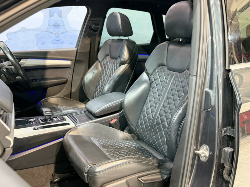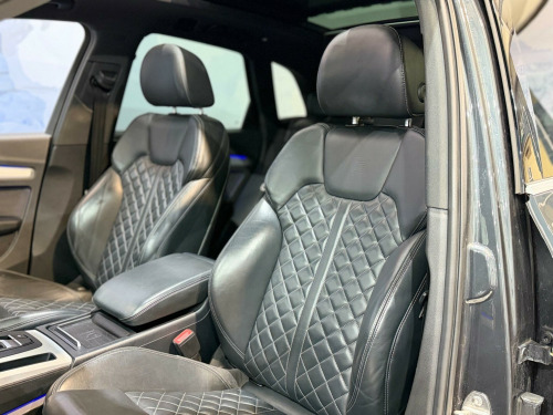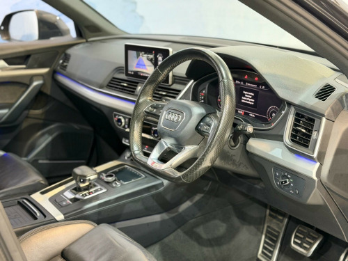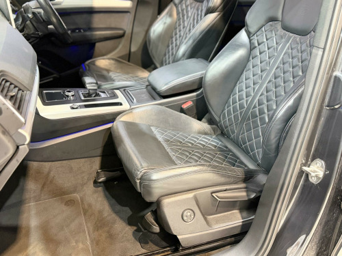 This 2017 Audi Q5 TDI S line offers a superb blend of performance and refinement, boasting a powerful 2.0 litre diesel engine and a smooth four wheel drive system. As a Euro 6 compliant vehicle, it ensures lower emissions, making it an environmentally conscious choice. The S line trim level enhances its sporty appeal, complemented by striking 21 inch alloy wheels in a 5 arm polygon design. Inside, you'll find luxurious Fine Nappa leather sport seats with an S1 embossed logo in black, offering both comfort and style. The Comfort and Sound Package adds convenience with keyless entry, while the Technology Package includes Bluetooth connectivity and wireless phone charging, keeping you connected on the go.Experience impressive efficiency with a highlighted fuel economy of 55 mpg, demonstrating its capability to cover long distances economically. The Q5 also provides ample practicality with its large boot space, perfect for luggage or shopping. Its acceleration from 0 to 62 mph in just 7.9 seconds indicates a responsive driving experience. Furthermore, its low CO2 emissions highlight its efficiency compared to other vehicles in its class. For added enjoyment and versatility, this Q5 features a panoramic glass sunroof that can be opened, allowing you to enjoy the open air. With a towing weight of 2400 kg, it is also well equipped for carrying heavier loads. in alloy wheels - 5-twin-spoke star design - diamond cut finish, 2 x sdxc card readers, 2 x usb charging ports and 1 x aux-in, 4-way electric lumbar support, 6-airbag system, air inlet horizontal inlay in matt aluminium, aluminium roof rails, anti theft locking wheel bolts, anti-theft alarm, audi connect infotainment services - 3 month trial, audi connect safety and service - e-call, audi drive select, audi parking system plus, audi pre-sense city, audi smartphone interface, audi sound system, auto-dimming rear-view mirror, automatic headlight adjustment, bluetooth interface, body coloured door mirrors, cd drive, cloth headlining in black, colour drivers information system with 7in display, comfort dynamic suspension, contrast stitching on seats - steering wheel and gear lever gaiter, cruise control with speed limiter, dab digital radio, deluxe 3-zone climate control, door inserts in matt selenite silver, door mirrors - electrically adjustable and heated with integrated led side indicators, esc - electronic stabilisation control inc abs - asr and edl, electric windows - front and rear, electromechanical parking brake, electromechanical power steering, first aid kit and warning triangle, front centre armrest, front and rear floor mats, gear lever knob in black perforated leather, heated front seats, high multi-function 3-spoke leather steering wheel with grips in perforated leather and s badging with gear-shift paddles, high-gloss package, honeycomb side air inlet grille in titanium black, isofix child seat mounting and top tether, illuminated door sill trims with s logo, inlays - matt brushed aluminium, keyless go, led headlights featuring q signature design with led rear lights and dynamic rear indicators, led interior lighting pack, led rear lights, light and rain sensor, luggage compartment cover, luggage compartment mat, mmi navigation - sd card based, mmi radio plus with 7in colour mmi screen and mmi controller, manual seat adjustment, non-smoking package, pedals in stainless steel, pop-up bonnet for pedestrian protection, power operated tailgate, privacy glass with acoustic glazing for front windows, radiator grille in matt twilight grey with horizontal matt aluminium struts, rear diffuser in body colour with matt aluminium silver surrounds, remote central locking, removable luggage compartment floor, removable net partition, s line badges on the front wing panels, s line front and rear bumpers, s line side skirts, s line rear spoiler, seat belt monitoring, side and rear windows in heat-insulating glass, split folding rear seat bench, stainless steel loading sill protector, tool kit and car jack, towbar preparation, tyre pressure warning light, tyre repair kit, underbody protection in matt selenite silver, voice control system, windscreen with acoustic glass, quattro on demand, technology package, rear-view camera, bang and olufsen sound system, audi phone box with wireless charging, rear side airbags, pre-sense basic, headlights - high-beam assist, audi matrix led headlights featuring q signature design with led rear lights and dynamic front and rear indicators, audi hill hold assist, 21in alloy wheels - 5-arm polygon design audi sport, door mirrors - folding, panoramic glass sunroof, audi virtual cockpit, comfort and sound package, electric steering wheel adjustment, fine nappa leather - sport seats - s1 embossed logo - black, flat-bottomed 3-spoke leather high multi-function steering wheel, heated front and outer rear seats, storage package, extended led interior lighting package - multi-coloured, extended interior upholstery pack, electrically adjustable front seats