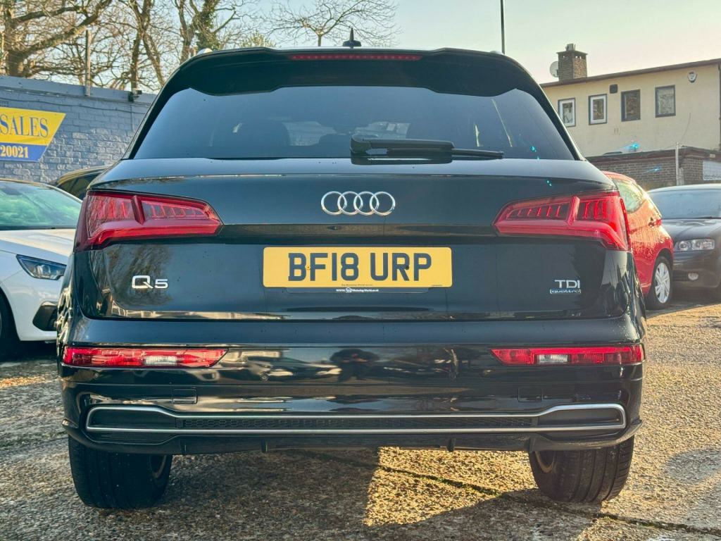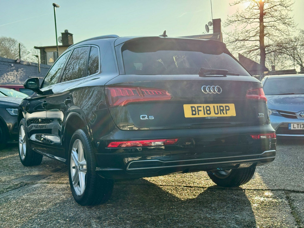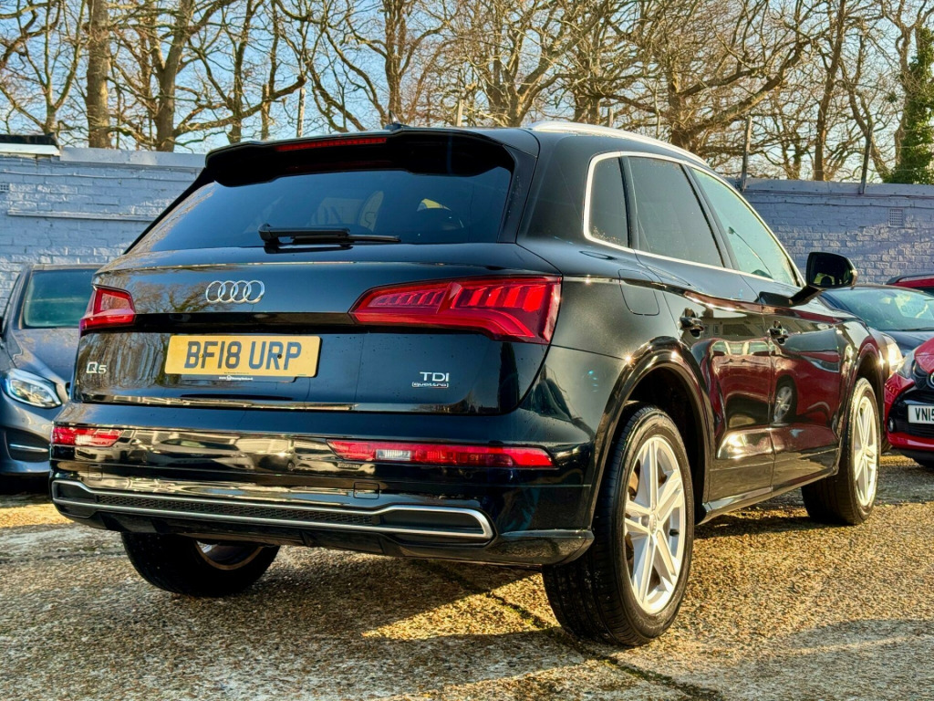 |||| THE USED CAR: ||||Pavillion Car Sales is delighted to offer this 2018 Audi Q5 2.0 TDI S line S Tronic quattro, a premium Euro 6, ULEZ-compliant SUV that perfectly balances performance, comfort, and practicality.Powered by the strong yet efficient 2.0 TDI diesel engine producing 188bhp, paired with the smooth S Tronic automatic gearbox and Audi’s renowned quattro all-wheel drive, this Q5 delivers confident performance in all conditions while still returning an impressive 55.4mpg. The highly desirable S line comes with 19in diamond-cut alloy wheels, S line exterior styling, and a refined, sporty road presence.Inside, the cabin is both luxurious and practical, featuring heated front sport seats with Alcantara, deluxe 3-zone climate control, Audi Partial Virtual Cockpit-style driver display, Audi Smartphone Interface inc Car Play, Bluetooth, cruise control with speed limiter, and keyless go. Convenience is further enhanced by front and front/rear parking sensors, a power-operated tailgate, privacy glass, and LED headlights with dynamic rear indicators. It has had GardX nanotechnology sealant CPS ultra on the exterior and Leather Guard on the interior, worth £799 in 2023. |||| THE HISTORY: ||||Well Maintained – Low Mileage ExampleThis Audi Q5 has had only two former keepers. It has been clearly well cared for and drives exactly as you would expect from a premium Audi SUV and fully inspected and prepared to a high standard by the Pavillion Car Sales Family. It comes with a comprehensive history as follows (4 Total Services) 1st at 15686, 2nd at 27940, 3rd at 45228, and 4th at 50,800. 5th DONE at 51,000 (Cambelt + Waterpump Changed)|||| WHAT'S INCLUDED: ||||Peace of Mind from the Pavillion Car Sales FamilyThis vehicle will be supplied with a NEW MOT done (Expires 08/03/2027 - Advisory Free), 12 months complimentary AA breakdown cover, and a 6-month AA warranty, extendable up to a 36-month nationwide AA warranty. We also offer 5-day Drive Away Insurance and can assist with road tax. 2 Wireless Keys supplied.PAVILLION CAR SALES - CRAWLEY - READY TO GO. 19in Alloy Wheels - 5-Twin-Spoke Star Design - Diamond Cut Finish, 2 x SDXC Card Readers, 2 x USB Charging Ports and 1 x AUX-IN, 4-Way Electric Lumbar Support, 6-Airbag System, Air Inlet Horizontal Inlay in Matt Aluminium, Aluminium Roof Rails, Anti Theft Locking Wheel Bolts, Anti-Theft Alarm, Audi Connect Infotainment Services - 3 Month Trial, Audi Connect Safety and Service - e-call, Audi Drive Select, Audi Parking System Plus, Audi Pre-Sense City, Audi Smartphone Interface, Audi Sound System, Auto-Dimming Rear-View Mirror, Automatic Headlight Adjustment, Bluetooth Interface, Body Coloured Door Mirrors, CD Drive, Cloth Headlining in Black, Colour Drivers Information System with 7in Display, Comfort Dynamic Suspension, Contrast Stitching on Seats - Steering Wheel and Gear Lever Gaiter, Cruise Control with Speed Limiter, DAB Digital Radio, Deluxe 3-Zone Climate Control, Door Inserts in Matt Selenite Silver, Door Mirrors - Electrically Adjustable and Heated with Integrated LED Side Indicators, ESC - Electronic Stabilisation Control inc ABS - ASR and EDL, Electric Windows - Front and Rear, Electromechanical Parking Brake, Electromechanical Power Steering, First Aid Kit and Warning Triangle, Front Centre Armrest, Front and Rear Floor Mats, Gear Lever Knob in Black Perforated Leather, Heated Front Seats, High Multi-function 3-Spoke Leather Steering Wheel with Grips in Perforated Leather and S Badging with Gear-Shift Paddles, High-Gloss Package, Honeycomb Side Air Inlet Grille in Titanium Black, ISOFIX Child Seat Mounting and Top Tether, Illuminated Door Sill Trims with S Logo, Inlays - Matt Brushed Aluminium, Keyless Go, LED Headlights featuring Q Signature Design with LED Rear Lights and Dynamic Rear Indicators, LED Interior Lighting Pack, LED Rear Lights, Light and Rain Sensor, Luggage Compartment Cover, Luggage Compartment Mat, MMI Radio Plus with 7in Colour MMI Screen and MMI Controller, Manual Seat Adjustment, Non-Smoking Package, Pedals in Stainless Steel, Pop-Up Bonnet for Pedestrian Protection, Power Operated Tailgate, Privacy Glass with Acoustic Glazing For Front Windows, Radiator Grille in Matt Twilight Grey with Horizontal Matt Aluminium Struts, Rear Diffuser in Body Colour with Matt Aluminium Silver Surrounds, Remote Central Locking, Removable Luggage Compartment Floor, Removable Net Partition, S Line Badges on the Front Wing Panels, S Line Front and Rear Bumpers, S Line Side Skirts, S line Rear Spoiler, Seat Belt Monitoring, Side and Rear Windows in Heat-Insulating Glass, Split Folding Rear Seat Bench, Stainless Steel Loading Sill Protector, Tool Kit and Car Jack, Towbar Preparation, Tyre Pressure Warning Light, Tyre Repair Kit, Underbody Protection in Matt Selenite Silver, Voice Control System, Windscreen with Acoustic Glass, quattro On Demand, Navigation Preperation - Needs SD Card and Activation. Part service history