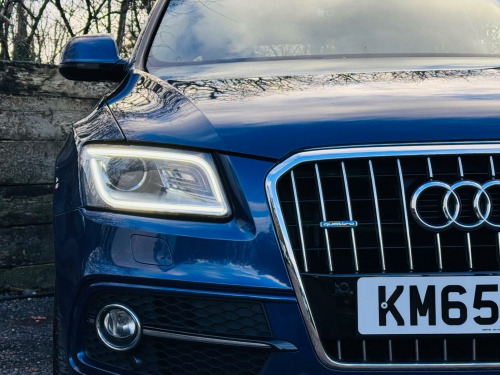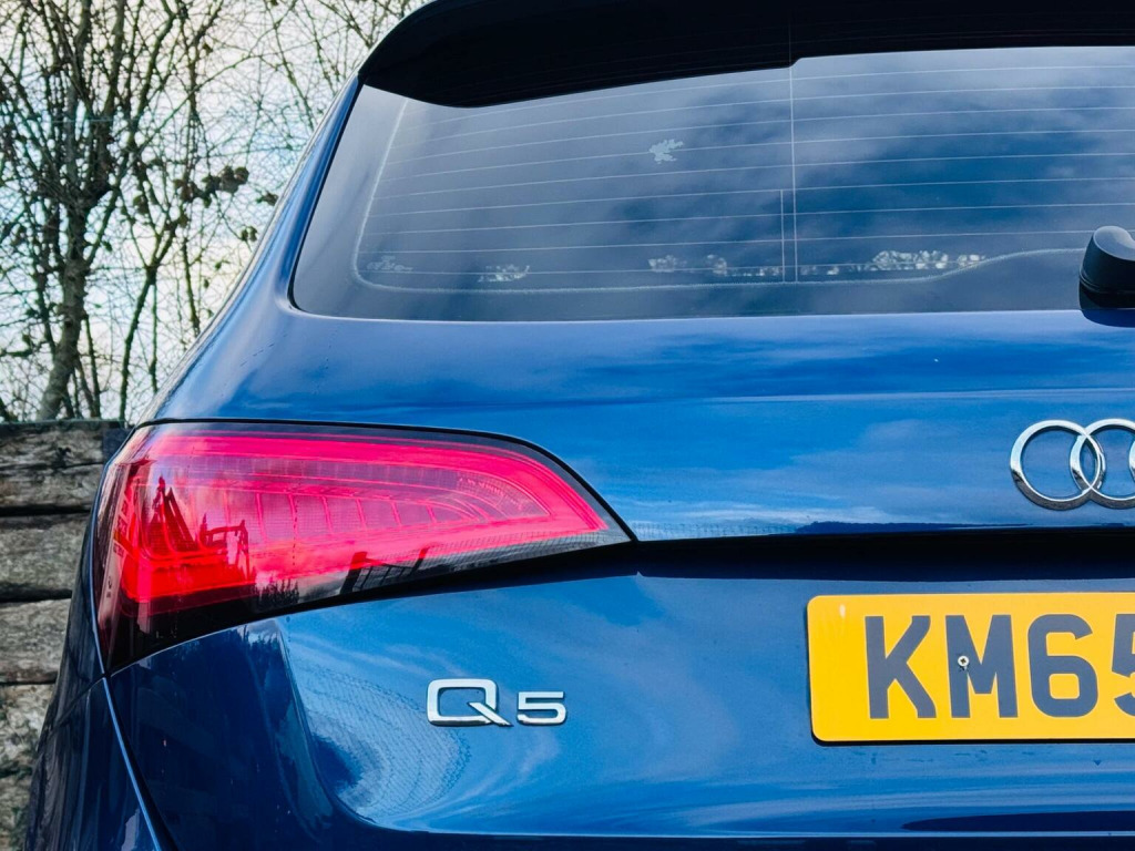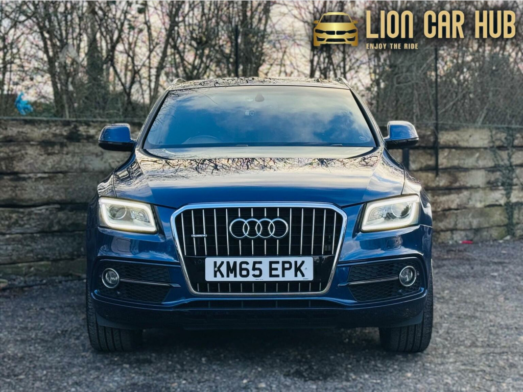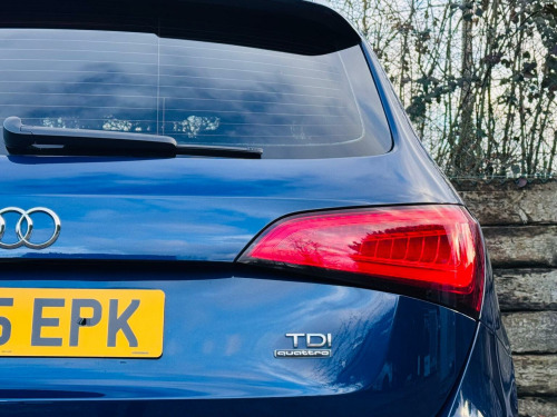 We are proud to present you this Ex-demo beautiful Audi Q5 S line Quattro in Scuba blue metallic colour and full black leather interior, much loved and cared for family car. Lower than average milage. Highly maintained and in great condition both mechanically and cosmetically, new brake pads all around, comes with a free 12-month MOT upon request, 6 Months Nationwide warranty parts & labour. = SPEC = ULEZ compliant, NeXT base dashcam fitted, front heated seats, full leather interior extended to doors, 19-inch alloys in great condition, lumbar support, Cruise control, Audi hill hold assist, Multimedia screen, Enhanced Telephone preparation, Navigation, Bluetooth, AUX, CD player, DAB, FM/AM Radio, USB, front and rear parking sensors, Electromechanical Parking Brake, S Line Body Styling, ISOFIX and much more. = HISTORY & CONDITION = Free 12-month MOT upon request, Free 6-month warranty. It comes with all the paperwork and full-service history, serviced at 15K, 28K, 39K, 47k, 51k and last serviced at 58k Miles. Gearbox serviced at 42k miles, cambelt and water pump replaced at 48k miles in 2023, all glow plugs also replaced at 51k miles. All four brake pads also just replaced. 2 Keys, HPI Clear. 1 previous owner. The car is in great condition inside and outside, video of the car also available on our website. = FINANCE = We also provide finance at competitive rates, give us a call for a free finance quote over the phone, from our panel of over 100 lenders. You can drive away the same day. = ABOUT US = We also take all types of part exchanges – Video viewing - Nationwide delivery - We take all major cards for payment - As standard all vehicles are supplied with a warranty which covers parts & labour valid nationwide (with an option to extend up to 48 months at an additional cost). We are based in Farnham, GU10 4JX.