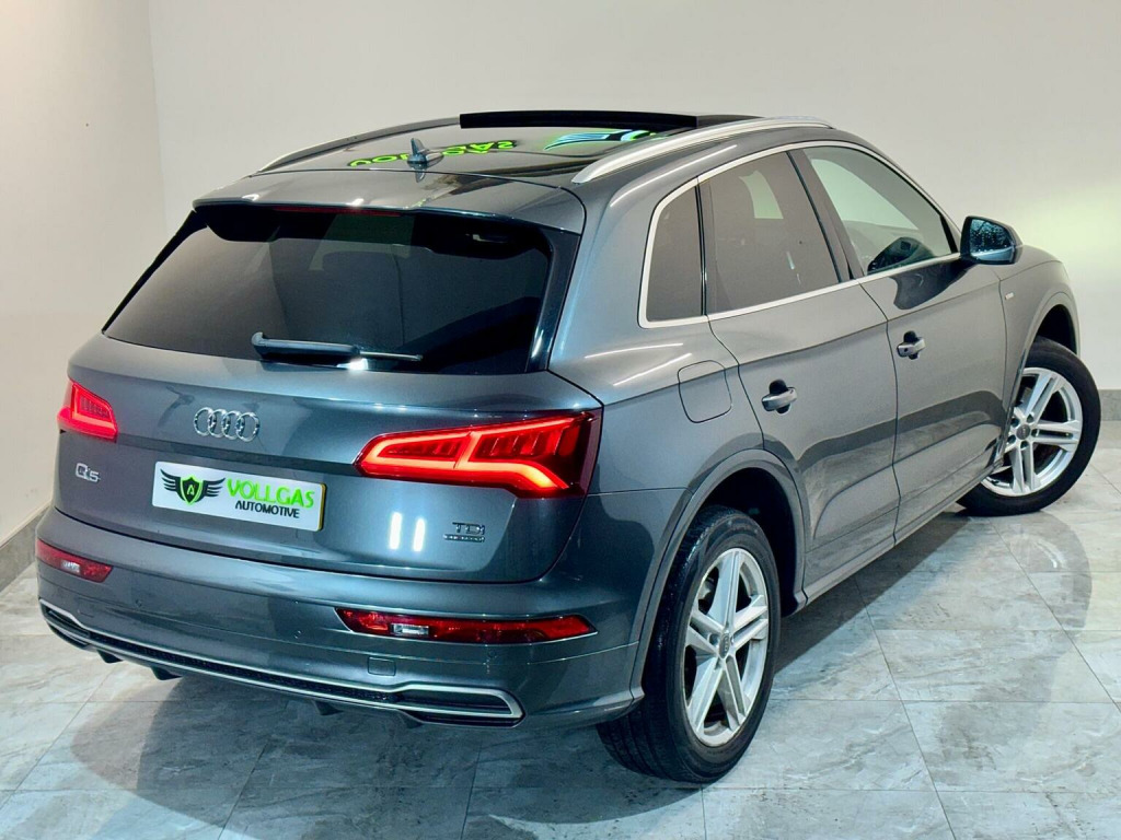Vollgas Automotive Proudly Presents A Beautiful Example Of A Audi Q5 2.0 TDI S Line S Tronic Quattro Euro 6 5dr. Presented In Metallic Daytona Grey, Covered 136,000 Motorway Miles, Only 2 Owners From New. Backed By A Full Service History Schedule. Presented In Excellent Condition Throughout. Additional Extras Include; Electric Tilt/Slide Panoramic Sunroof + Leather - Alcantara - Sports Seats With S Embossed Logo - Black + Front Heated Seats + Satellite Navigation System + Electric Tailgate + Automatic LED Headlights + 19 Alloy Wheels + Apple Play/Bluetooth Audio Streaming + Privacy Glass + Parking Sensors & Much More As Standard. Vollgas Automotive Comes From A Devotion For Sports, Performance & Prestige Cars. All Our Stock Is Carefully Adopted. Our Team Is Comprised Of Members With OCD For Perfection & Automotive Infatuation. Each Vehicle Undergoes A Rigorous Mechanical & Physical Precision Checklist Before Being Presented To Our Like Minded Petrolheads. All Our Cars Are HPI Clear. Please Contact Us For Your Own Personal Video Presentation Of This Particular Car. Nationwide Delivery Is A Click Away. We Also Offer Competitive Finance Rates, Subject To Terms & Conditions. Whilst We Make Every Effort To Ensure That The Specification & Technical Information For The Cars Is Correct, Some Of It Is Supplied By 3rd Party Providers & We Cannot Guarantee Its Accuracy. It is Therefore Important That You Do Not Solely Rely On This Information. For Any Further Enquiries Please Dont Hesitate To Contact Us On 01282 965169. Visit Our Website For More Vehicles www.vollgasuautomotive.co.uk