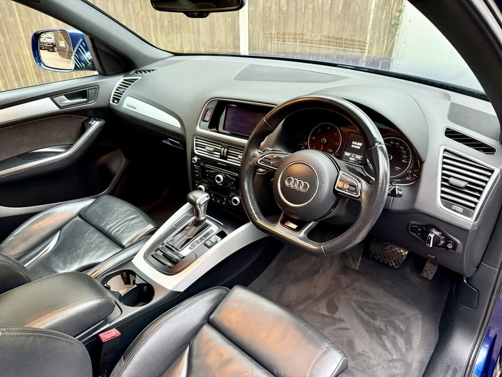 PLEASE NOTE we work on an appointment only basis, please call ahead to avoid disappointment. Just arrived we have this stunning Audi Q5 S-Line Plus, The car has covered just 53,000 miles from new, with just 2 former keepers and full service history. The car will come freshly serviced with 12 months MOT and 3 months warranty. The bodywork is in fantastic condition and the interior has been really cared for. There is a great level of spec including Panoramic roof, Parking sensors, Cruise control, Satellite navigation, Full leather heated electric seats, Power tailgate, Automatic lights and wipers plus much more! Low rate finance available and part exchange is welcome! Please call for any further information or to book a test drive. 19in Alloy Wheels - 5-Spoke Design, ABS - Anti-Lock Braking System, Airbags - Driver, Airbags - Front Passenger, Airbags - Front Side, Alarm - Thatcham Category 1, Aluminium Roof Rails, Aluminium Window Trims, Audi Concert Radio, Audi Sound System, Auto-Dimming Rear-View Mirror, Bluetooth Interface, Body Coloured Bumpers, Chrome Door Handles and Tailgate Strip, Chrome-trimmed - Flat-bottom Design Exha, Cloth Headlining in Black, Colour Drivers Information System - DIS, Cruise Control, DAB Digital Radio, Deluxe 3-Zone Climate Control, Diffuser - Platinum Grey, Door Mirrors - Electrically Adjustable a, ESP - Electronic Stability Programme, Electric Windows - Front and Rear, Electromechanical P